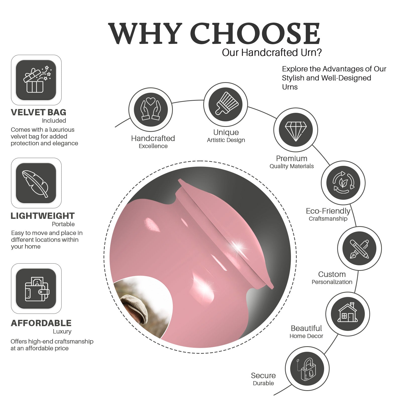 • Full-size 10-inch urn holds approximately 200 cubic inches