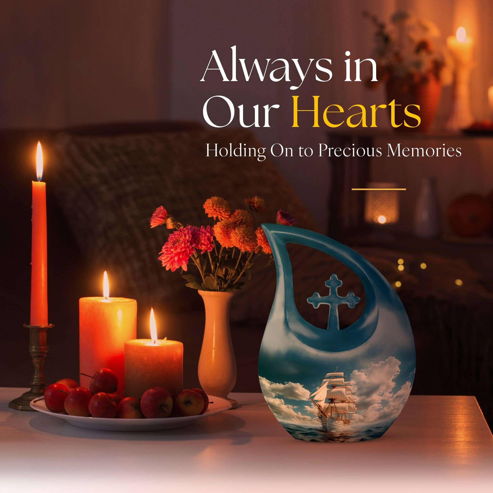 For families wishing to share ashes among loved ones, matching keepsake urns for men ashes or tiny urns for women & men are also available. Whether chosen as an urn for human ashes adult men, urn ashes for women, or part of a companion set, this memorial piece captures peace and eternal love — a reflection of life’s enduring voyage.