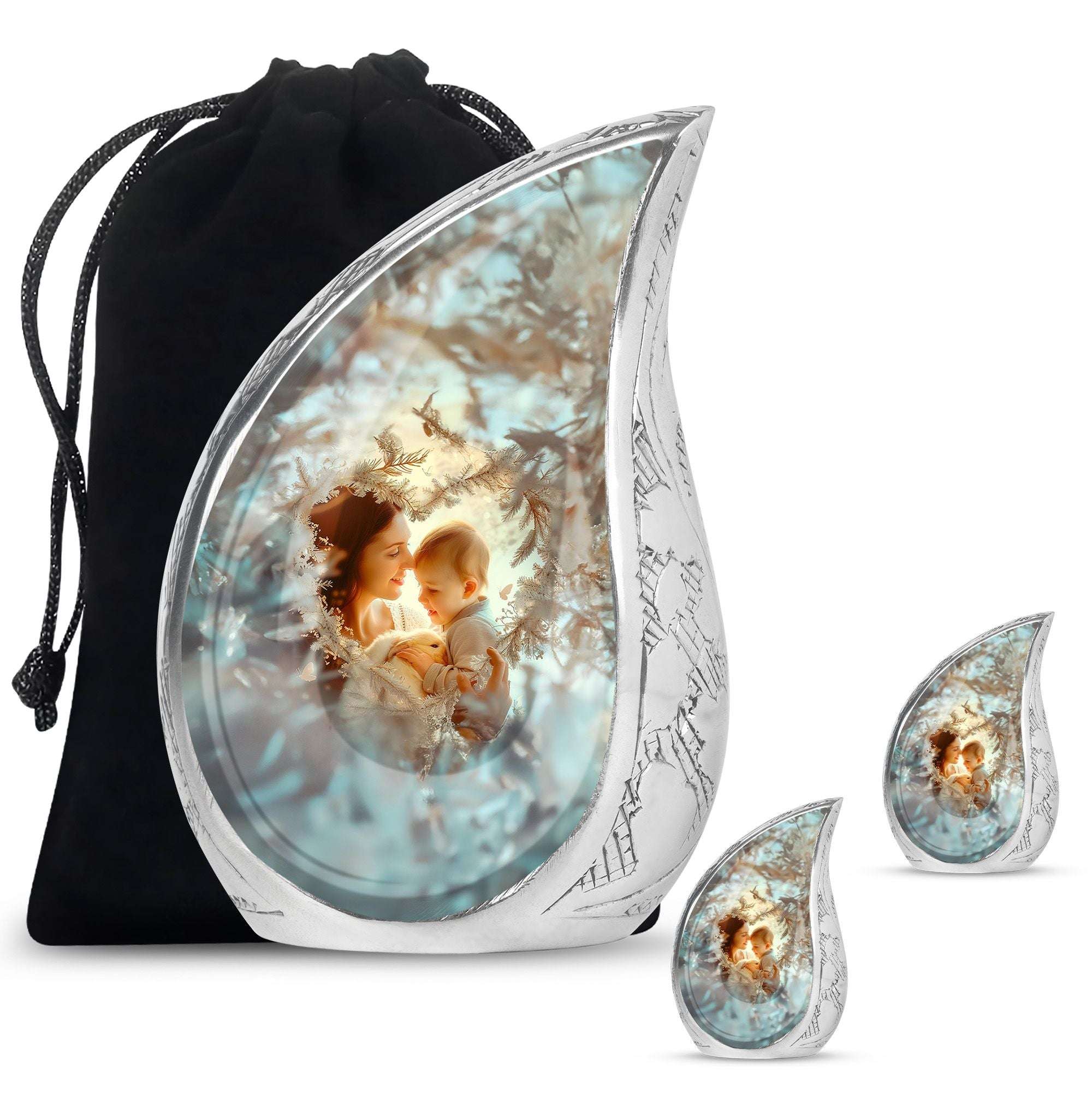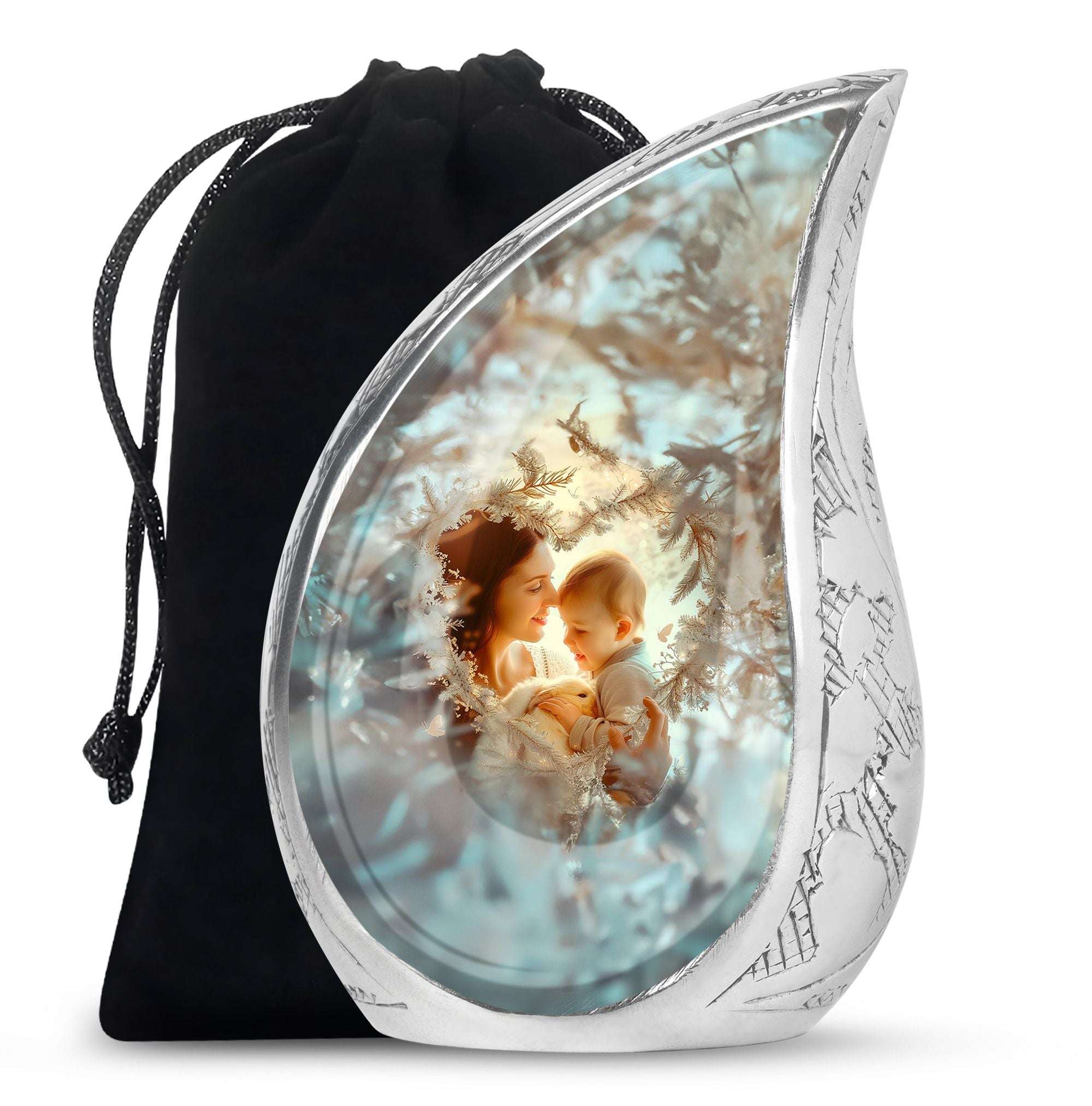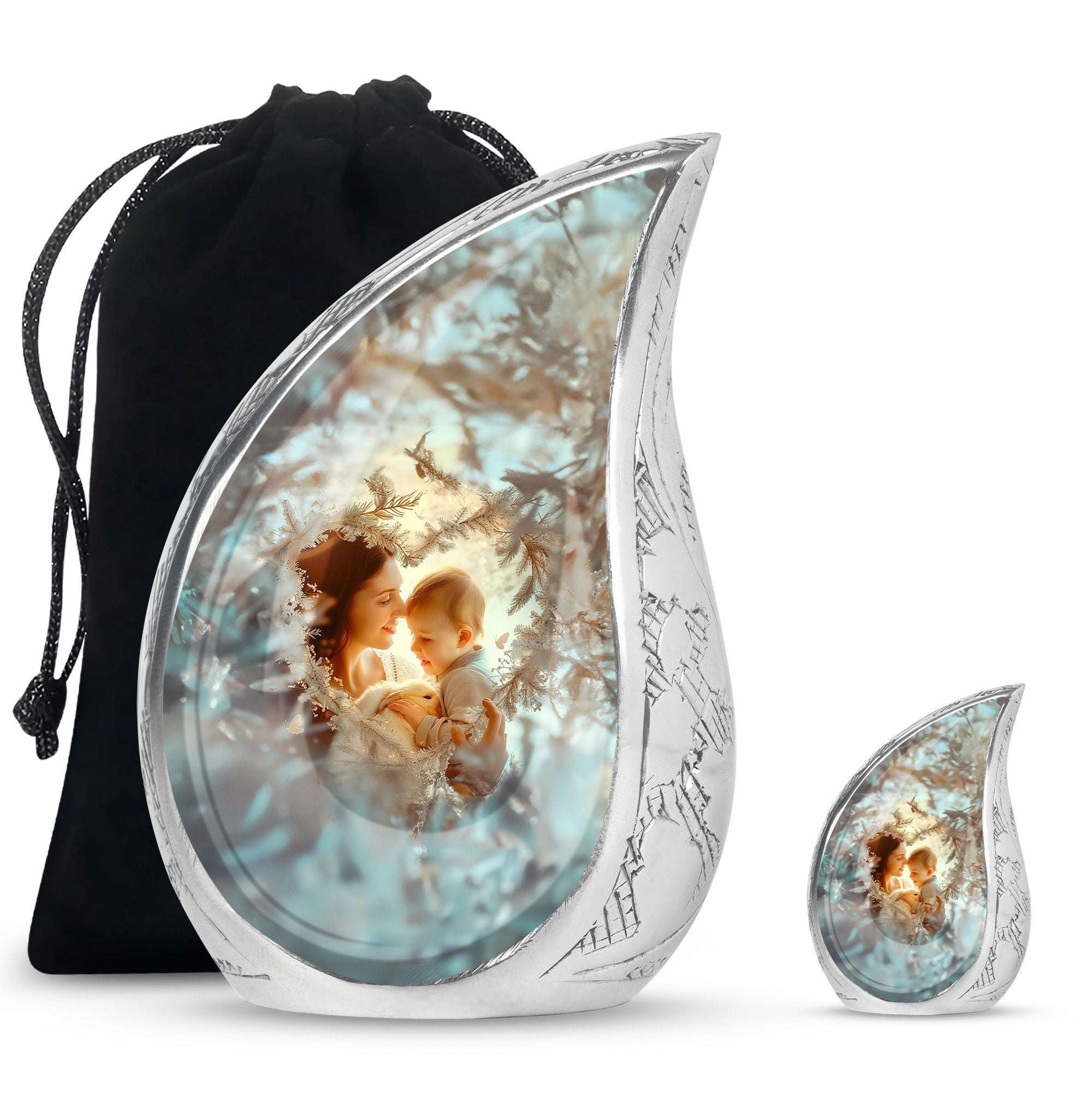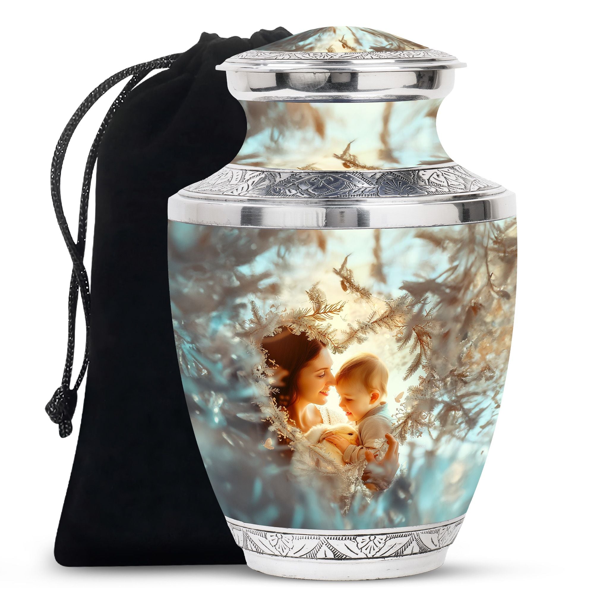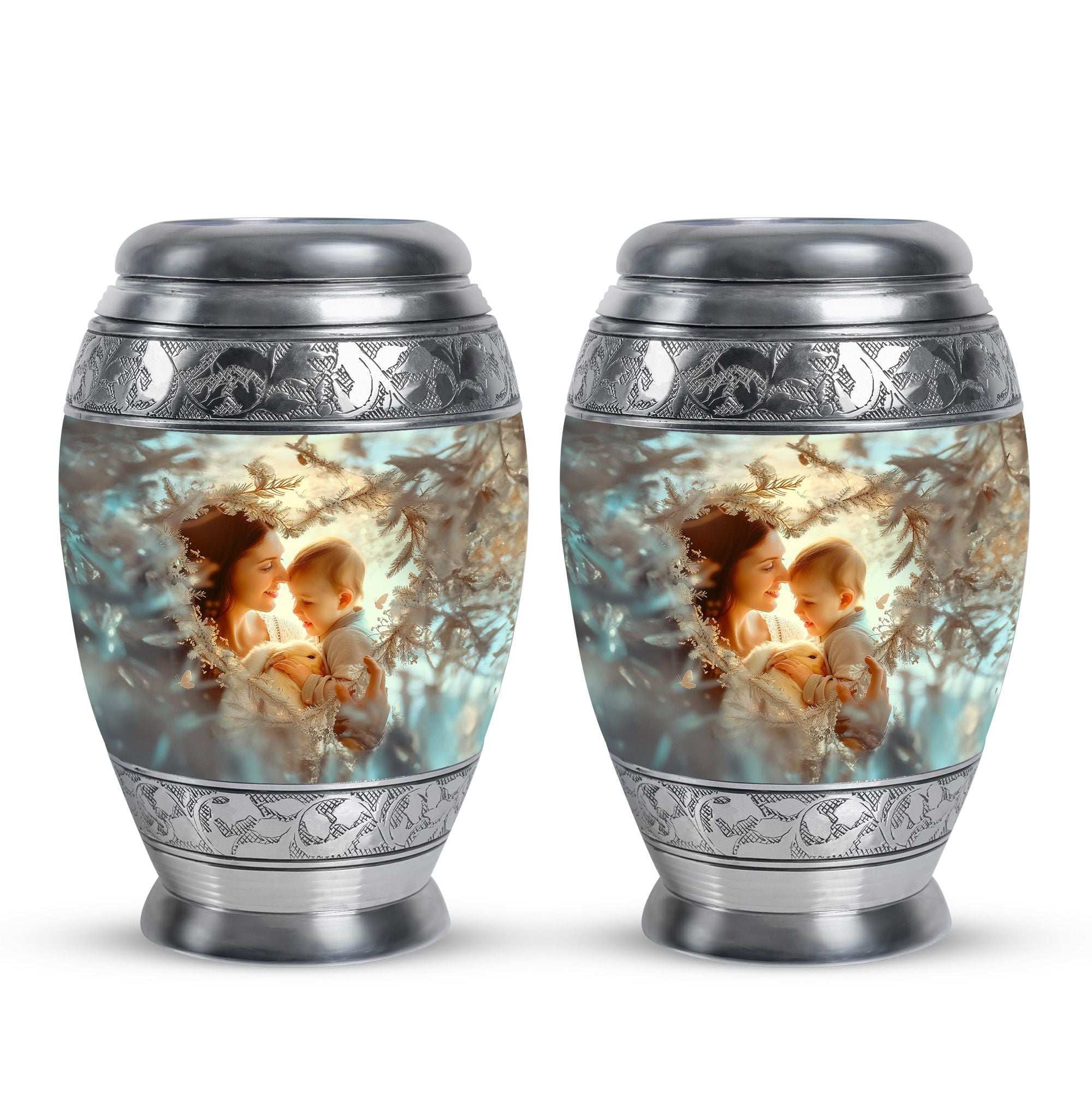 The Child & Mother Memorial Urn for Human Ashes is a touching tribute, celebrating the enduring bond between parent and child. Its elegant design provides families with a meaningful way to preserve cherished memories, serving as a funeral urn for parents, urn for adult male & female, or ashes keepsake women.
