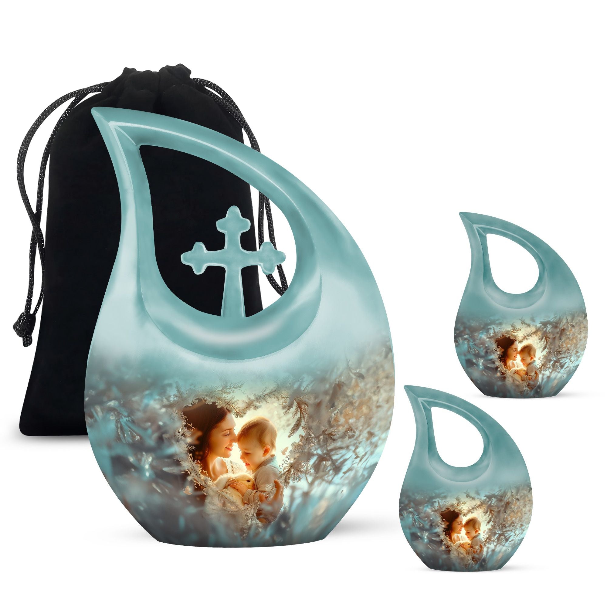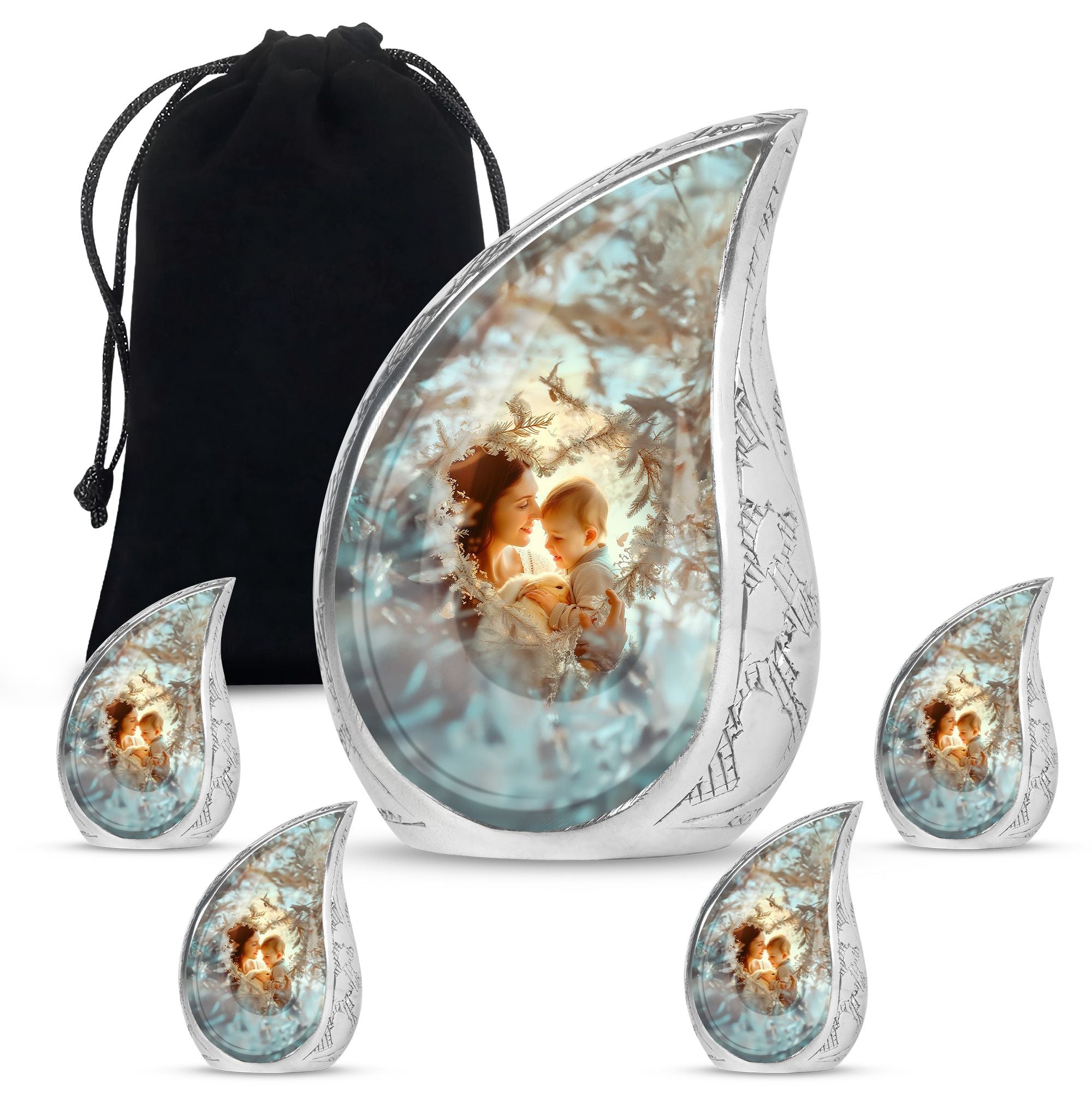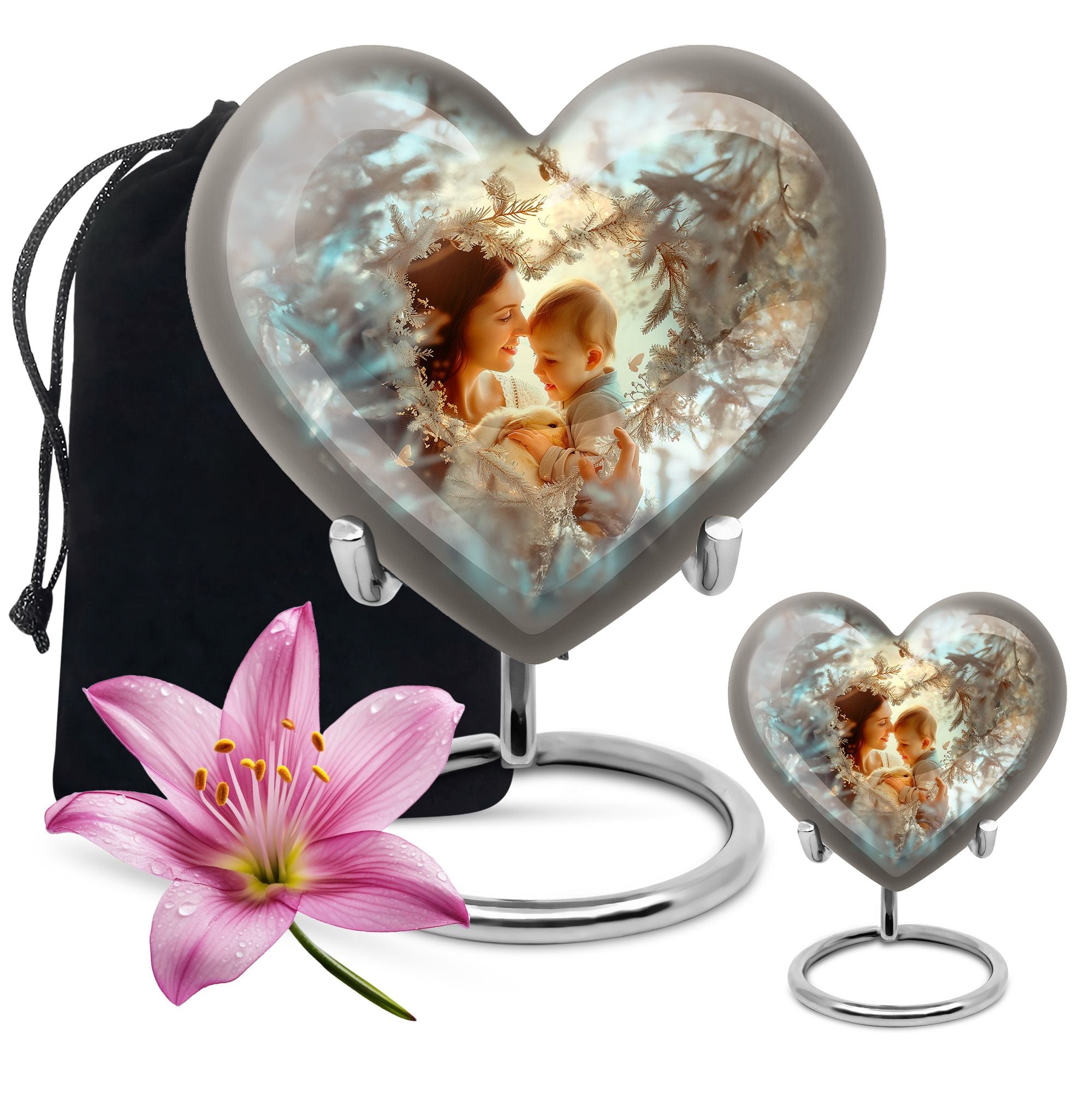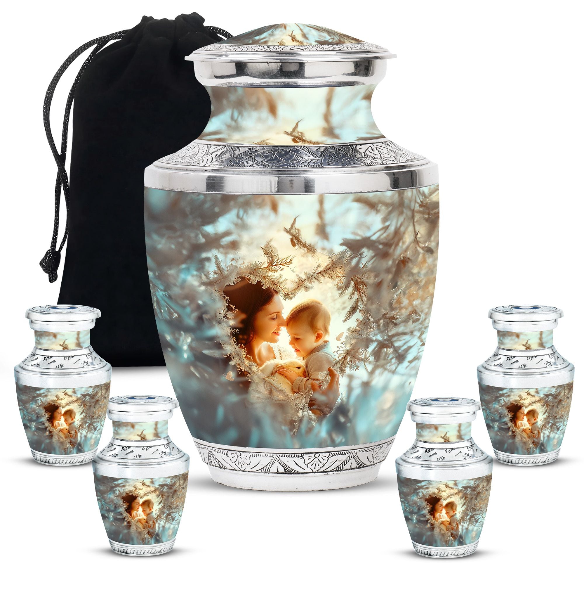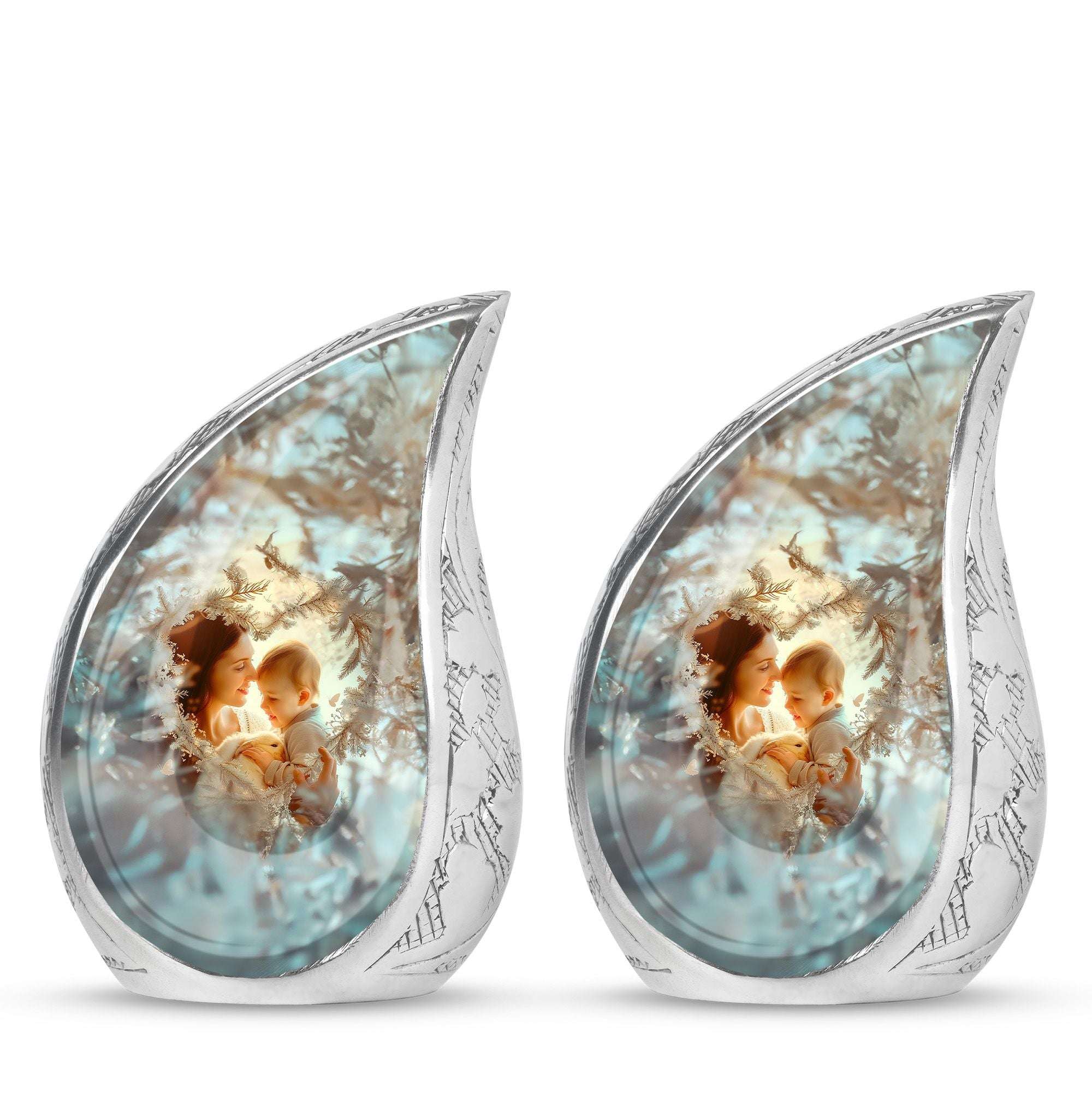 The Child & Mother Memorial Urn for Human Ashes is a touching tribute, celebrating the enduring bond between parent and child. Its elegant design provides families with a meaningful way to preserve cherished memories, serving as a funeral urn for parents, urn for adult male & female, or ashes keepsake women.