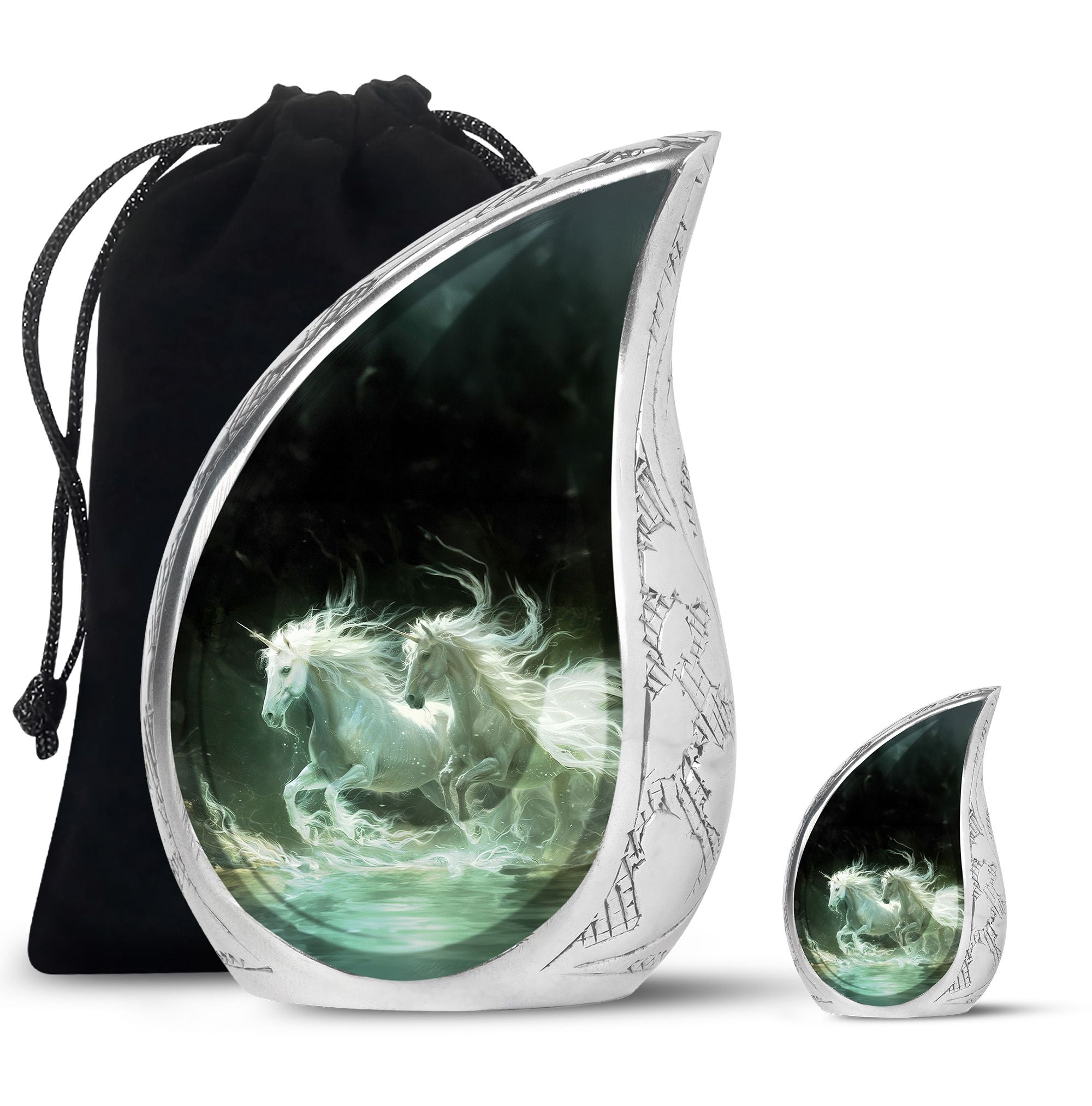 Losing a loved one is never easy, and choosing a memorial that reflects their spirit is a meaningful way to honor them. The White Unicorn Black Urn is a compassionate tribute, designed as one of the most elegant cremation urns for adult ashes women. Its symbolic design brings peace and comfort, making it a thoughtful urn for men & women who seek timeless remembrance.