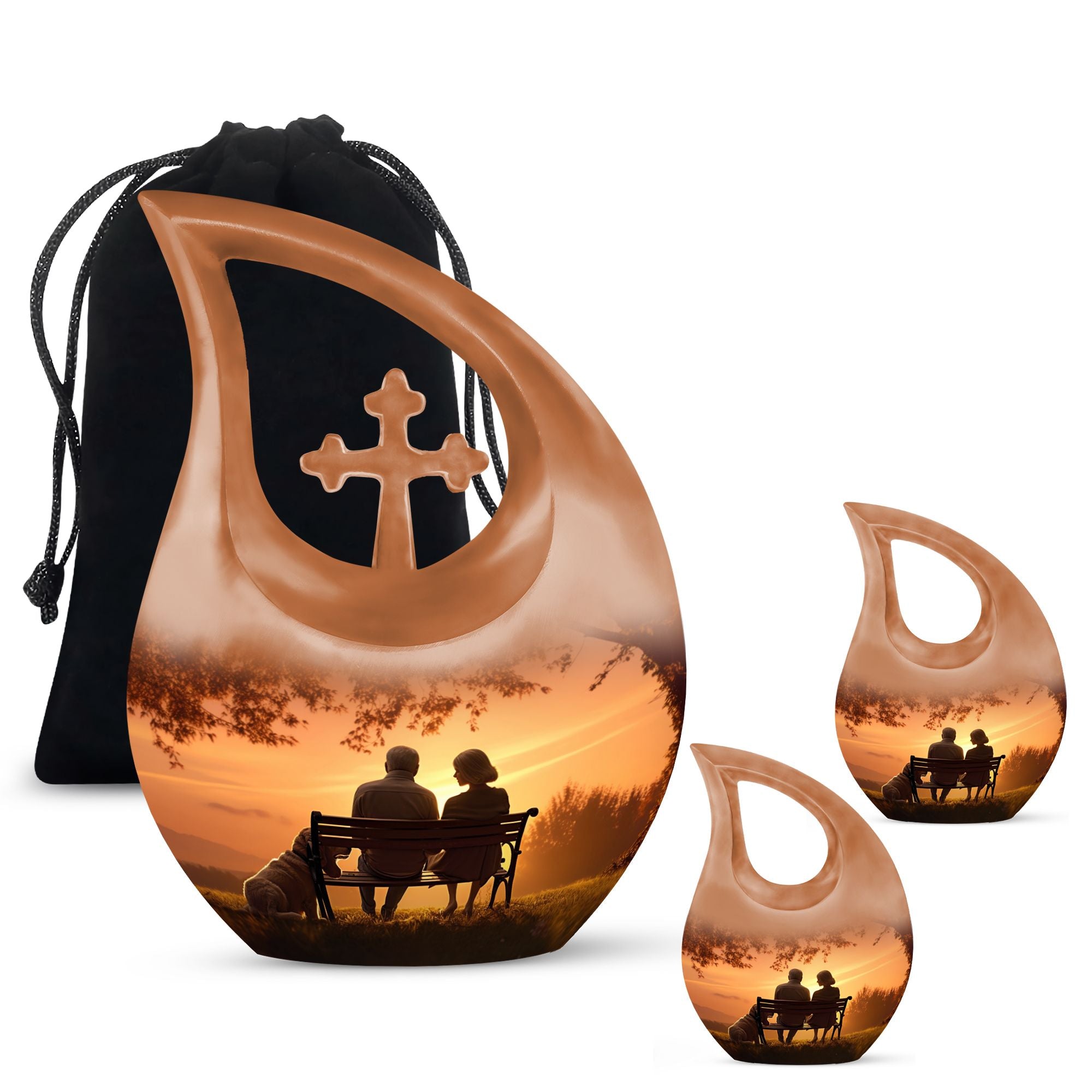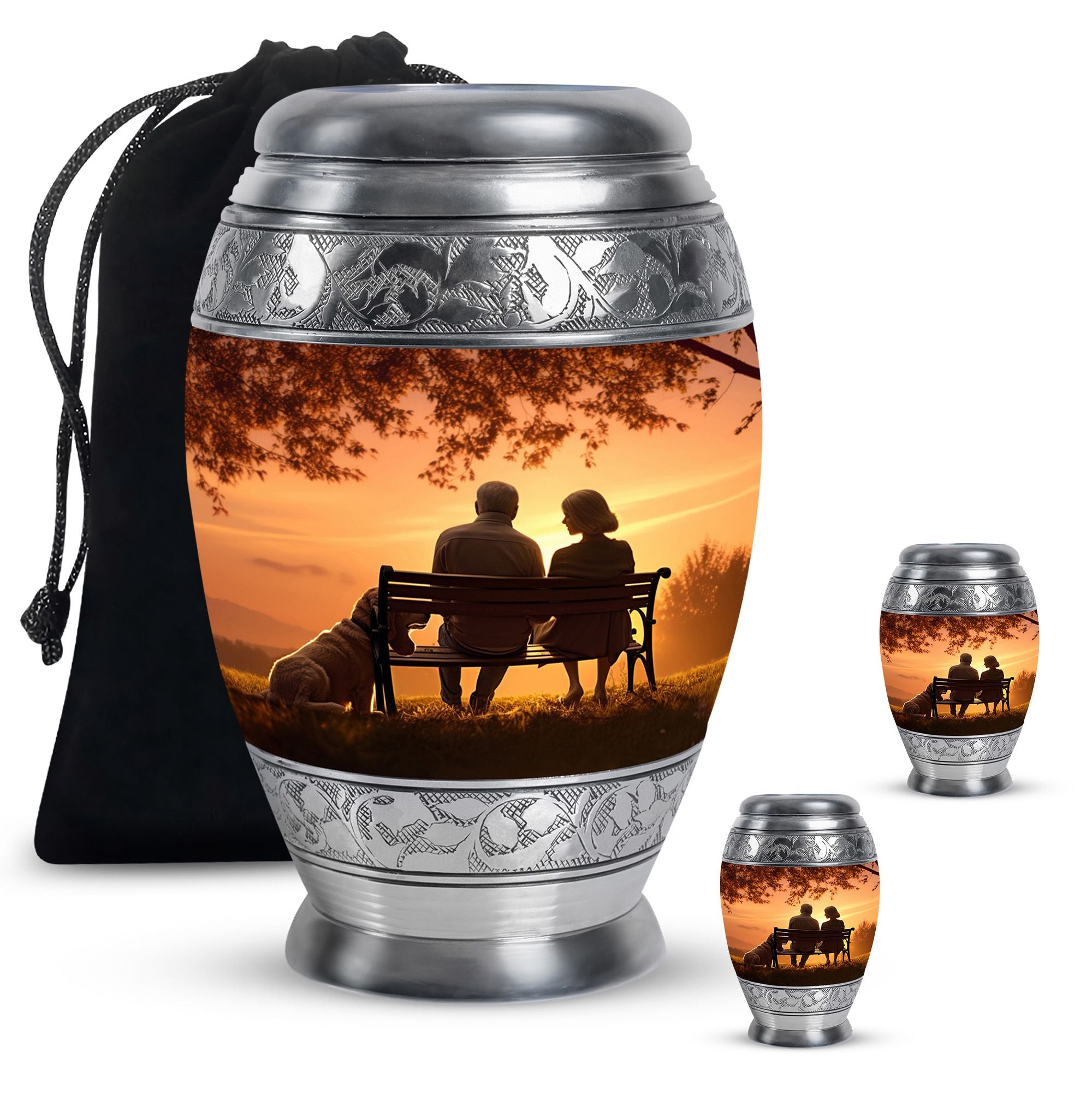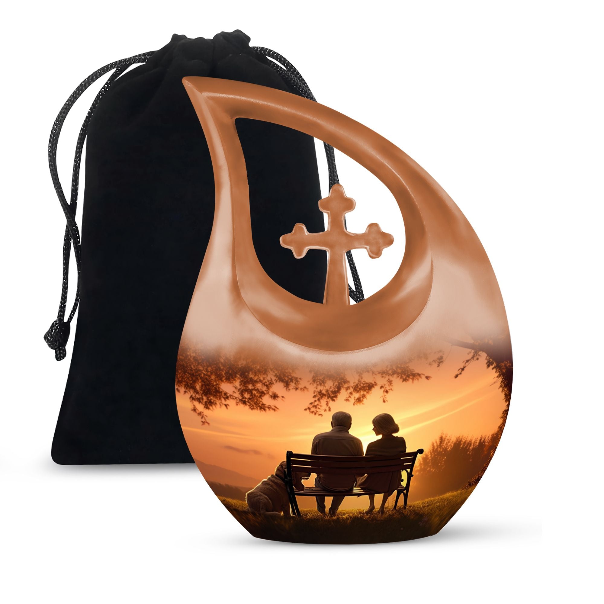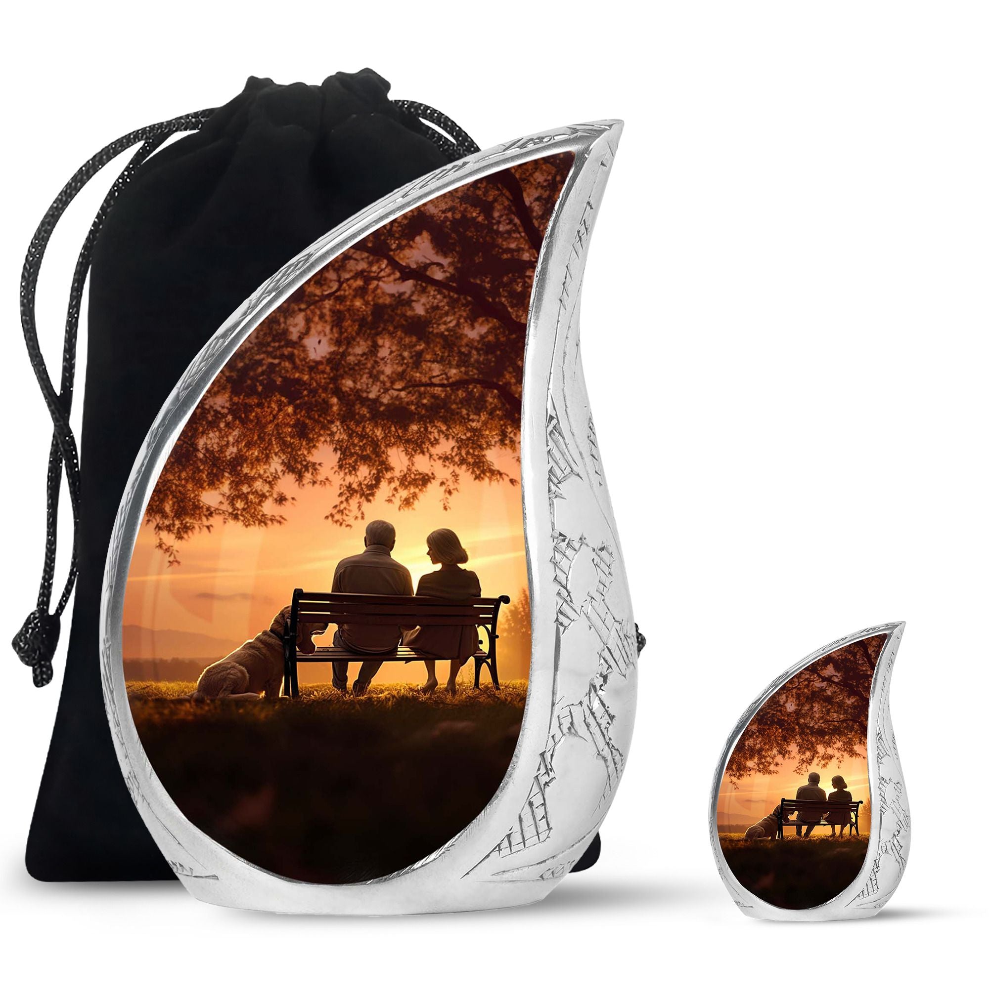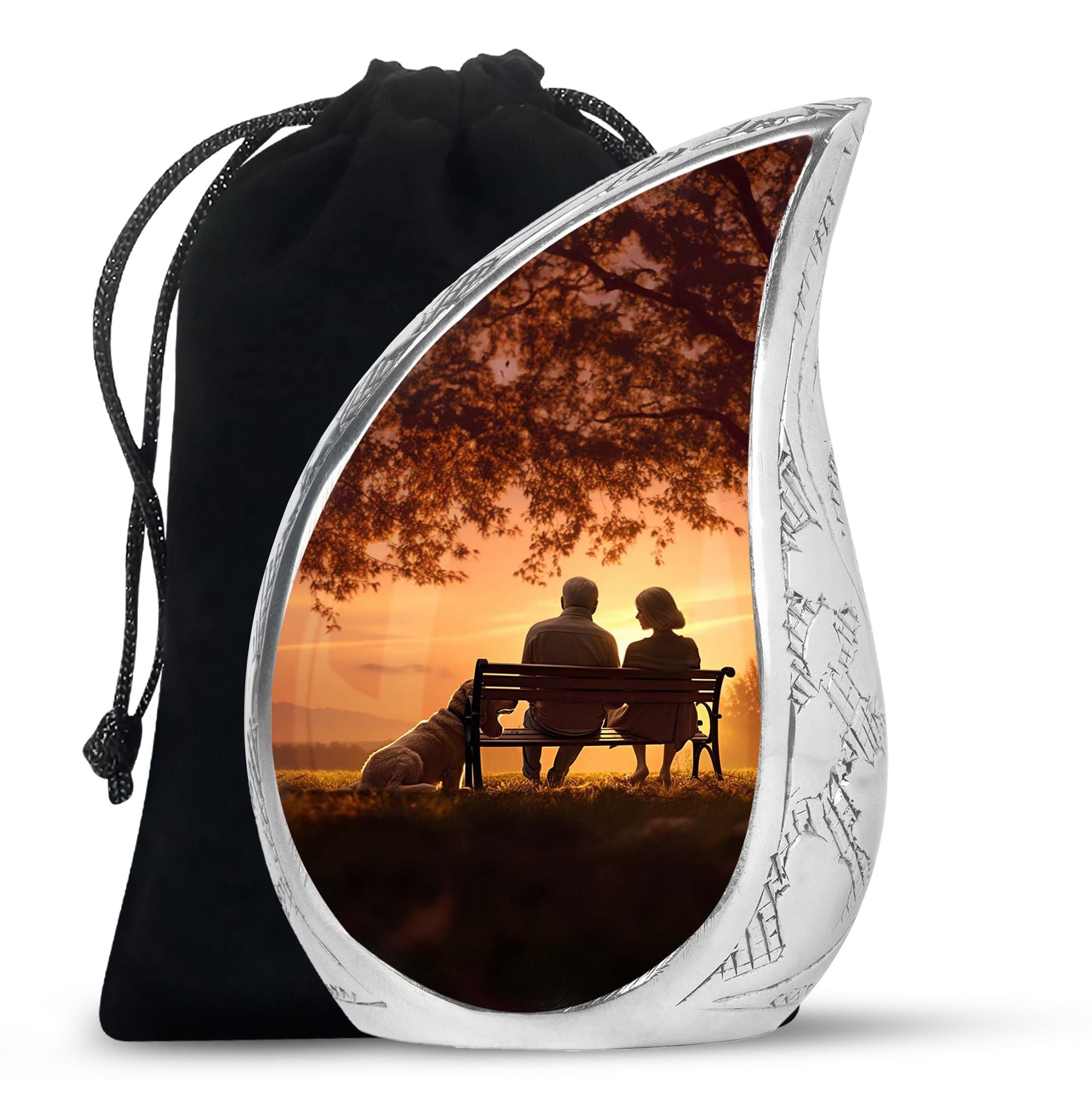 Honoring the love and wisdom of cherished grandparents, this Old Couple Sitting on a Bench memorial design serves as a timeless tribute. Thoughtfully crafted, it is an urn keepsake for human ashes that allows families to preserve memories with dignity. A symbol of eternal togetherness, this memorial becomes both a comfort and a reminder of life’s most treasured bonds.