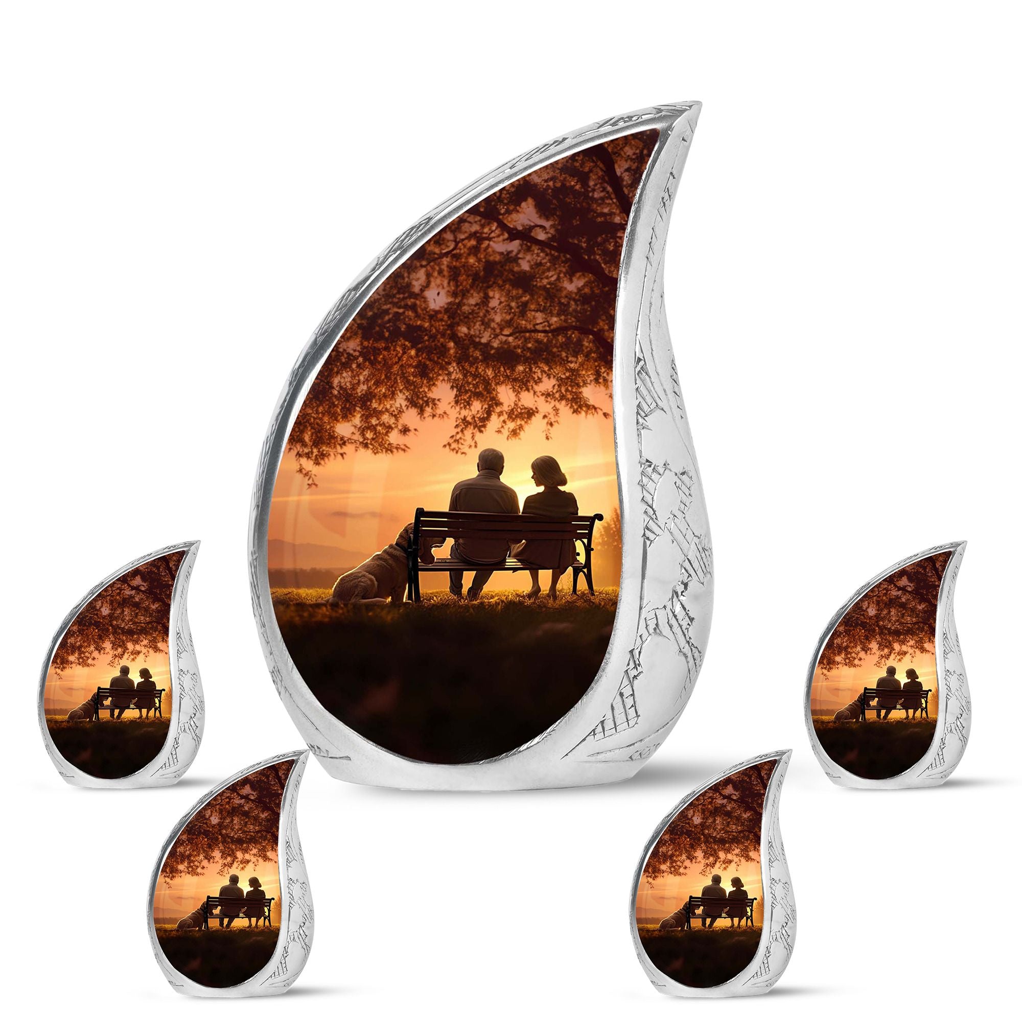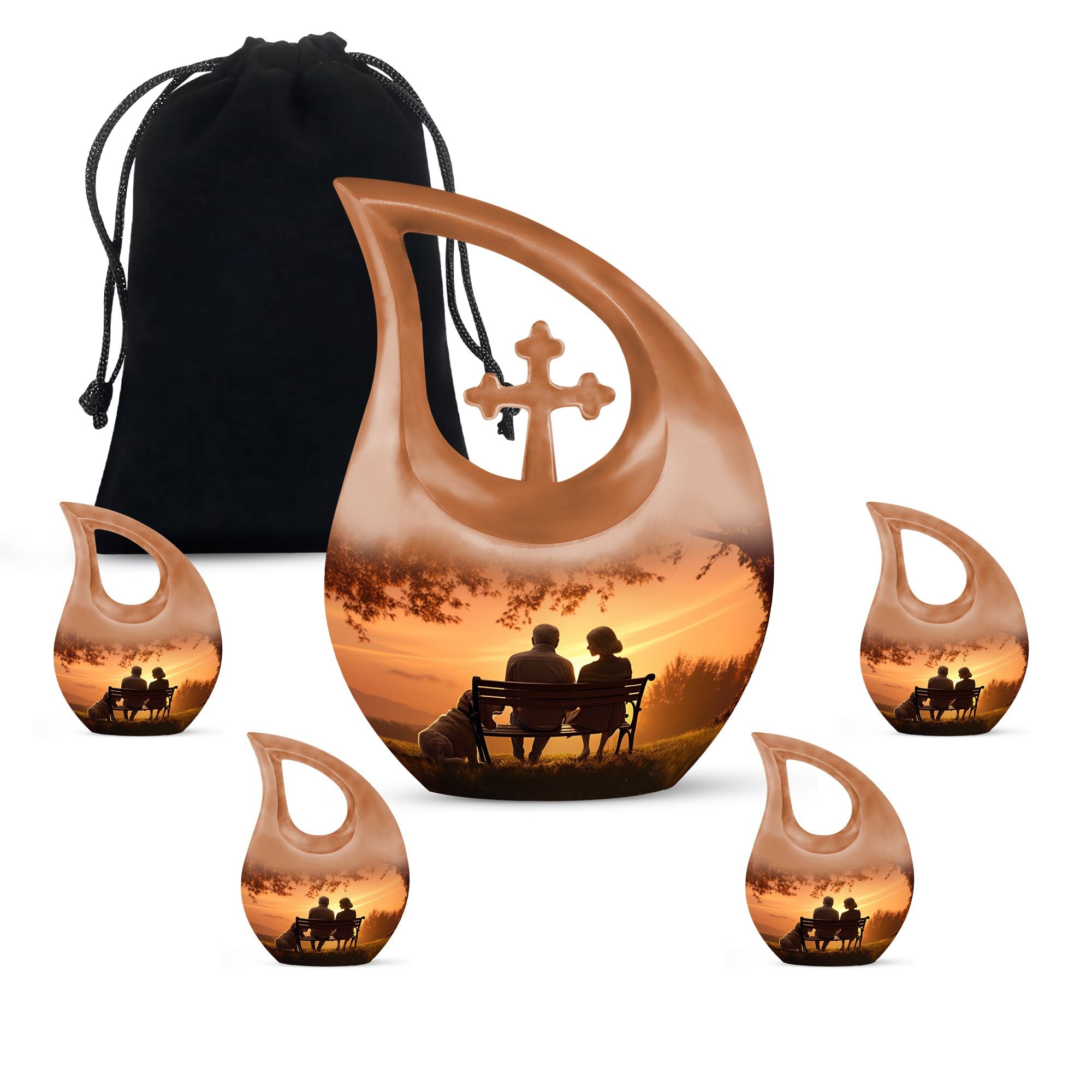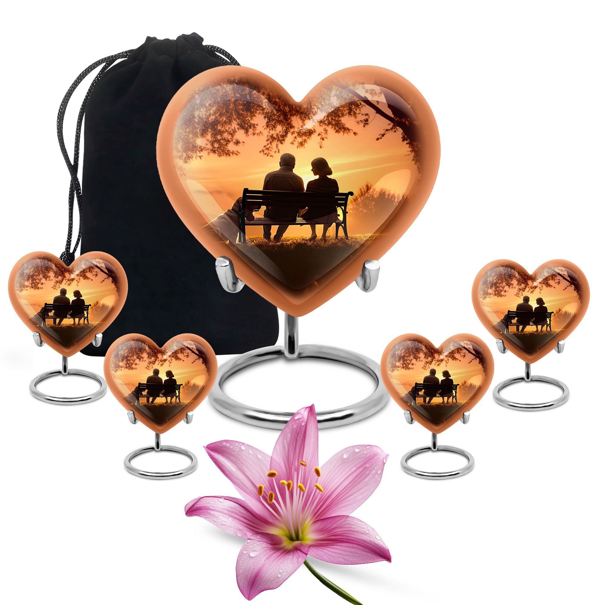 This urn keepsake combo set provides families the option of sharing ashes among loved ones with smaller keepsake urns for human ashes adult, creating a way for each member to hold on to a personal human ash keepsake.