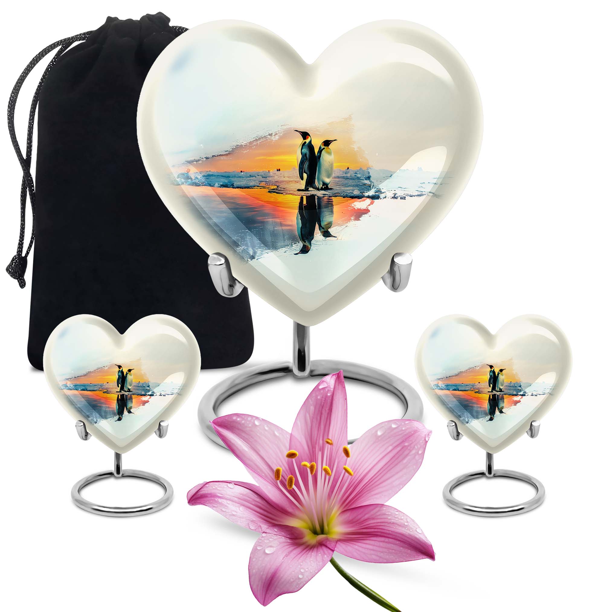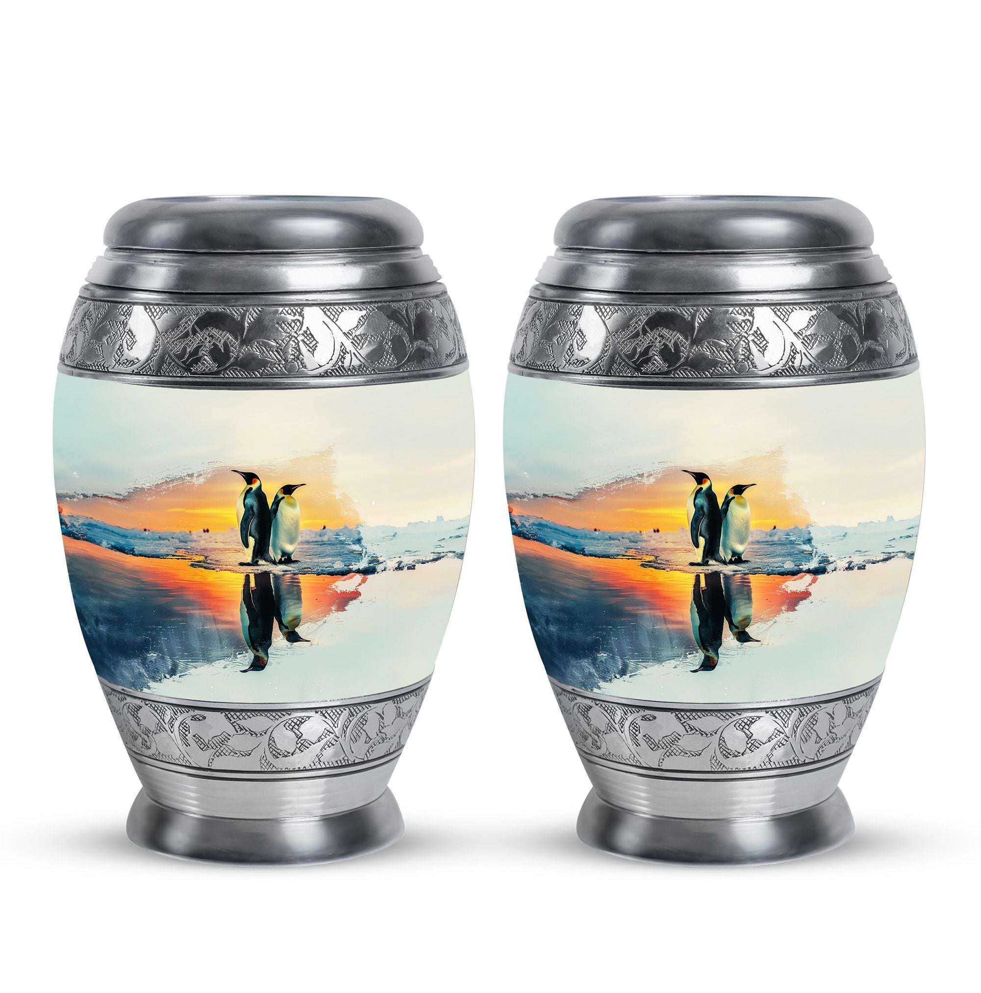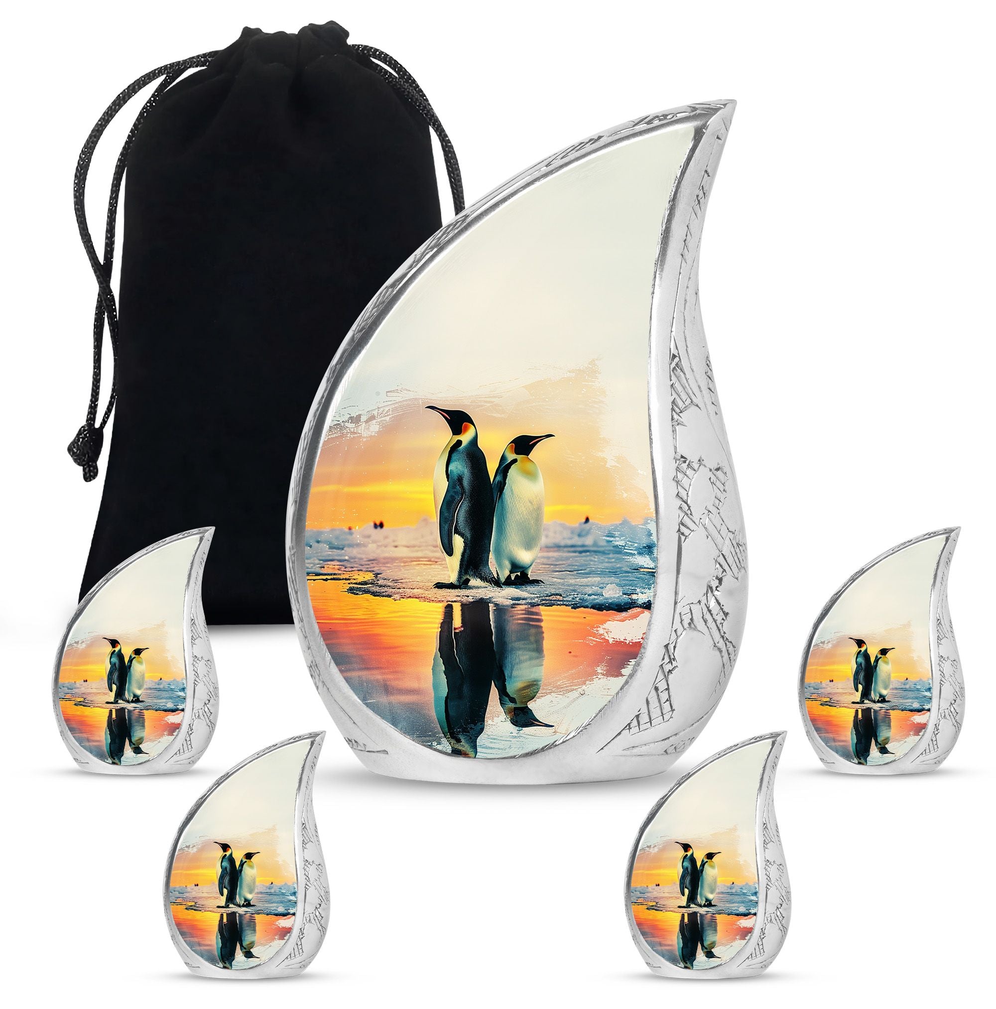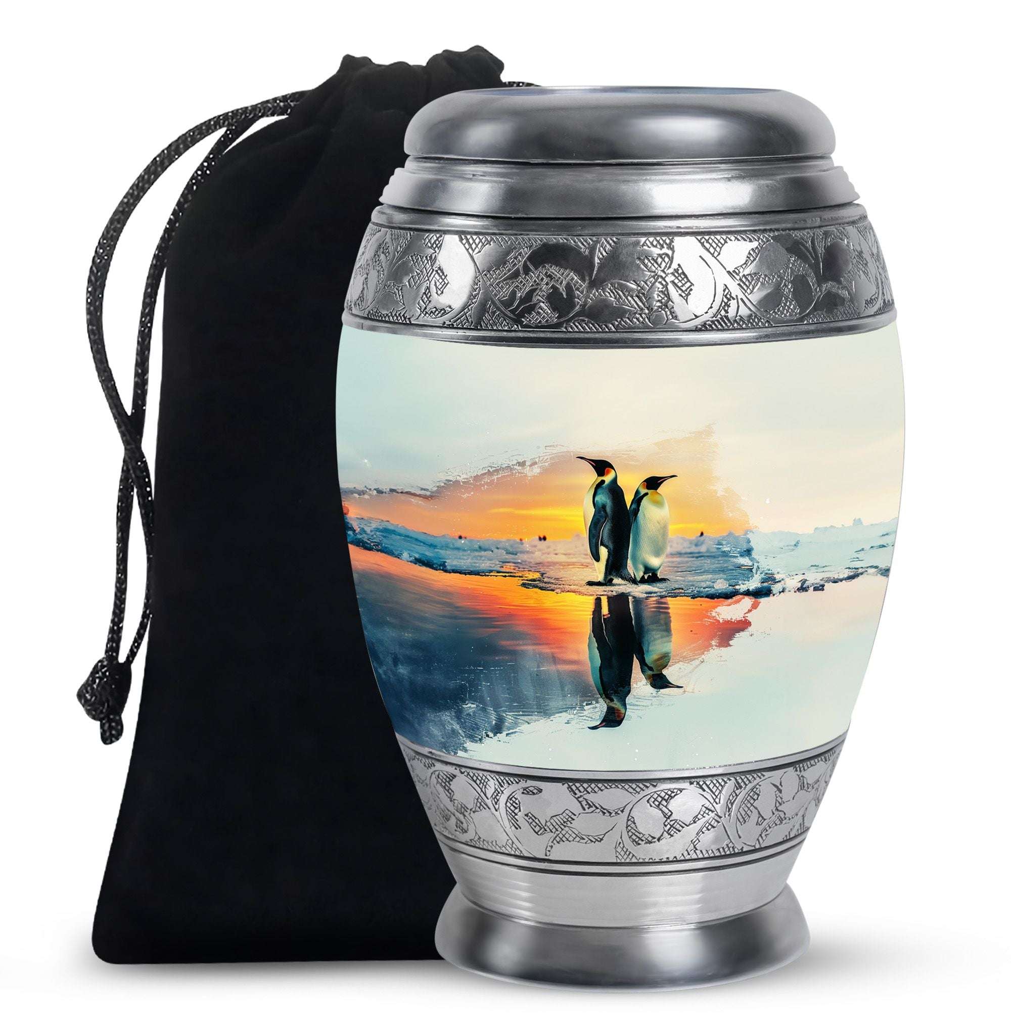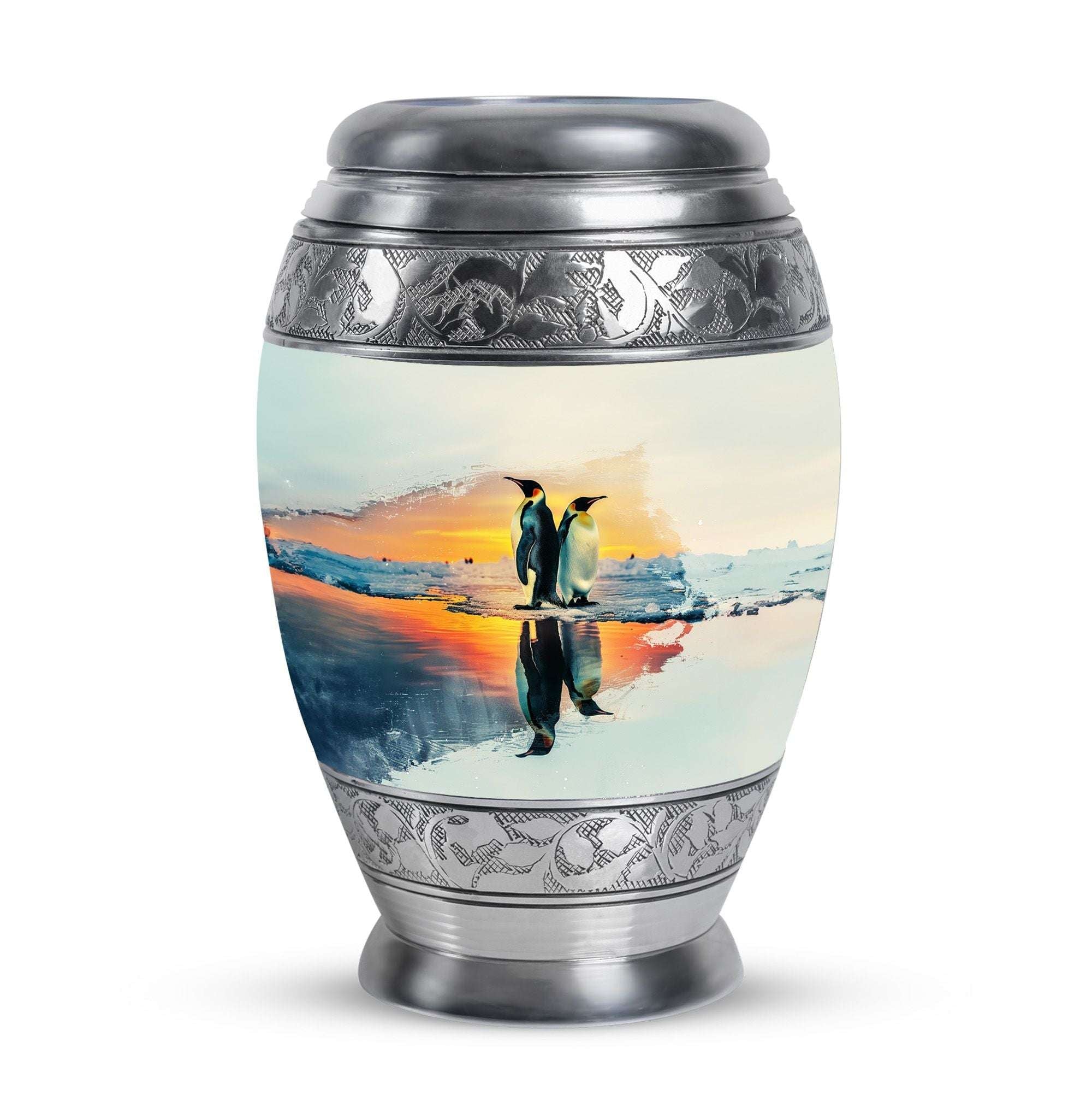 Crafted from durable aluminium with a secure screw-top lid, each urn combines elegance and practicality. Perfect as cremation urns for ashes for women, urns for human ashes women, or small urns for women human ashes, it is also ideal as adult urns for men & women and funeral urns for men. The sleek penguin-inspired design makes it a dignified tribute for any setting.