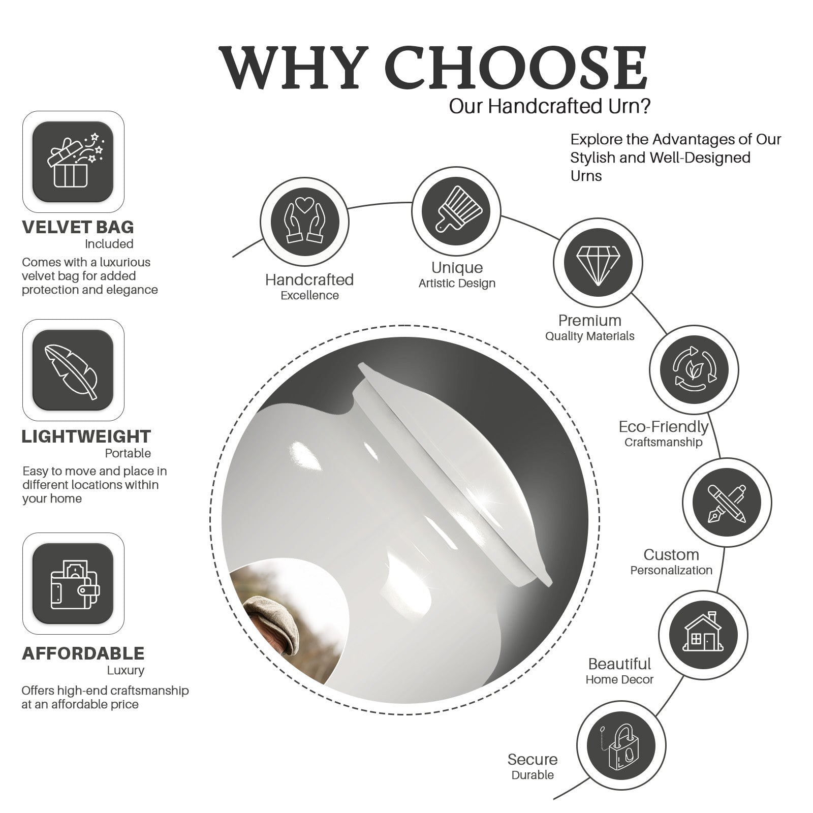 The Plain White Portrait Customizable Urn for Human Ashes is a serene and respectful way to cherish the memory of a loved one. This full-size urn features a soft white finish and a personalized display area for a treasured photograph, name, dates, and a heartfelt message.