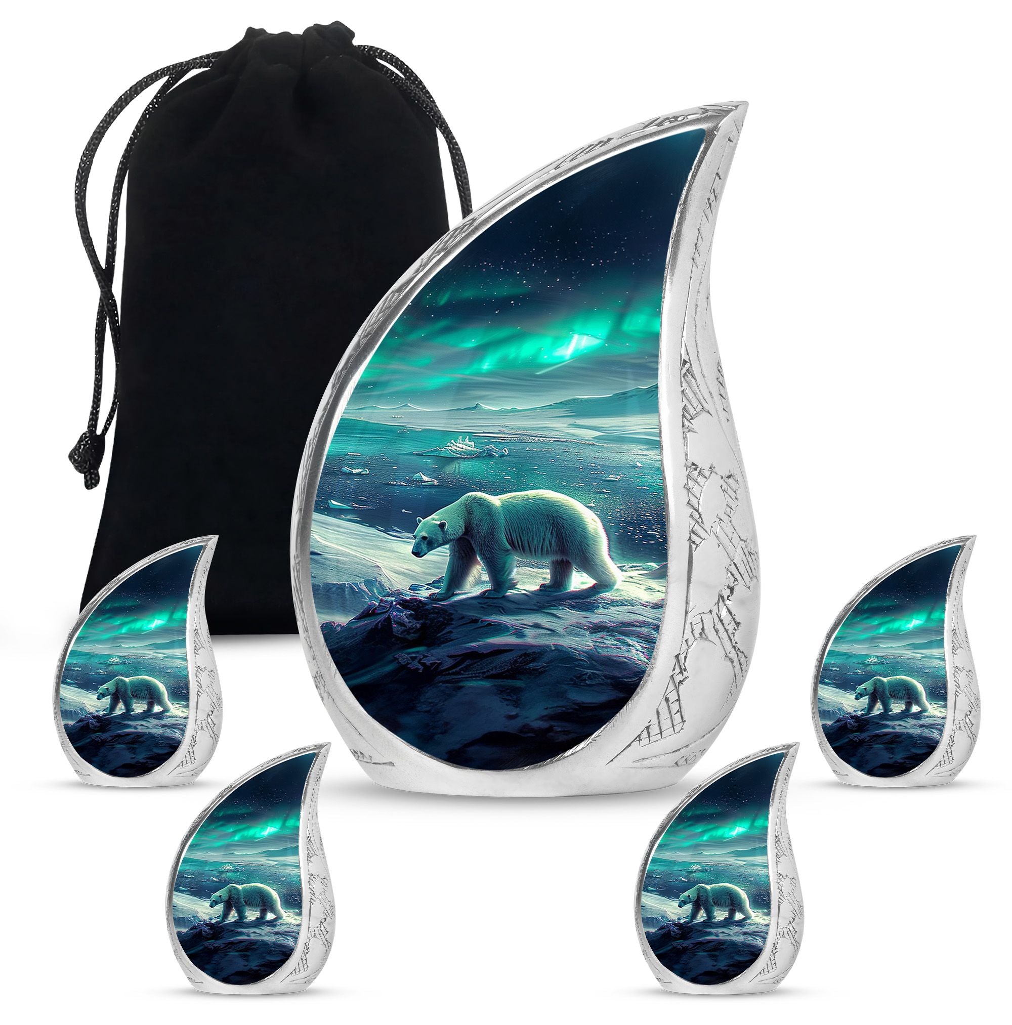 For keepsakes, smaller options like Polar Bear ashes keepsake for men or Polar Bear keepsake urns for women provide a heartfelt way to share ashes among family members.