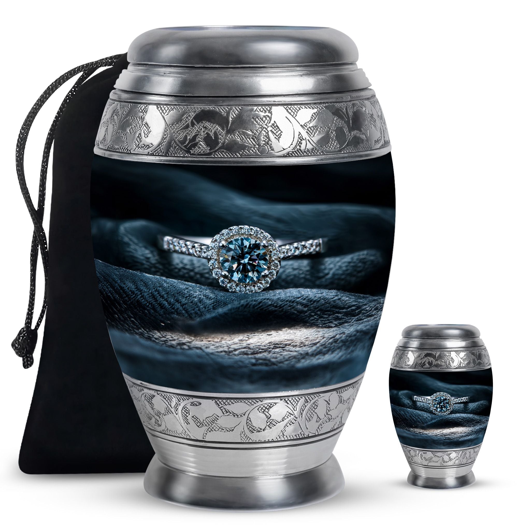 The **Ring Small Urn for Ashes** is **a small but meaningful keepsake, symbolizing eternal love and connection**.