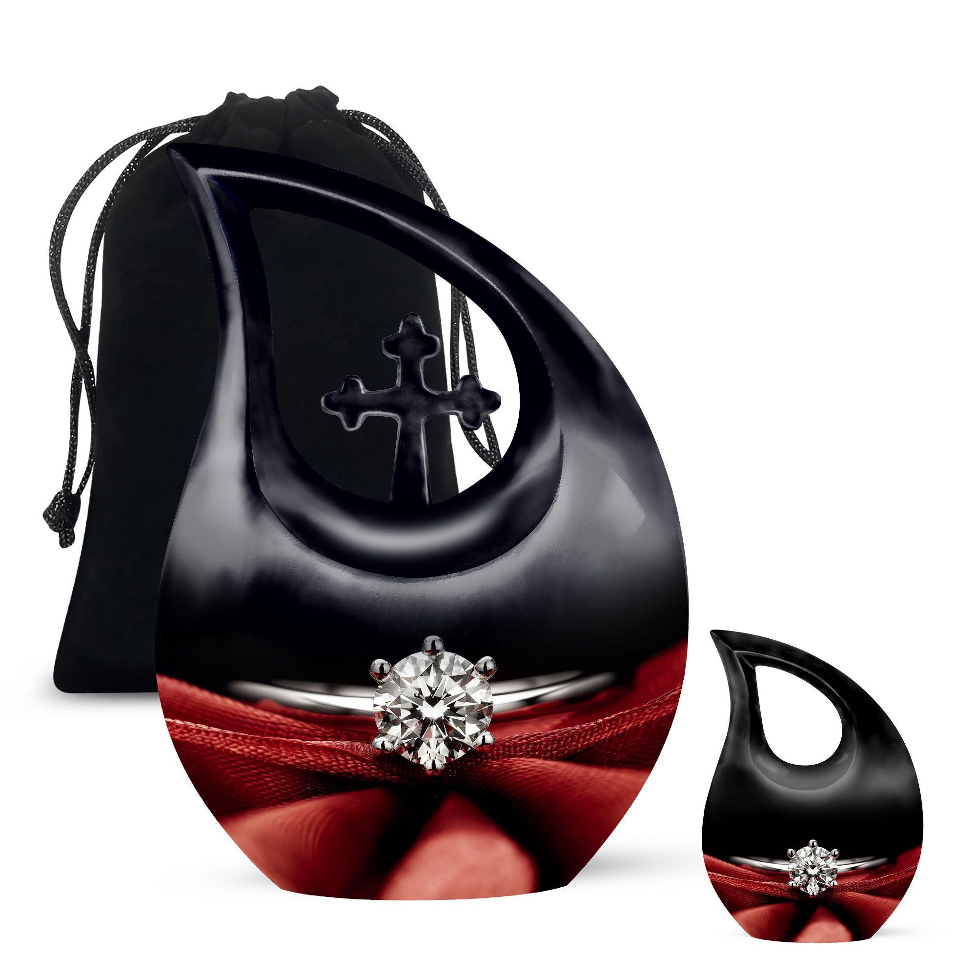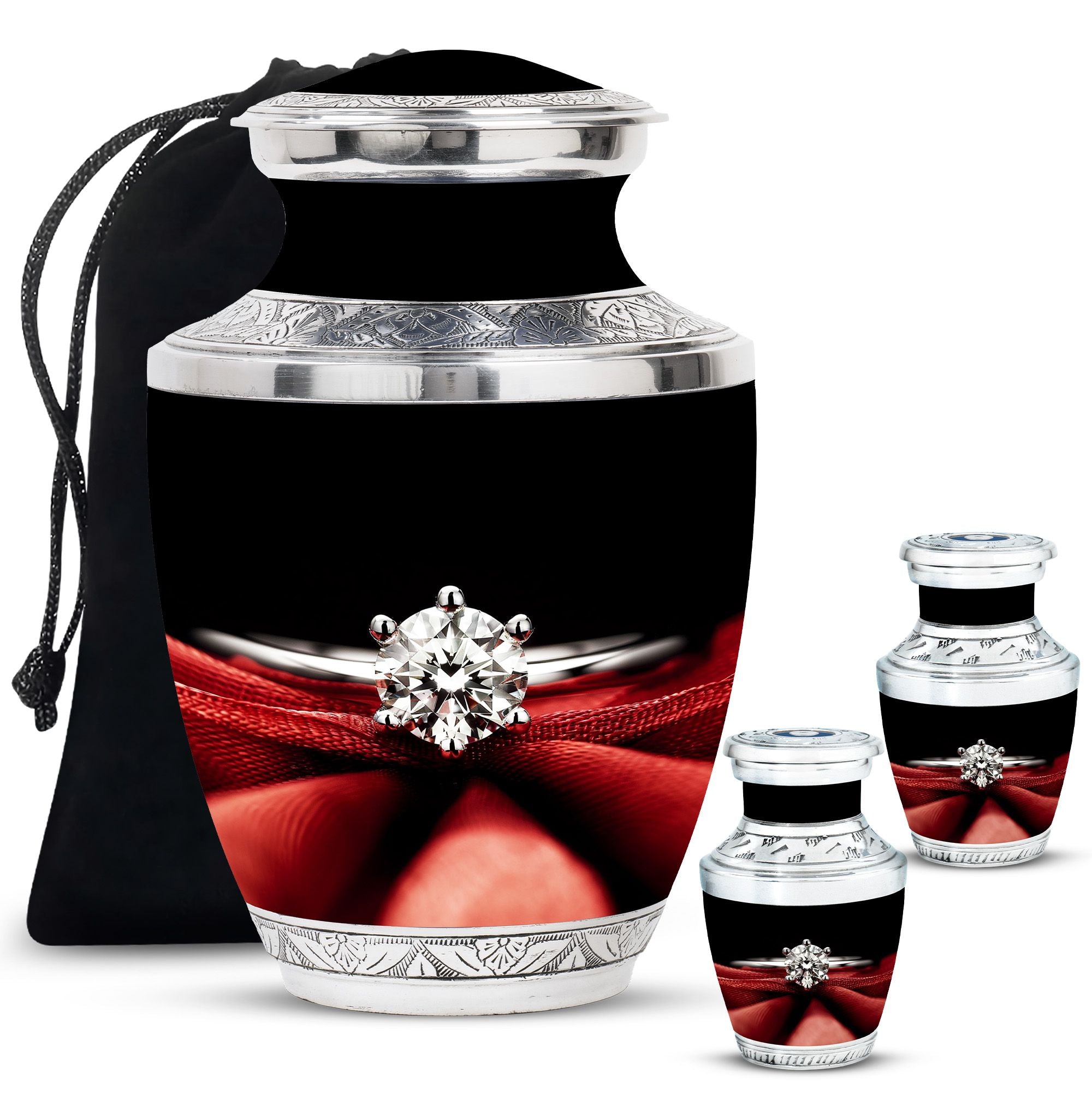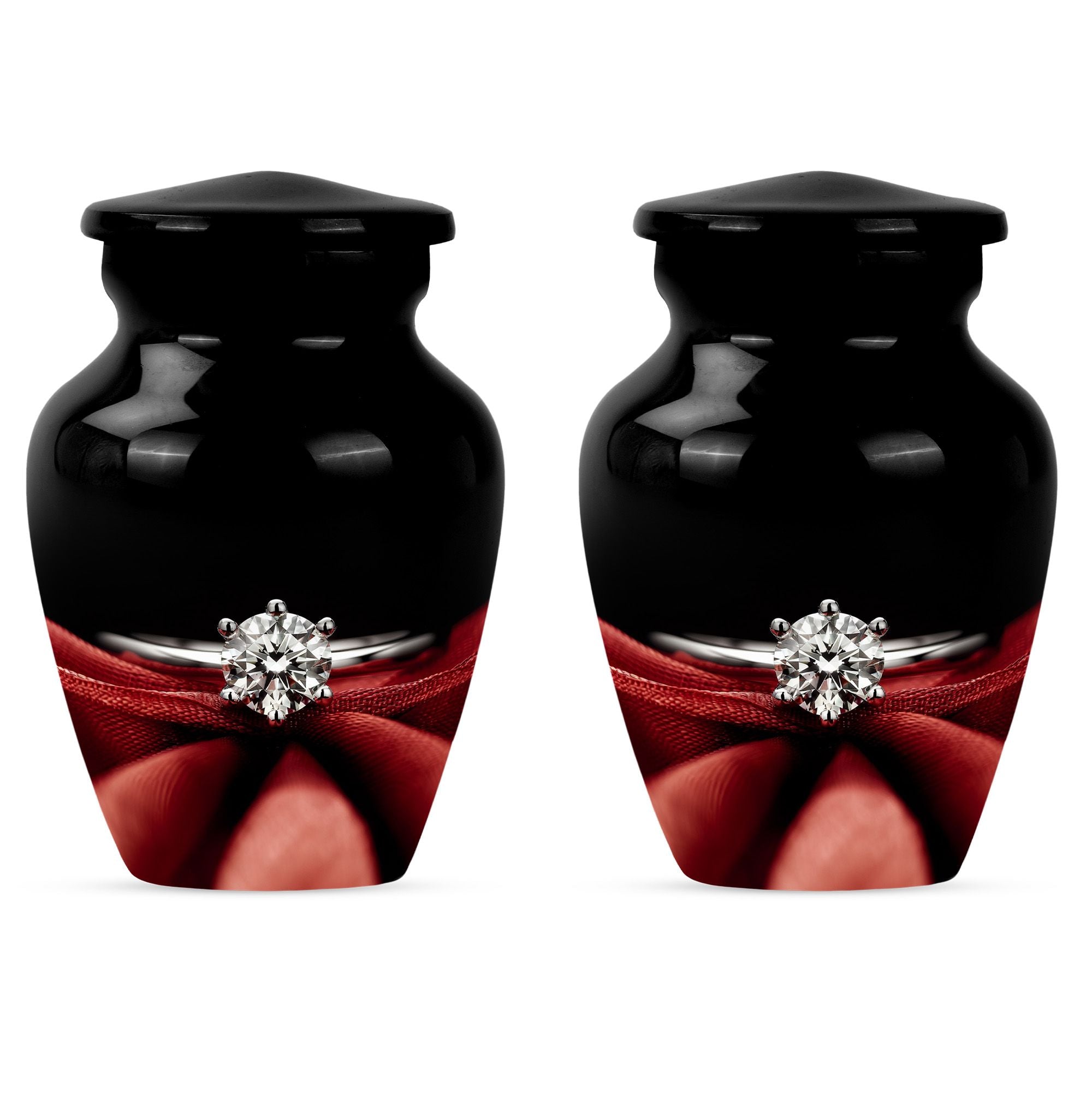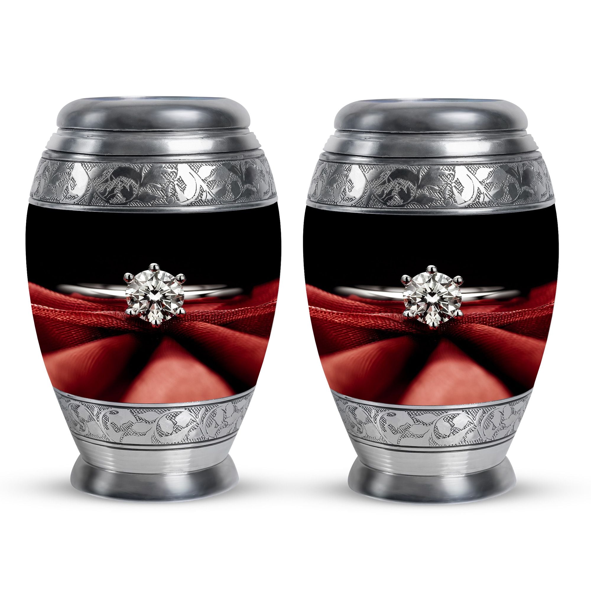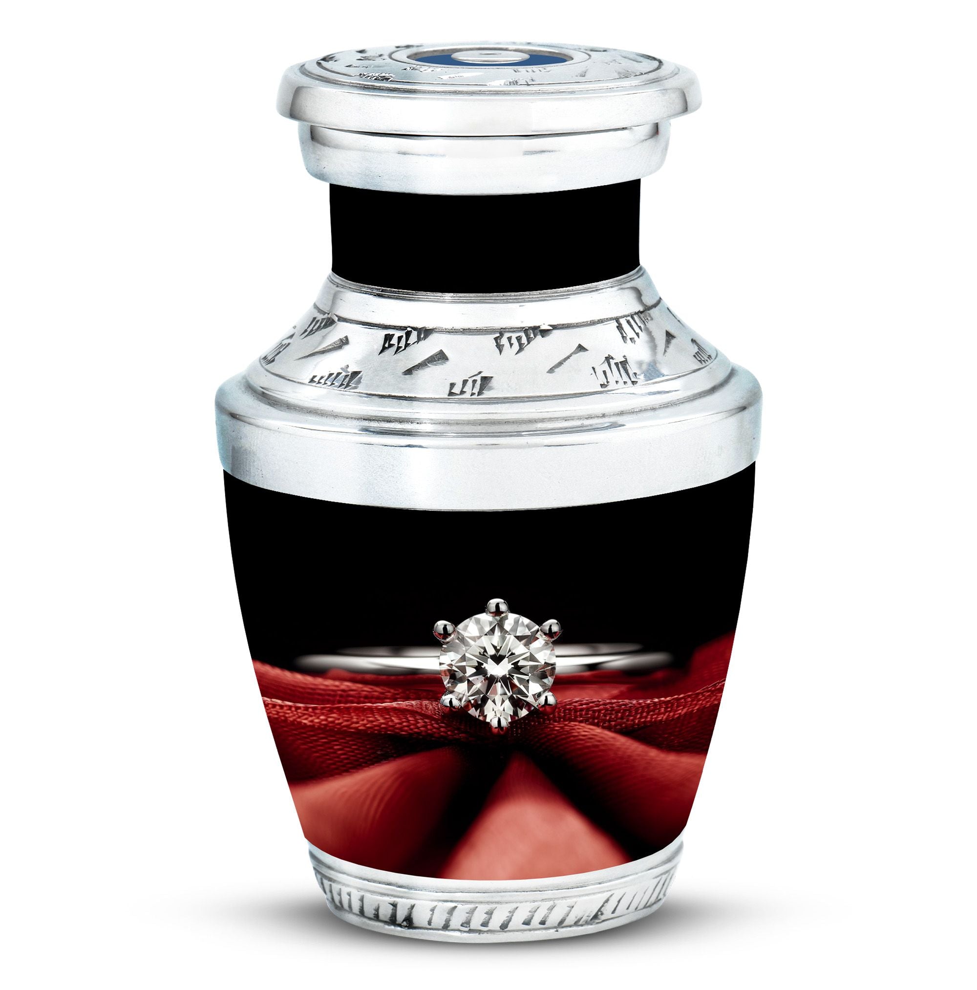 This **cremation urn for human ashes** features **a sleek and sophisticated ring-inspired design, symbolizing love and unity beyond time**.