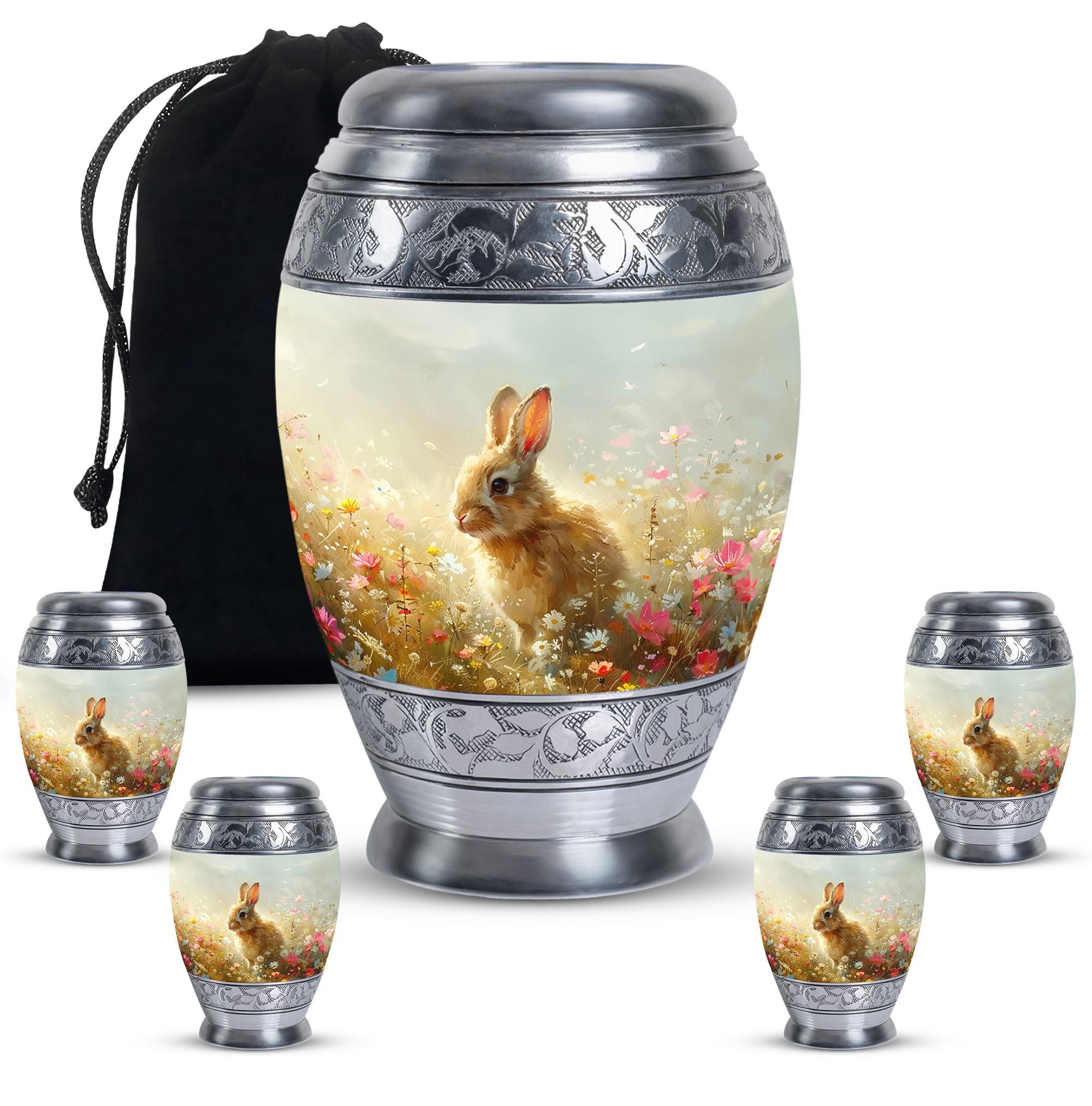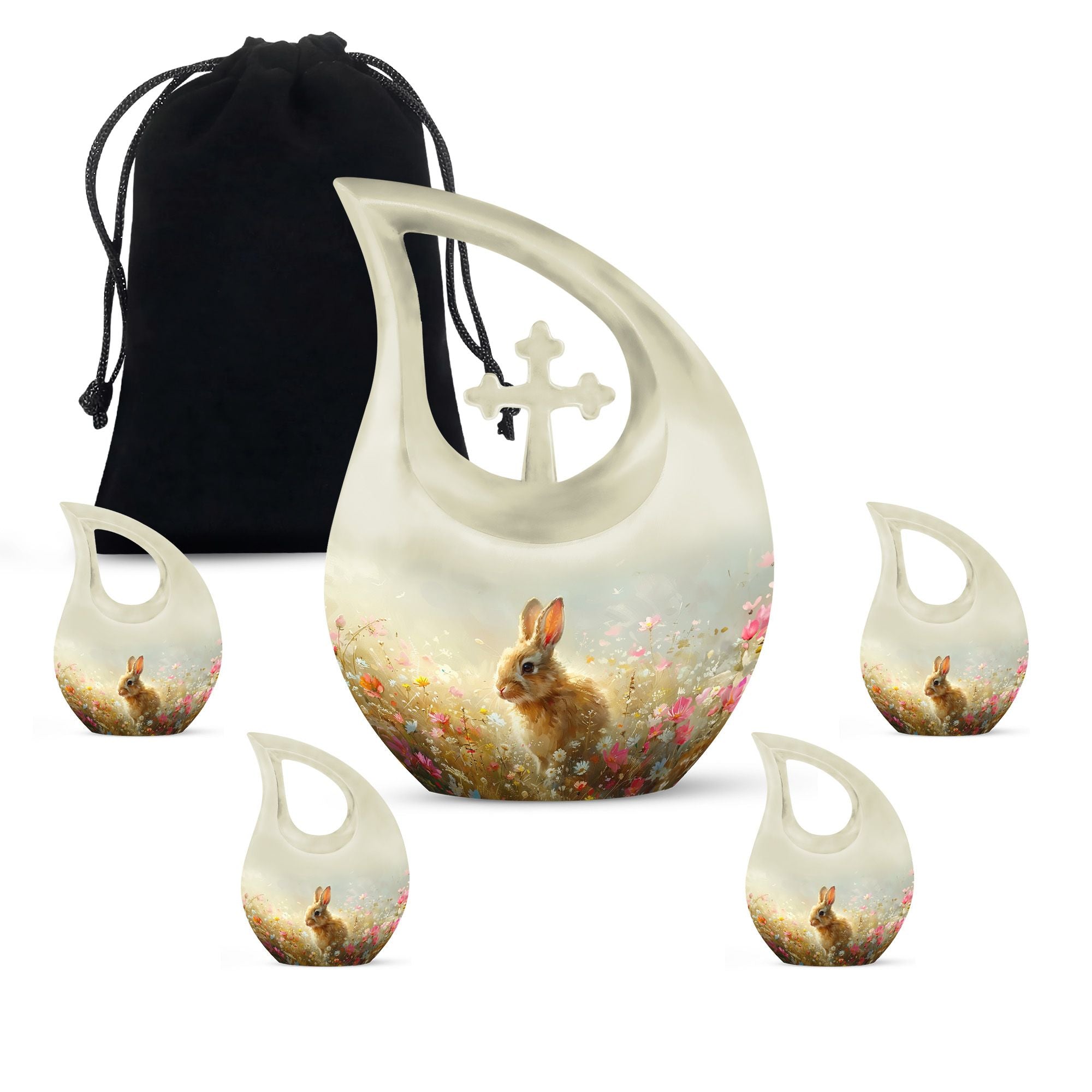 Baby Bunny Rabbit Urn – Beautiful Floral Design Memorial for Pet Remains