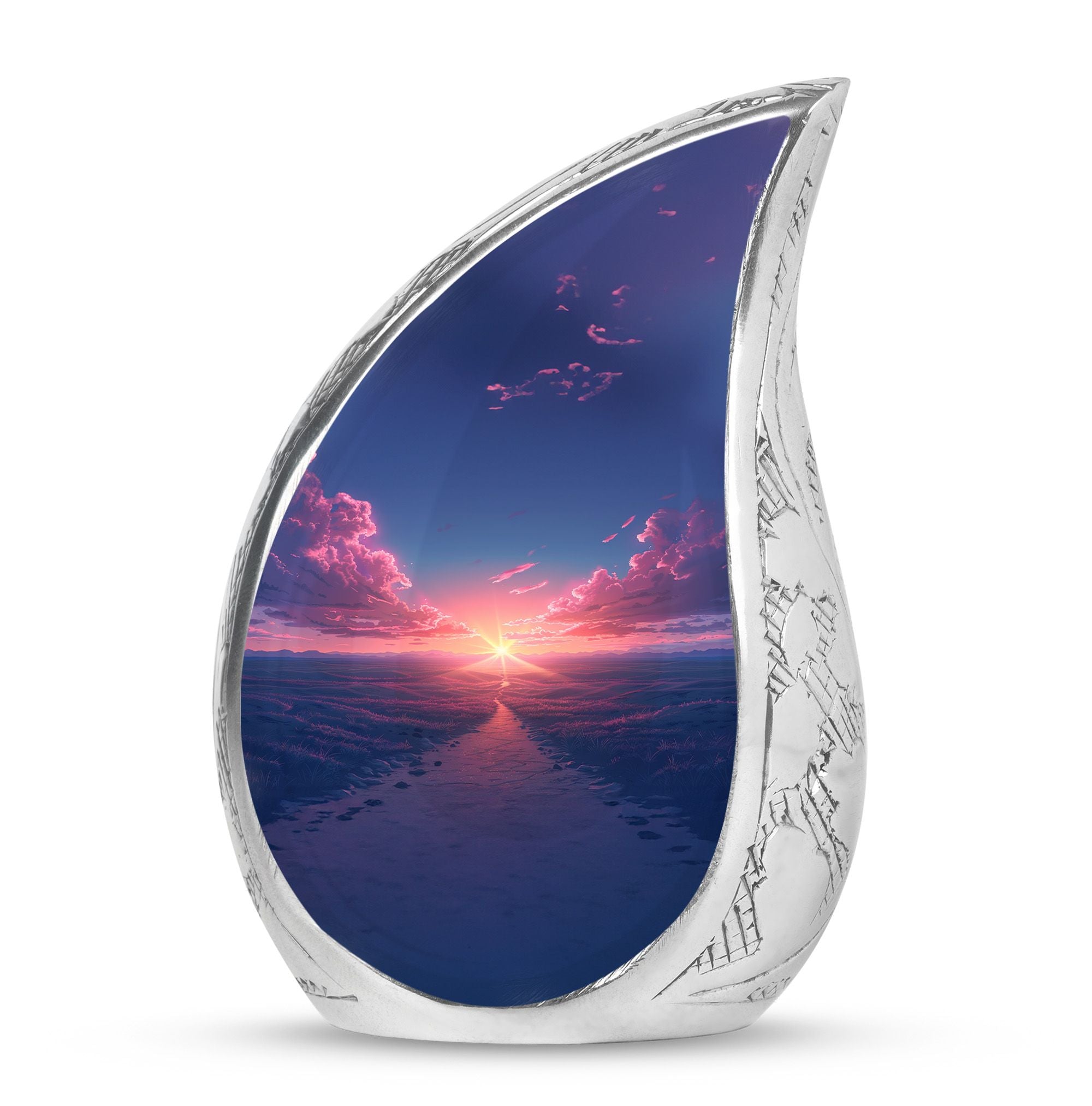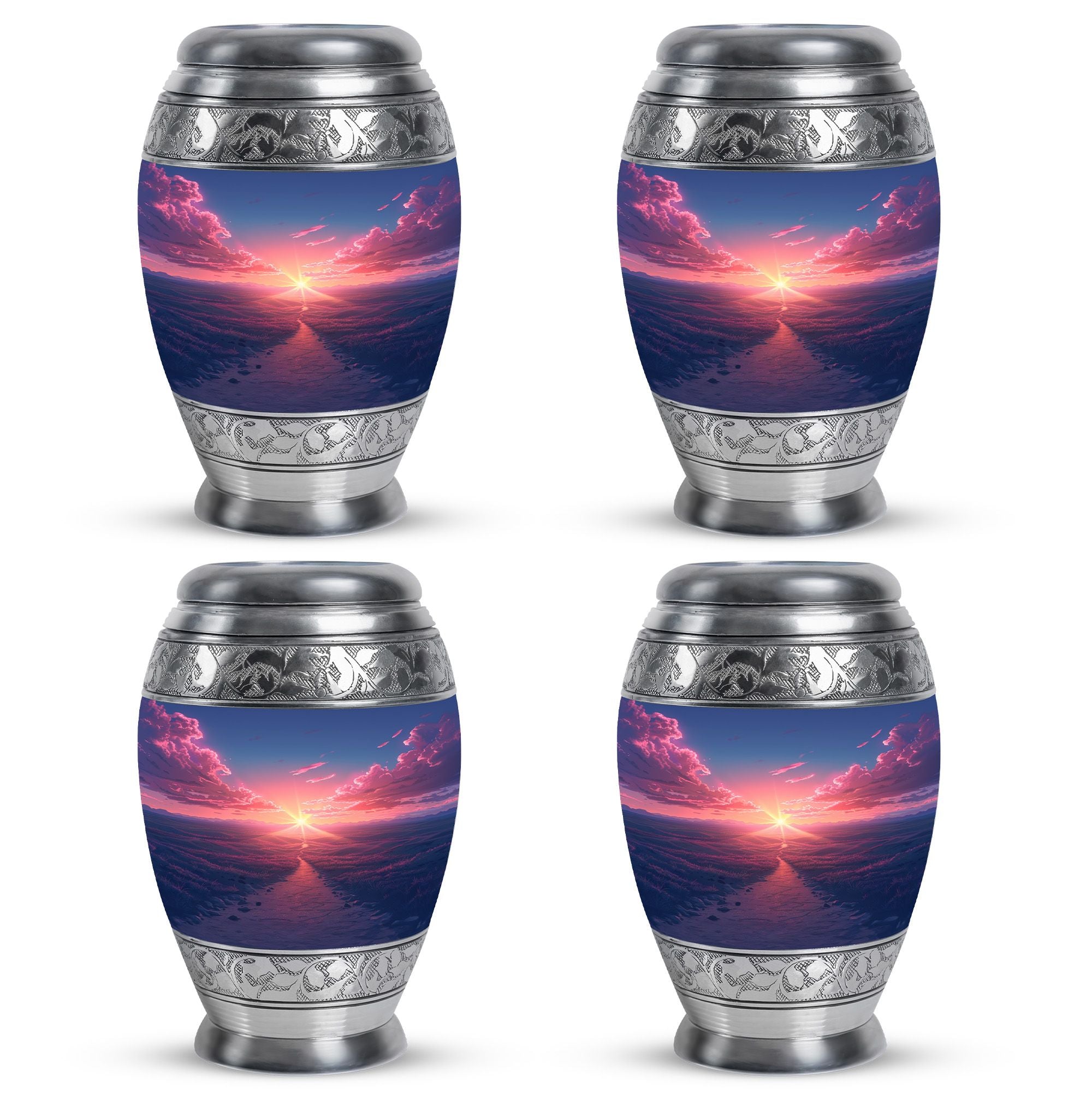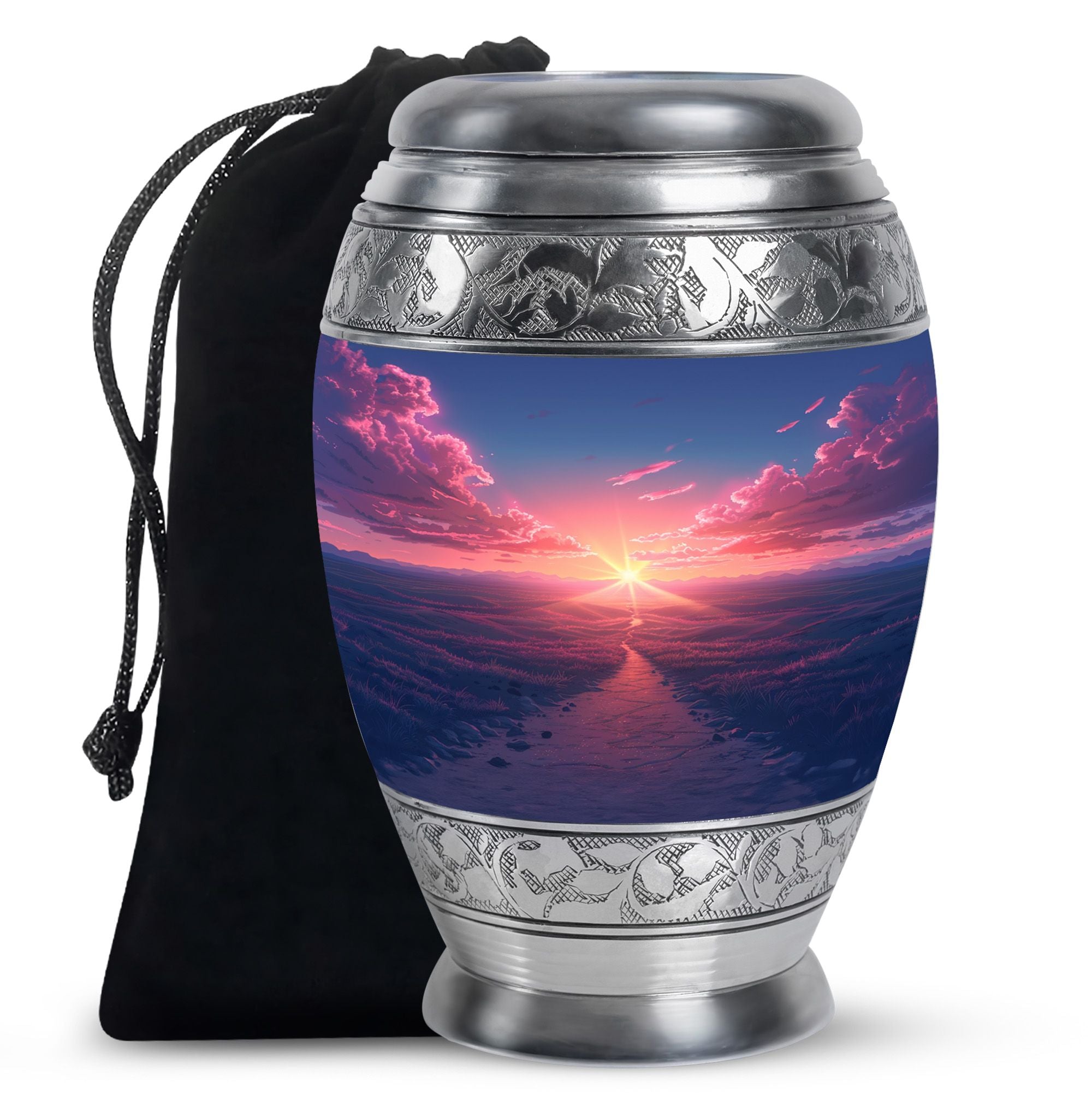 Made from durable aluminum, this urn features a secure screw-top lid to keep remains safe. With its soft pink sunrise motif, it is ideal for families needing cremation urns for men, adult urns for women, or urns for human ashes adult large. Whether you choose the large size or small urns for women human ashes, this design offers versatility and dignity.