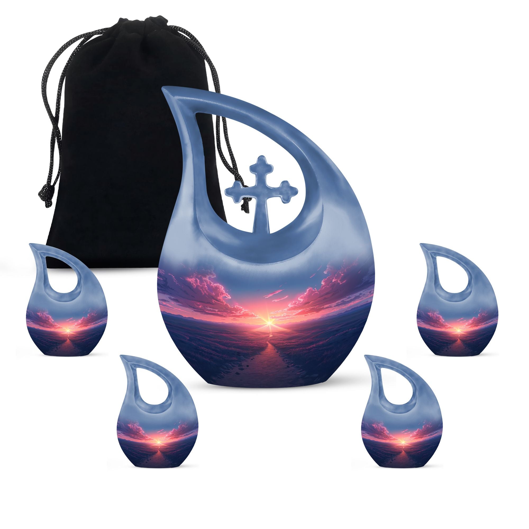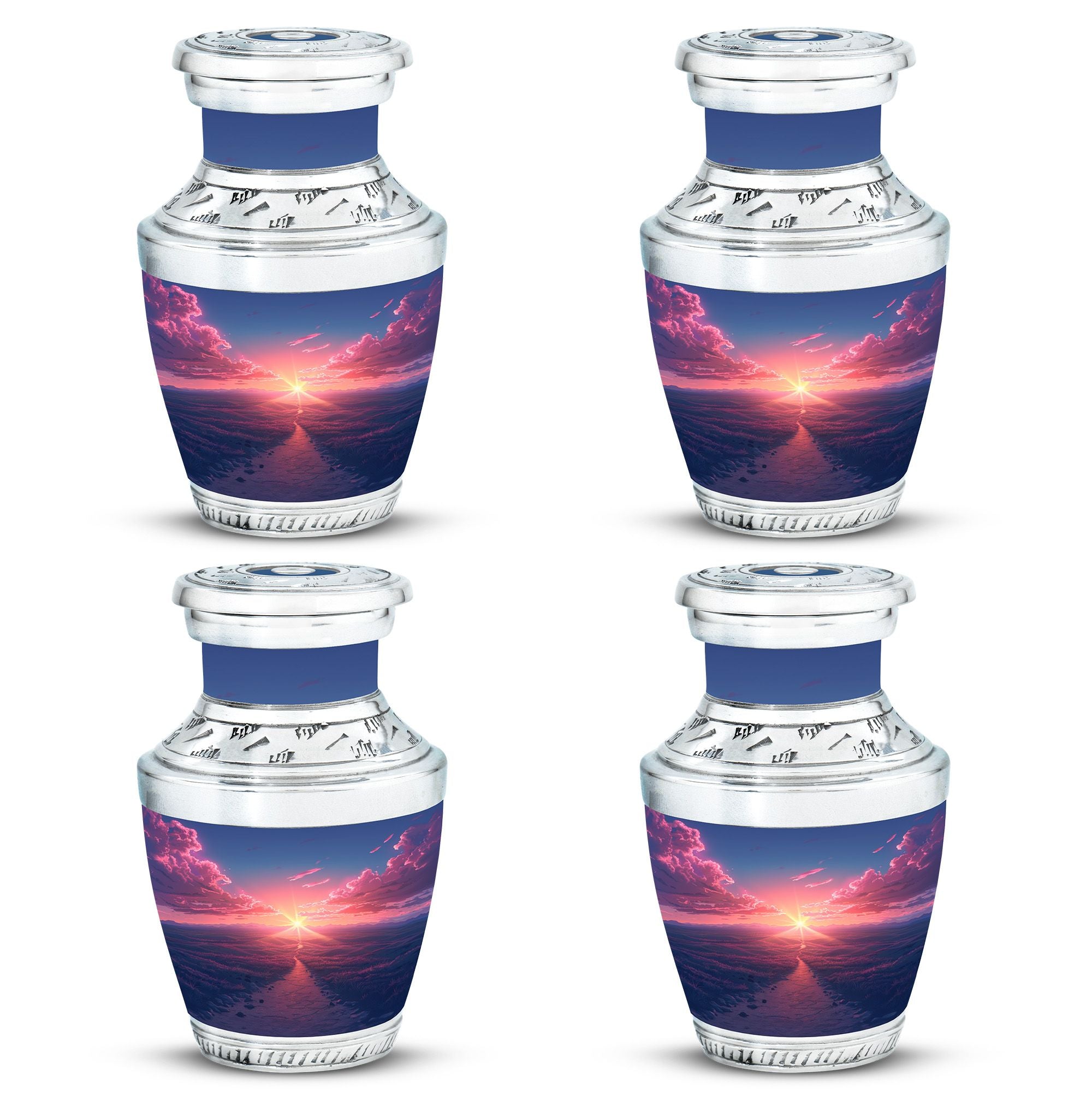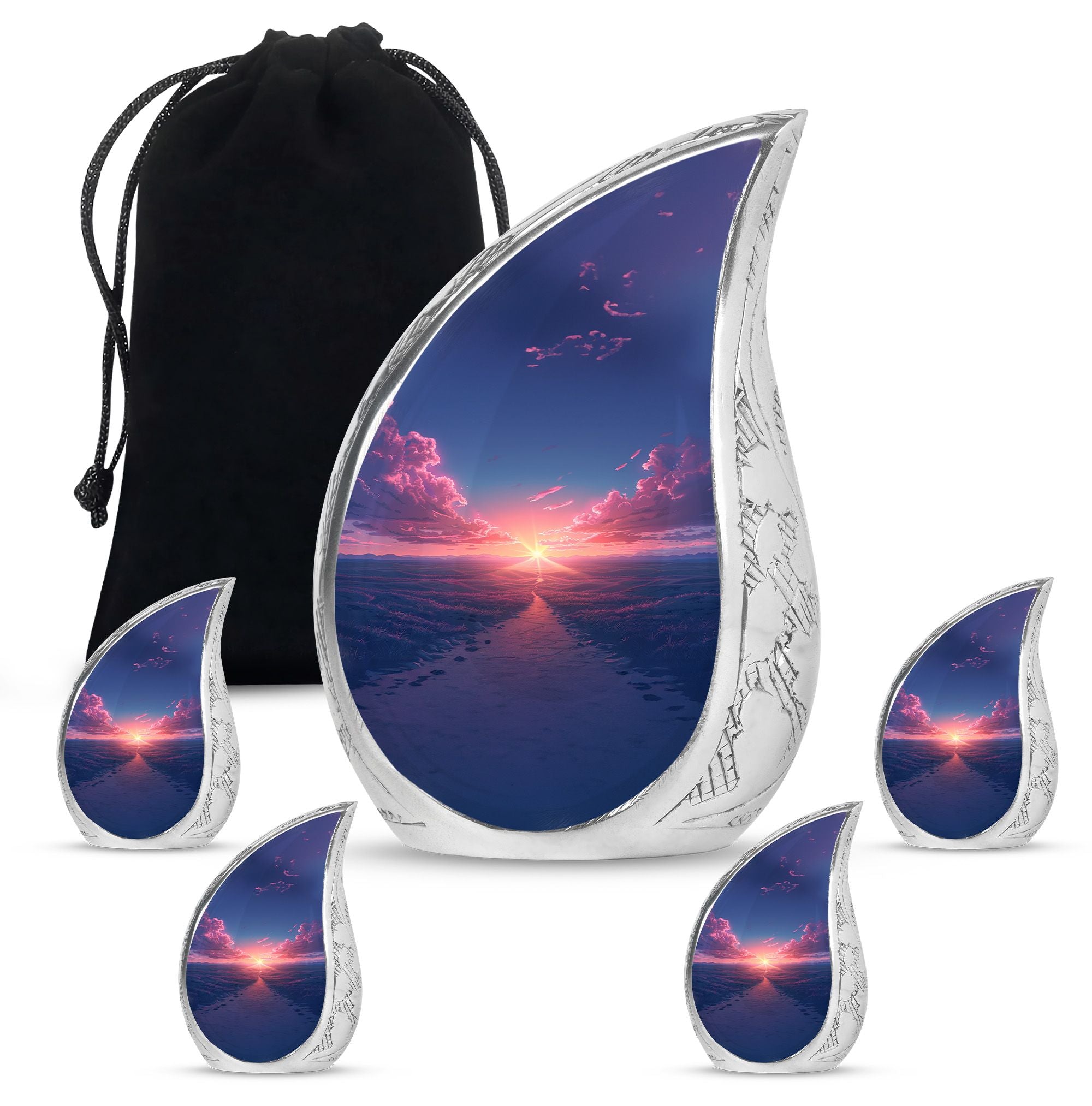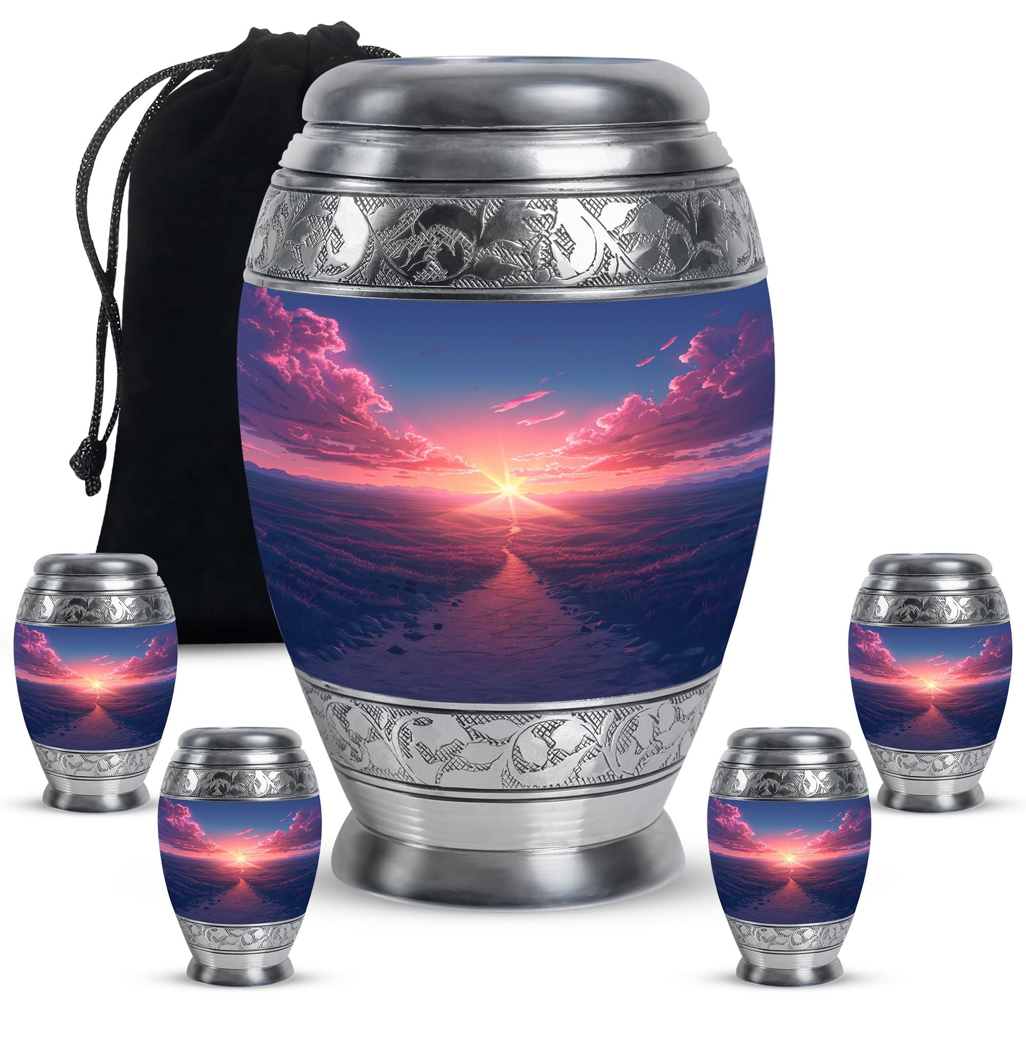 Made from durable aluminum, this urn features a secure screw-top lid to keep remains safe. With its soft pink sunrise motif, it is ideal for families needing cremation urns for men, adult urns for women, or urns for human ashes adult large. Whether you choose the large size or small urns for women human ashes, this design offers versatility and dignity.