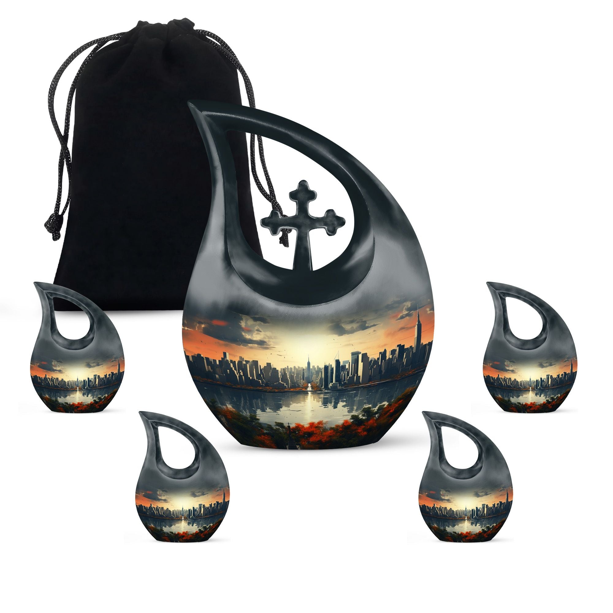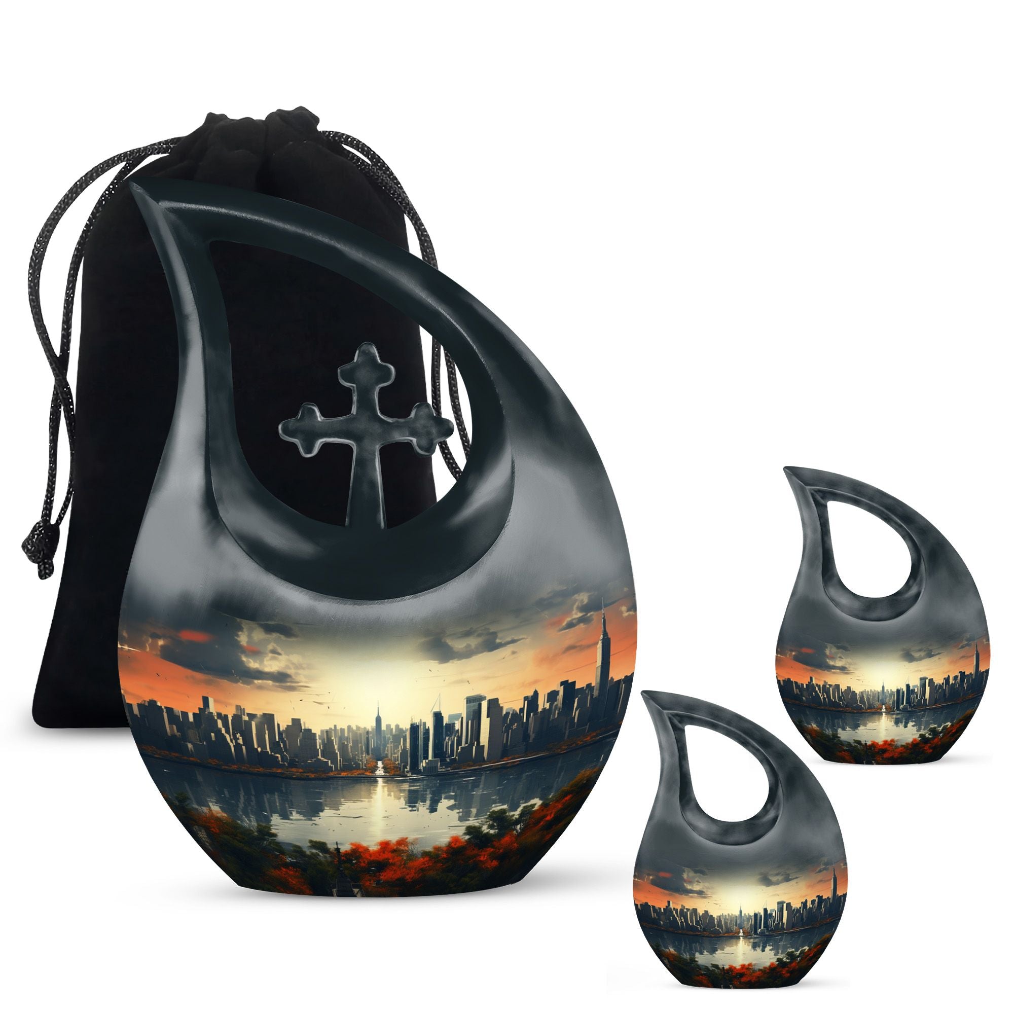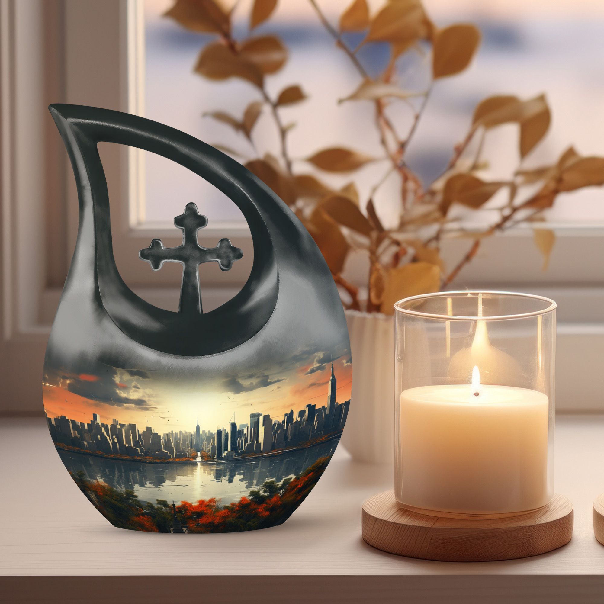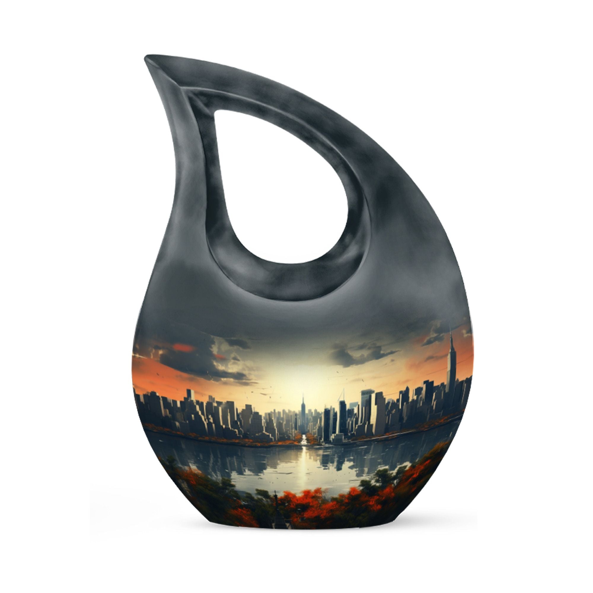 Honor a life lived with ambition, beauty, and light with our Black Teardrop Cremation Urn, featuring a breathtaking New York City Skyline Sunset Design. Symbolizing dreams, resilience, and eternal brilliance, this urn beautifully captures the spirit of those who found inspiration in the city’s glow. Perfect as an urn for women & men, it stands as a tribute to every soul who chased life’s horizons with passion.