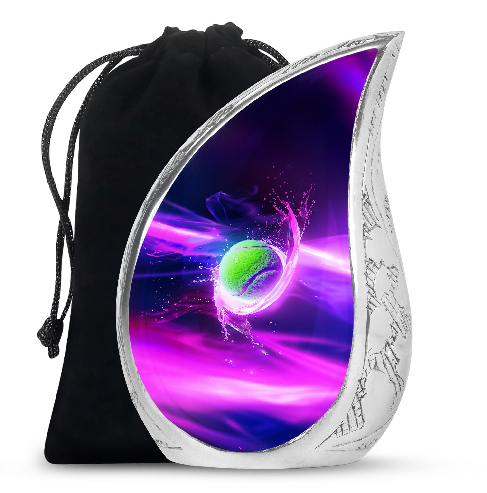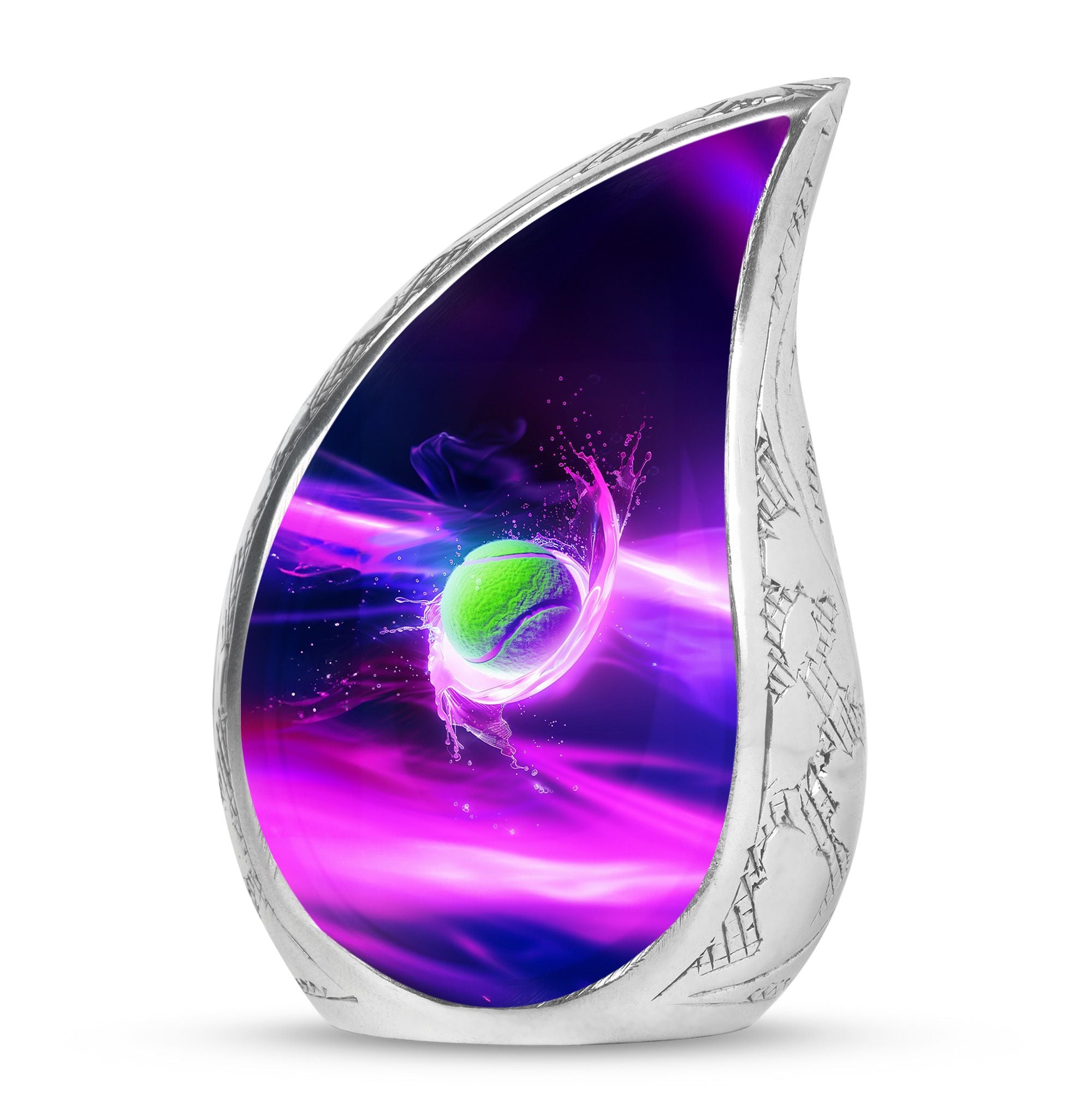 Crafted with care, this urn features durable aluminium construction with a secure screw-top lid. Its vibrant green tennis ball design reflects the energy and spirit of a life well-lived. Suitable for urns for burial in ground or as burial urns for human ashes, it combines style, functionality, and lasting beauty, making it a fitting choice for athletes and sports enthusiasts.