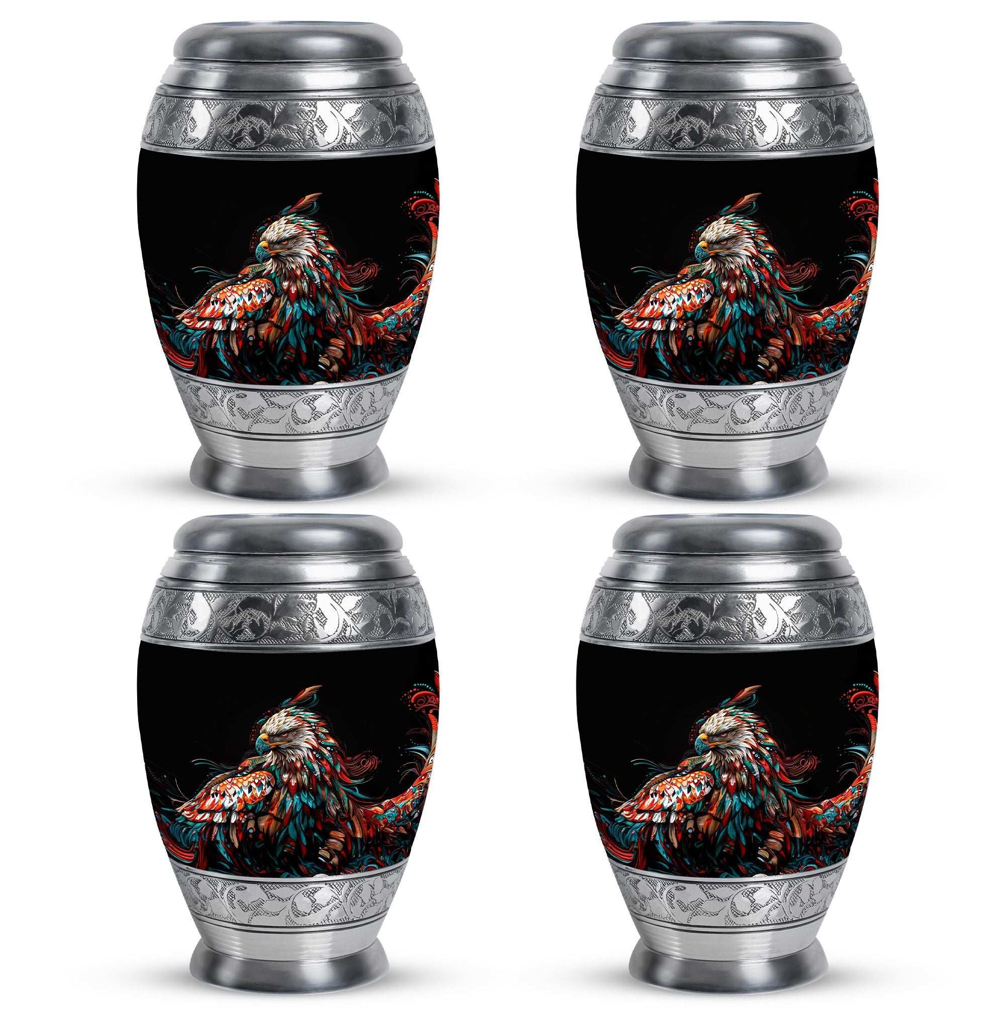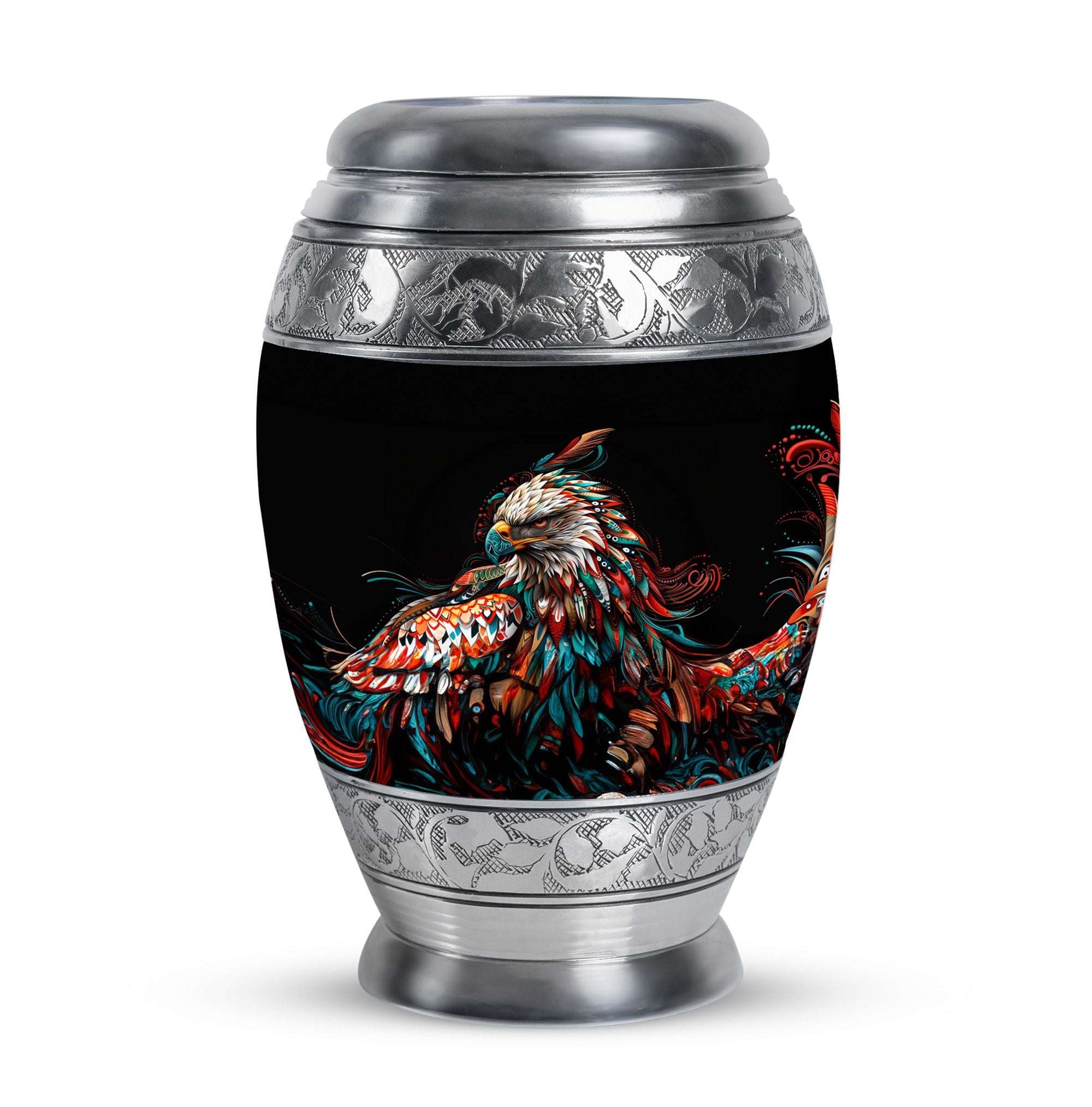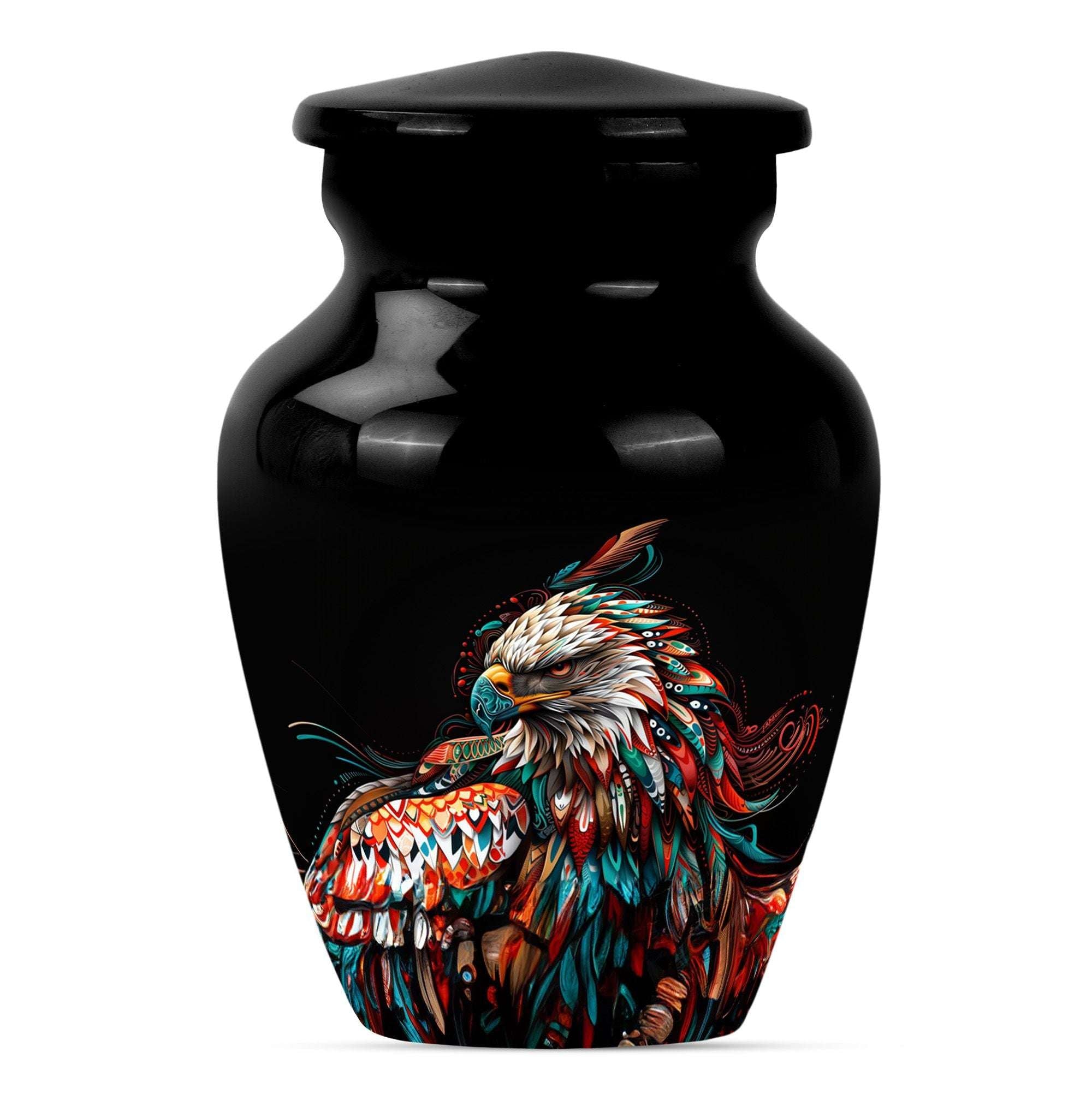 Made with premium aluminum, this urn is both durable and elegant, ensuring the ashes of your loved one are safeguarded with care. Designed with a striking black eagle motif, it stands out as a meaningful tribute for those who embodied courage and strength. As one of the finest urns for human ashes large adult families seek, it combines craftsmanship, functionality, and beauty. The secure screw-top lid ensures peace of mind, while its classic design blends seamlessly with any memorial setting.
