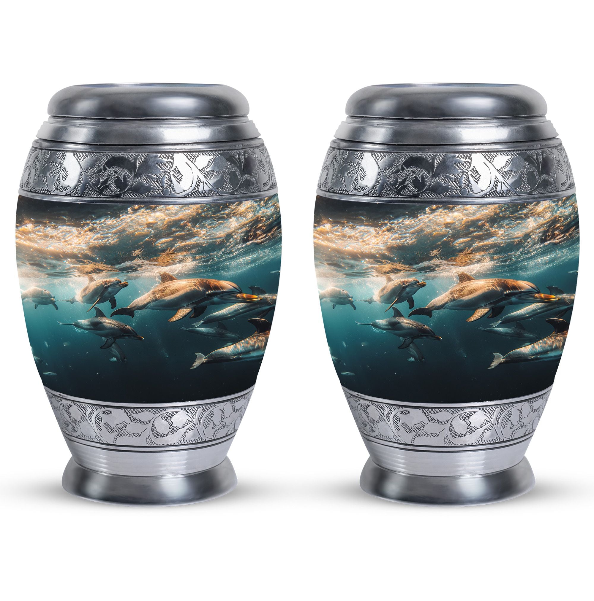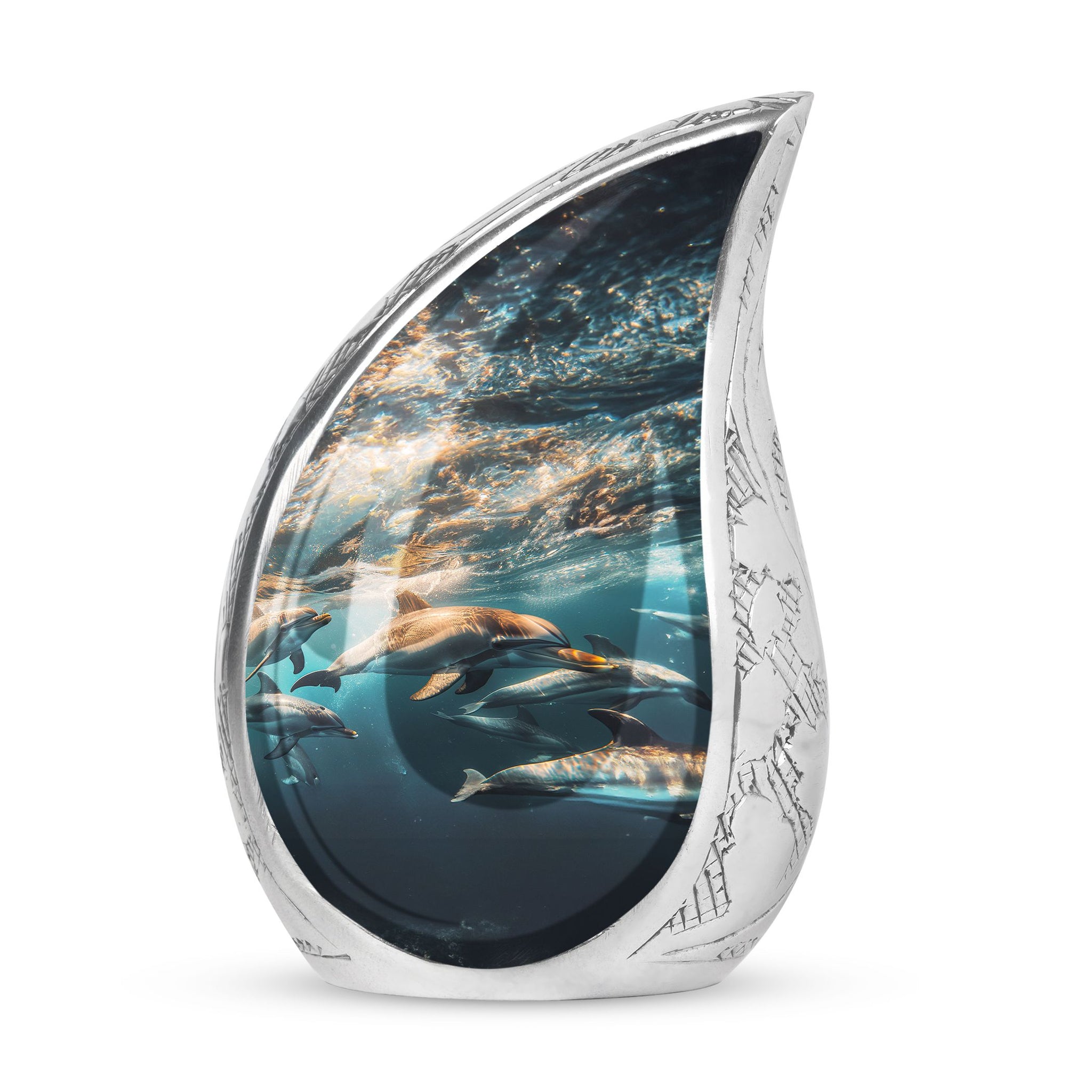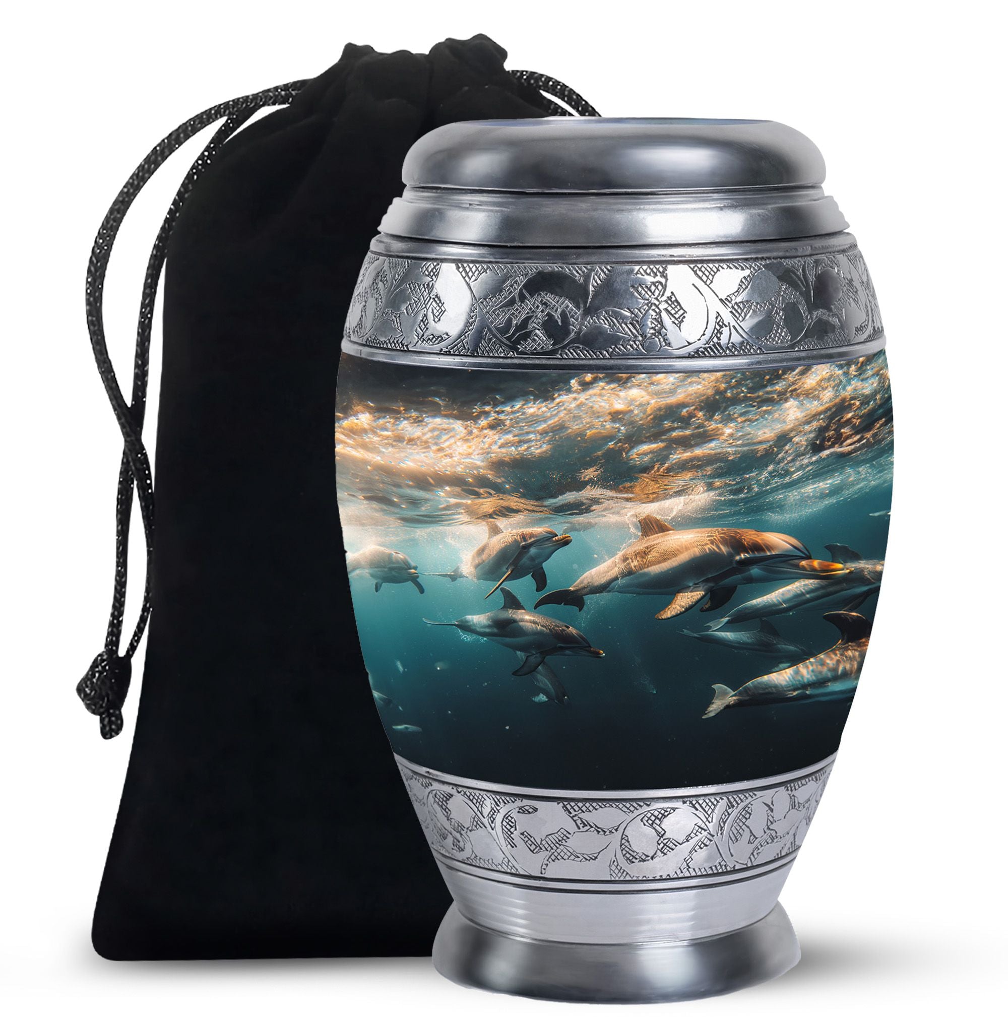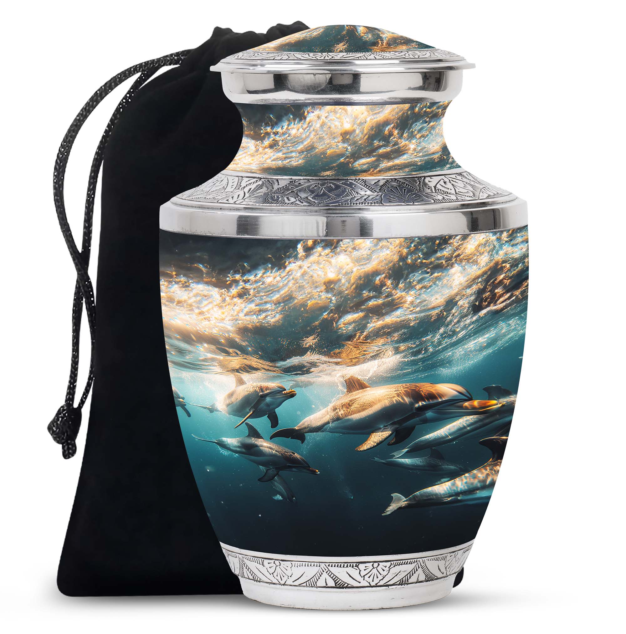 The Underwater Dolphin Family Urn for Memorial – Human Ashes Container captures the beauty of togetherness and serenity beneath the sea. Designed for those who cherished the ocean’s peaceful embrace, this cremation urn serves as a loving tribute to a life filled with compassion and connection. With its elegant dolphin family motif, this urn embodies love, guidance, and everlasting unity — perfect for memorializing a mother, father, or loved one.