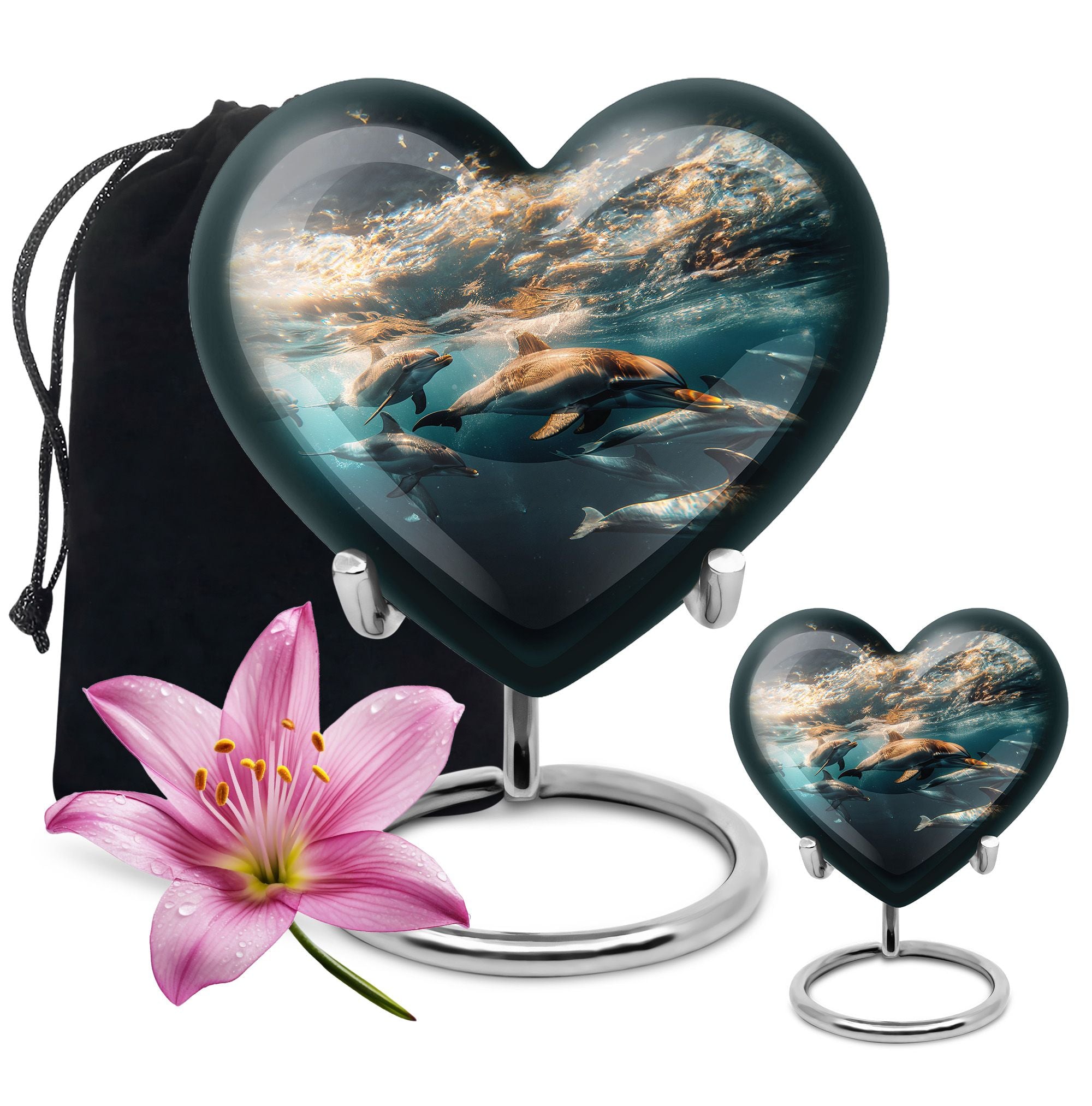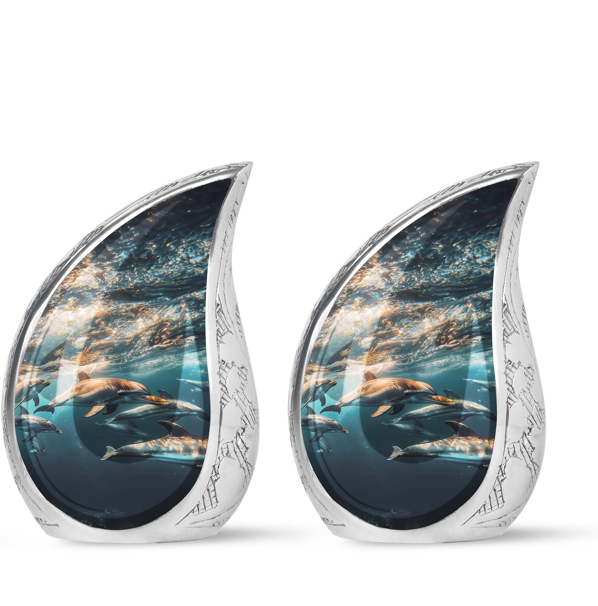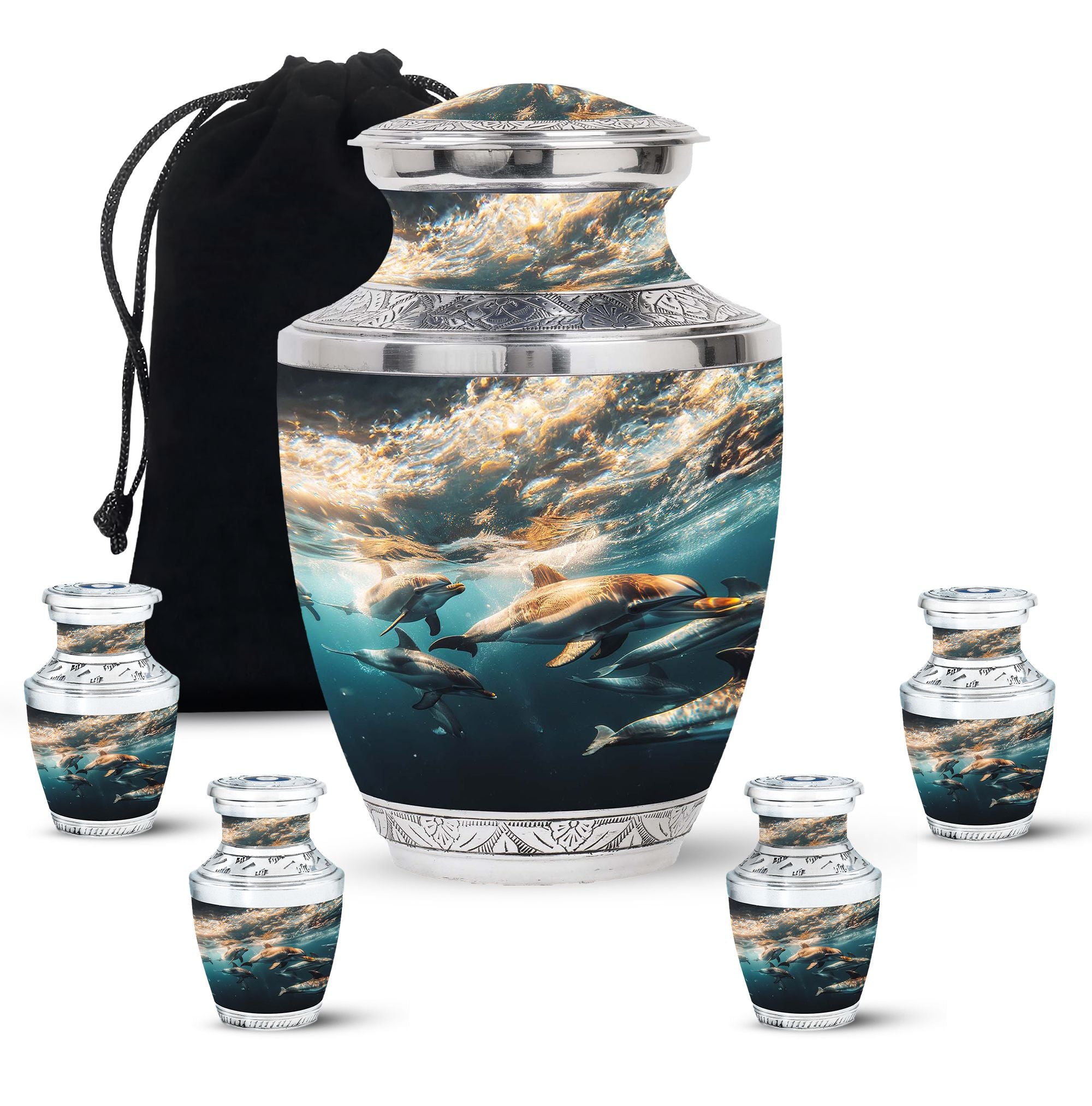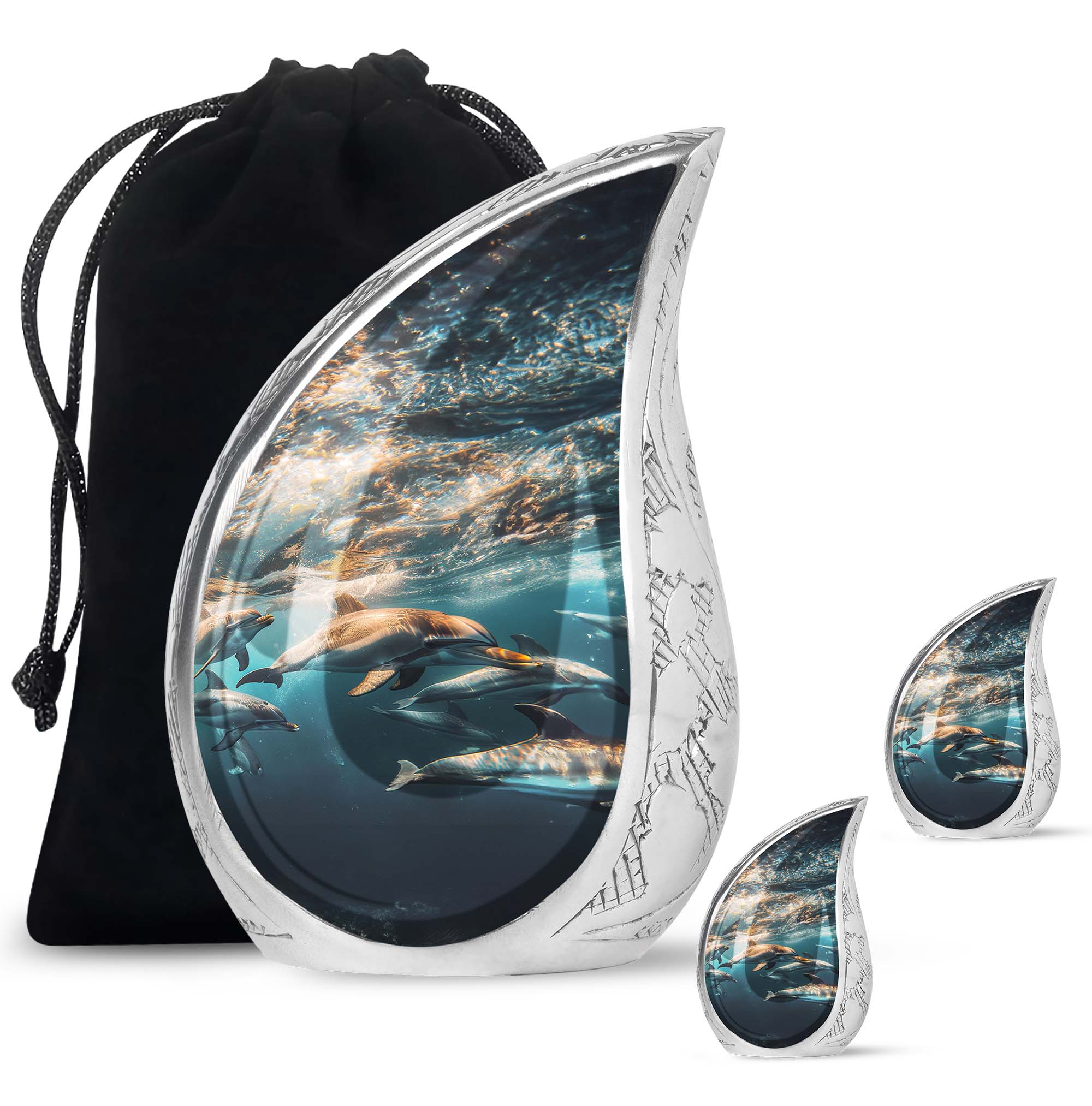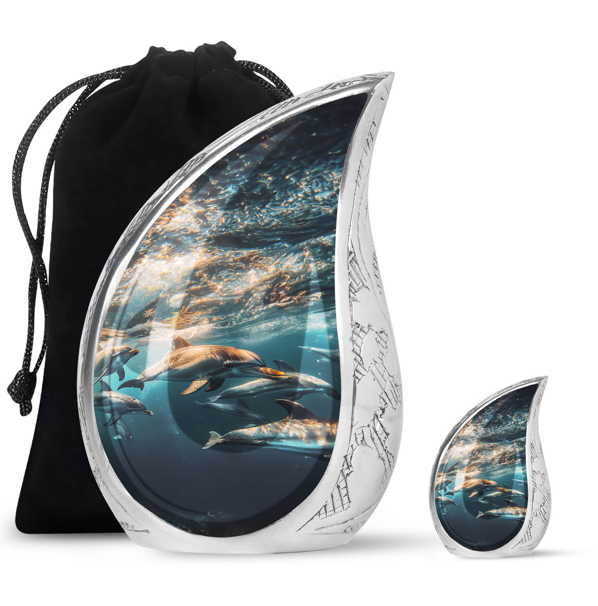 The Underwater Dolphin Family Urn for Memorial – Human Ashes Container captures the beauty of togetherness and serenity beneath the sea. Designed for those who cherished the ocean’s peaceful embrace, this cremation urn serves as a loving tribute to a life filled with compassion and connection. With its elegant dolphin family motif, this urn embodies love, guidance, and everlasting unity — perfect for memorializing a mother, father, or loved one.