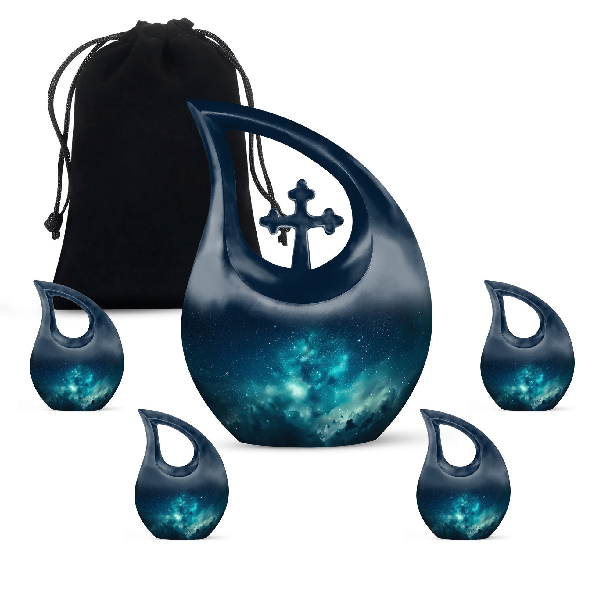 Each urn for ashes adult female is meticulously handcrafted from high-quality aluminum, showcasing stunning colors that resemble the glowing aurora in the night sky. Its sleek silhouette and durable finish ensure longevity and elegance. Perfectly sized, it serves as one of the most refined urns for cremation ashes female options, balancing design and durability. Whether you seek small urns for human ashes adult female or a full-size memorial urn, its craftsmanship reflects timeless respect and artistry.