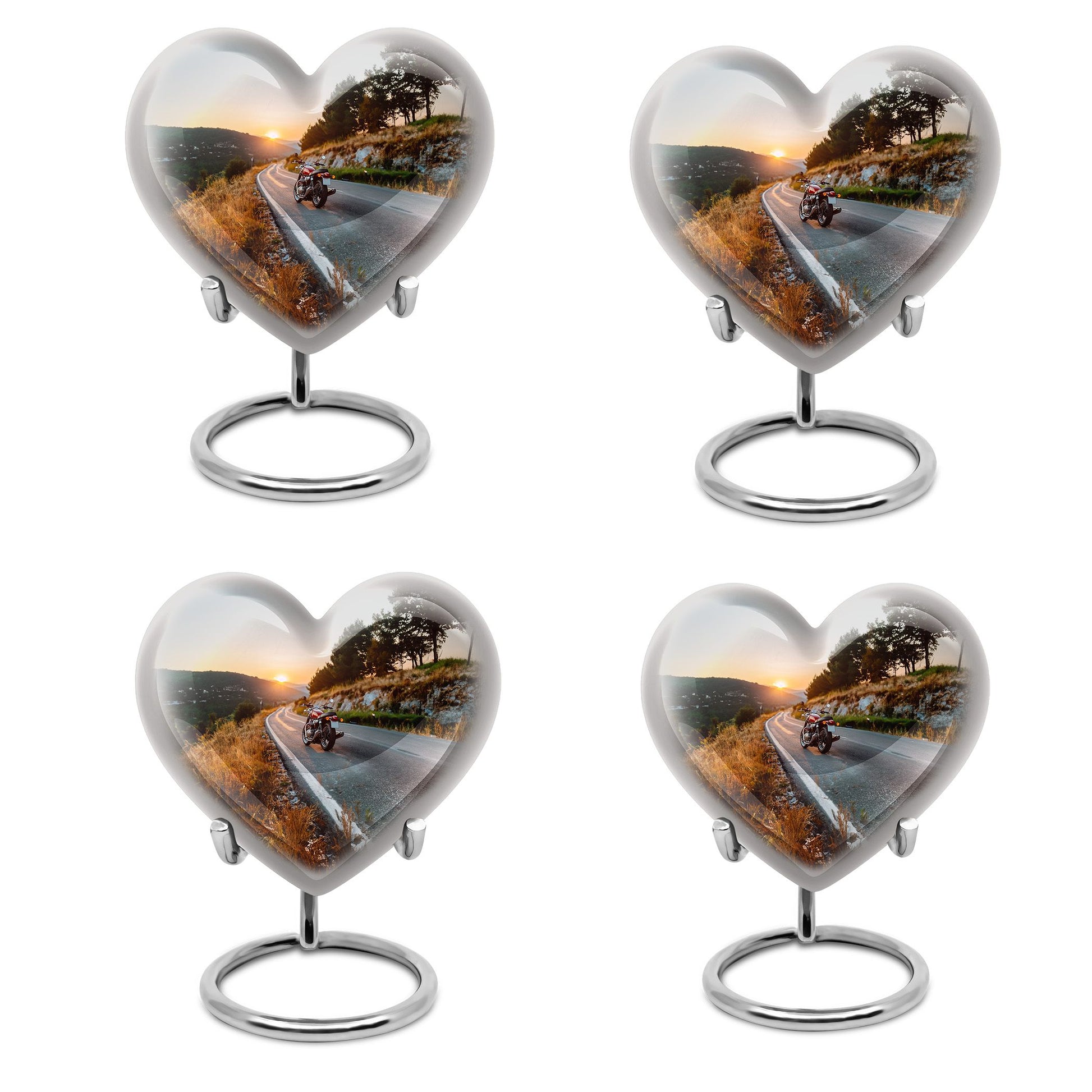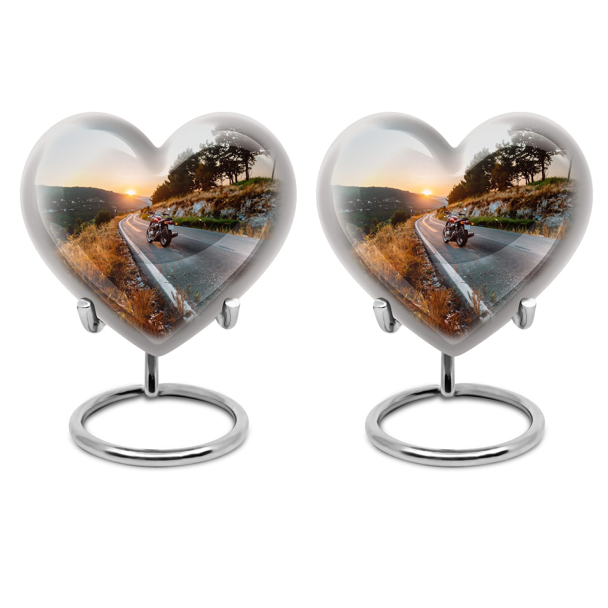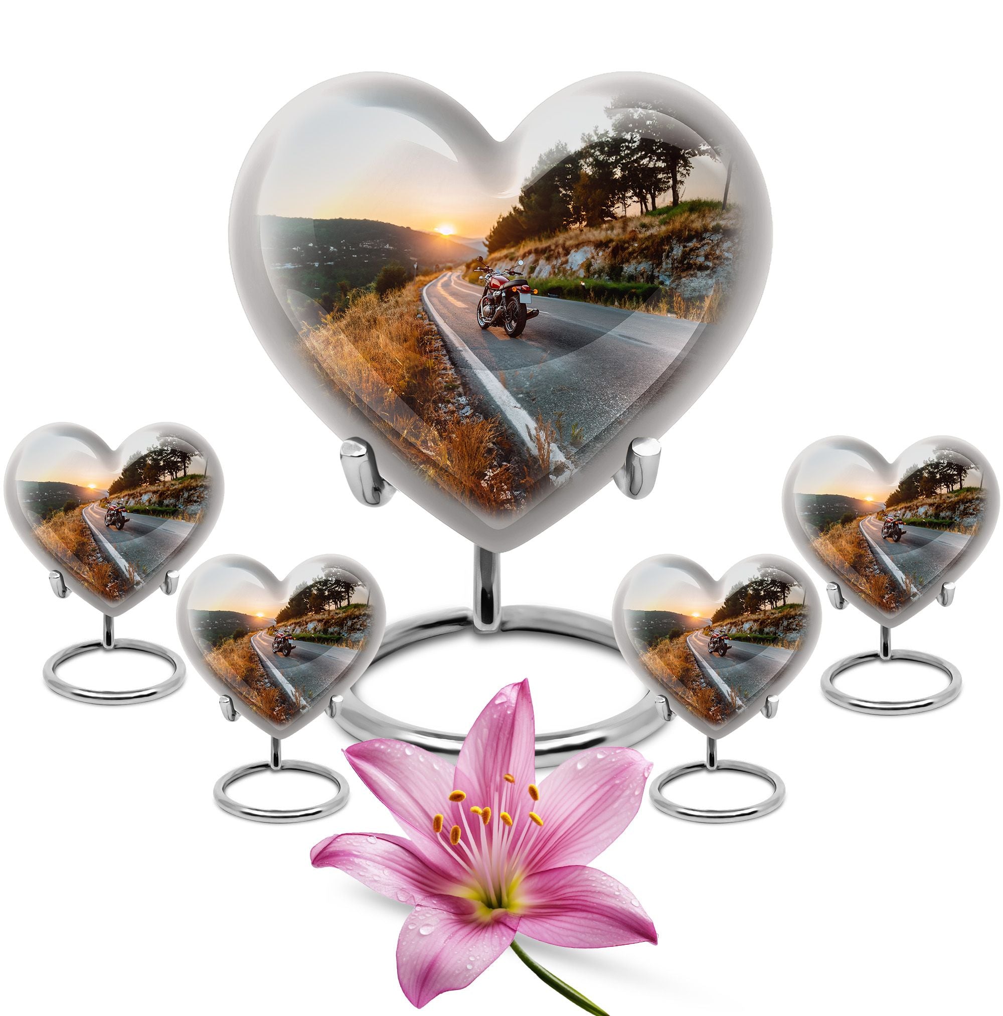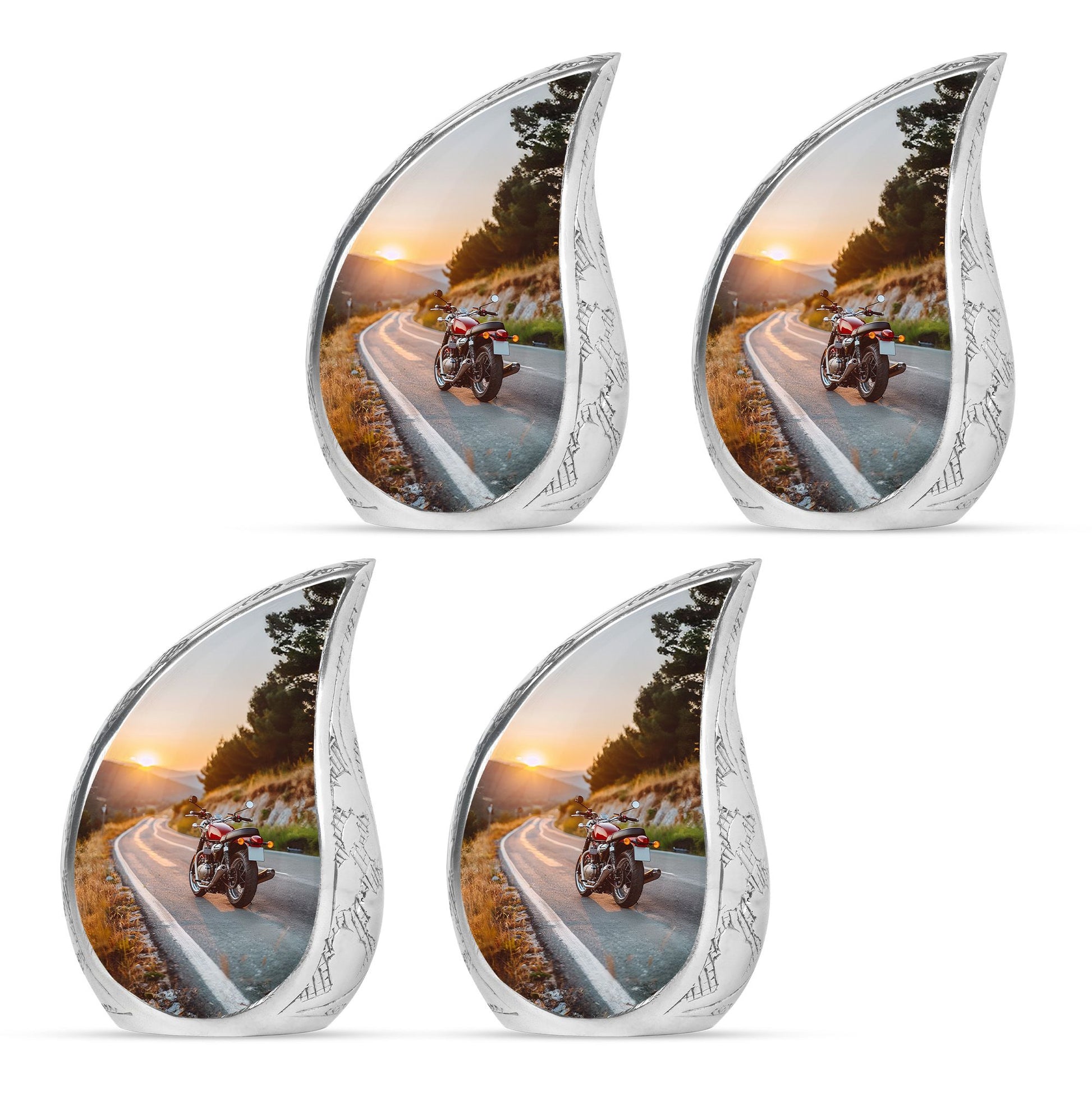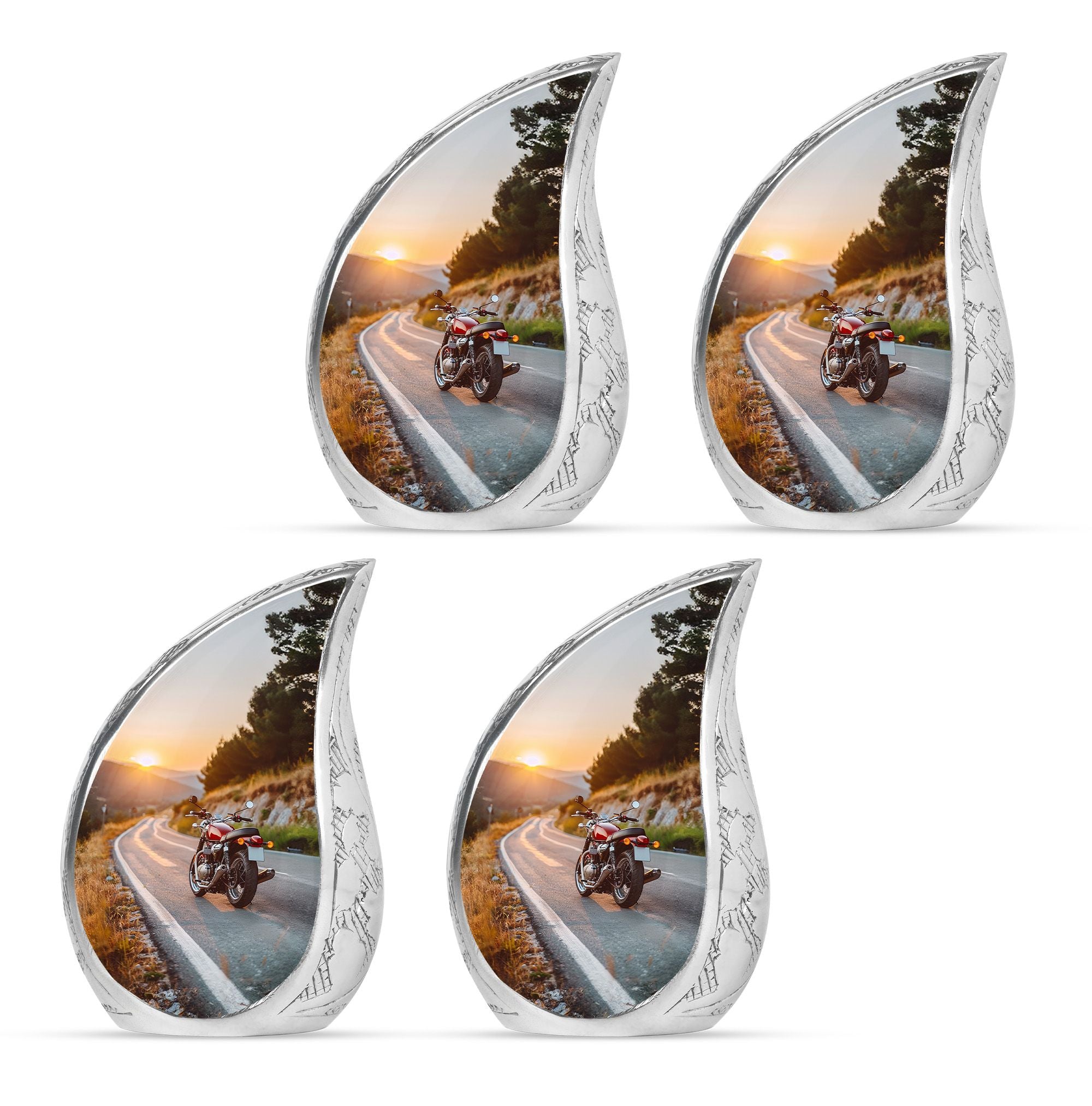 Crafted with high-quality aluminium, this urn showcases a detailed motorbike design against a roadways theme, symbolizing adventure and eternal memories. Its secure screw-top lid ensures safe storage, making it versatile as a small urn for ashes for women, mini urn for ashes for women, or even mini small urns for men. Families seeking cremation urns for women or adult urns for human ashes men will find this design both meaningful and dignified.