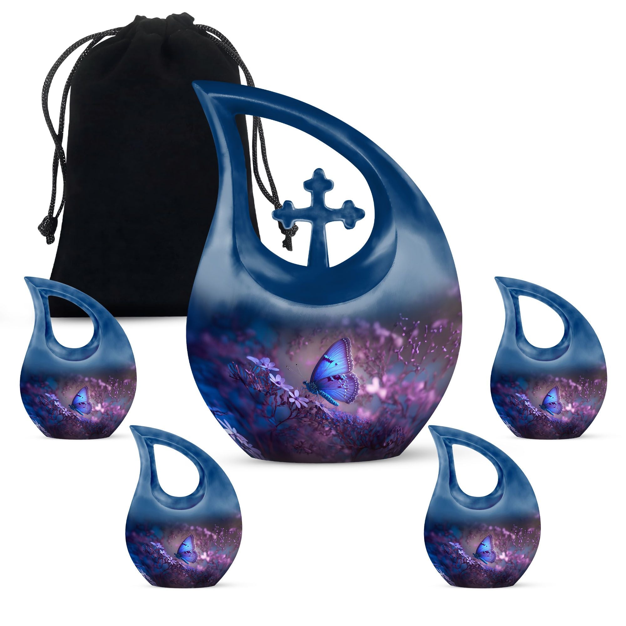 Celebrate the life of your loved one with the Blue Butterfly Cremation Ashes Urn, adorned with a delicate purple floral design. This decorative miniature urn provides a meaningful way to honor human ashes keepsake, urn keepsakes for ashes, or mini urn for mom ashes, keeping treasured memories close with care and dignity.