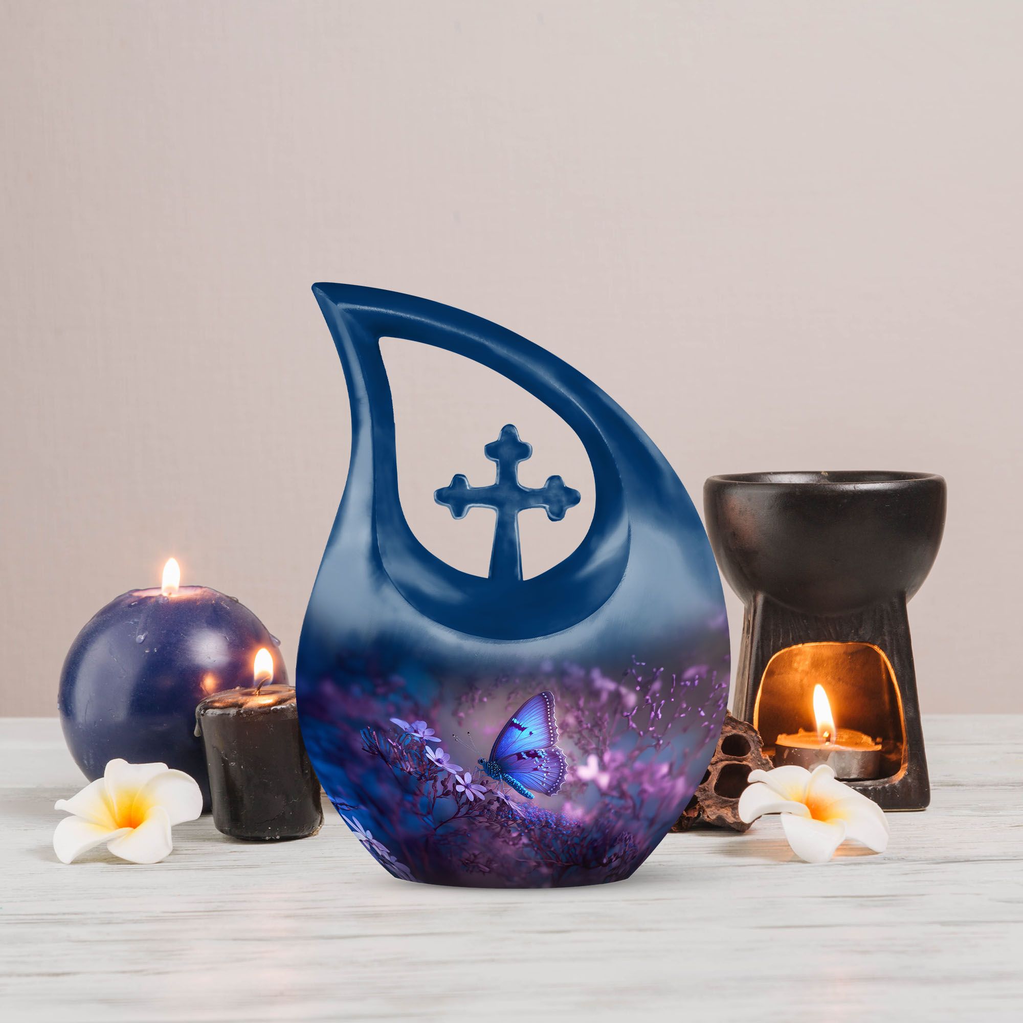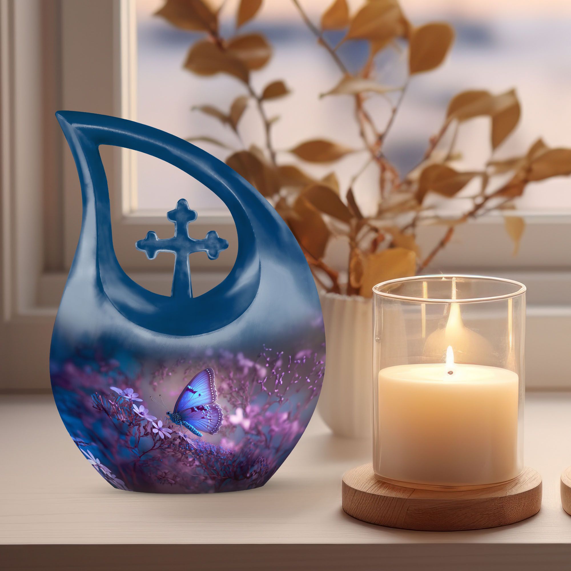 This urn also works beautifully as a keepsake for ashes or ashes keepsake for human ashes, offering families a tender way to honor their loved one. Whether displayed at home or used during memorial ceremonies, the Blue Butterfly Cremation Ashes Urn provides comfort and a lasting tribute.