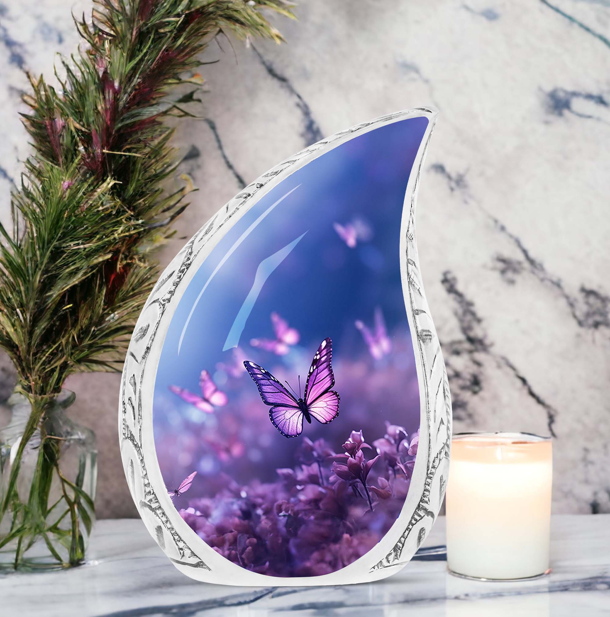 This pink butterfly urn offers a beautiful and heartfelt way to honor the memory of a loved one. Its delicate design symbolizes love, hope, and eternal remembrance, making it a meaningful choice for families seeking dignity and grace.