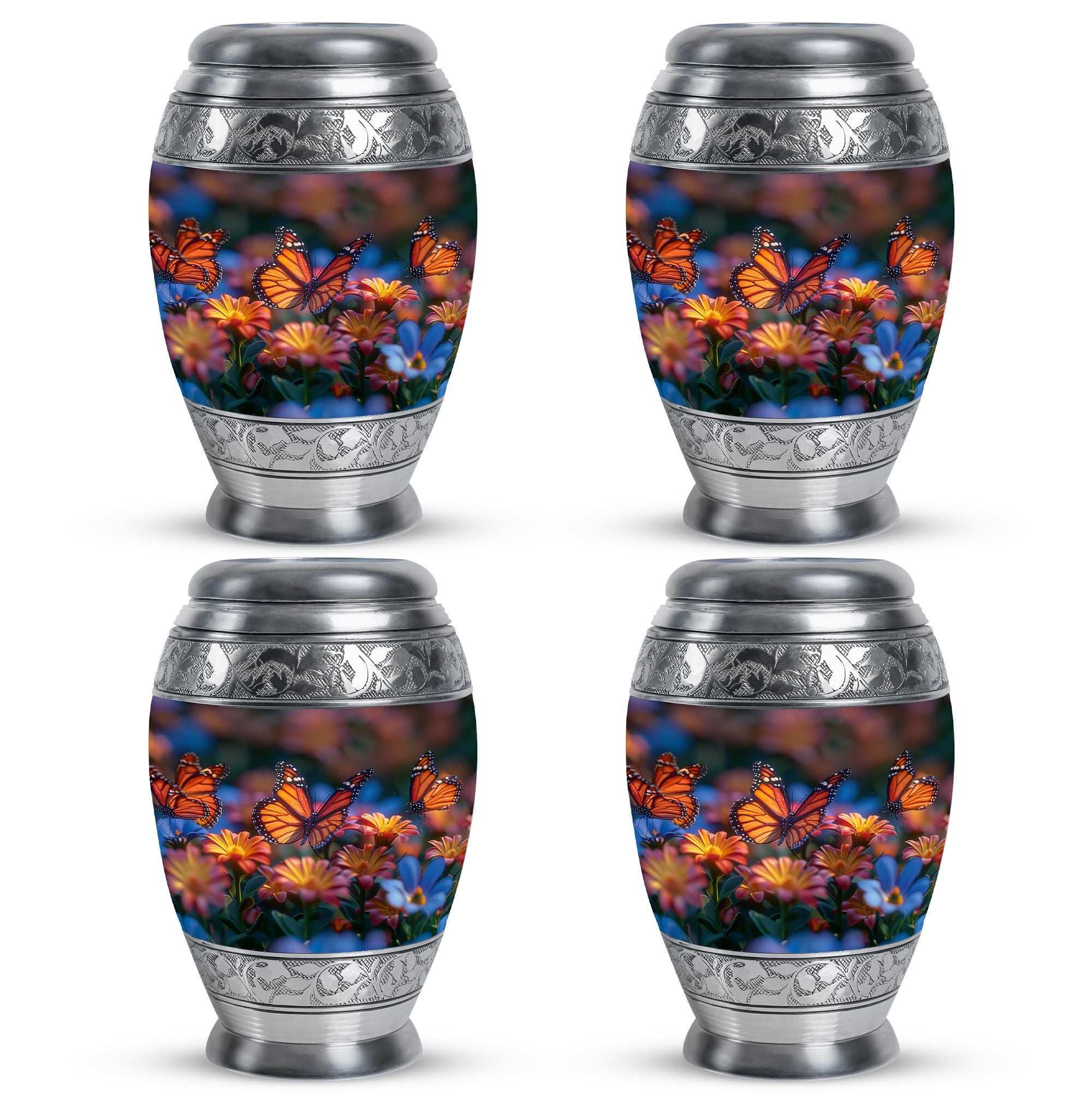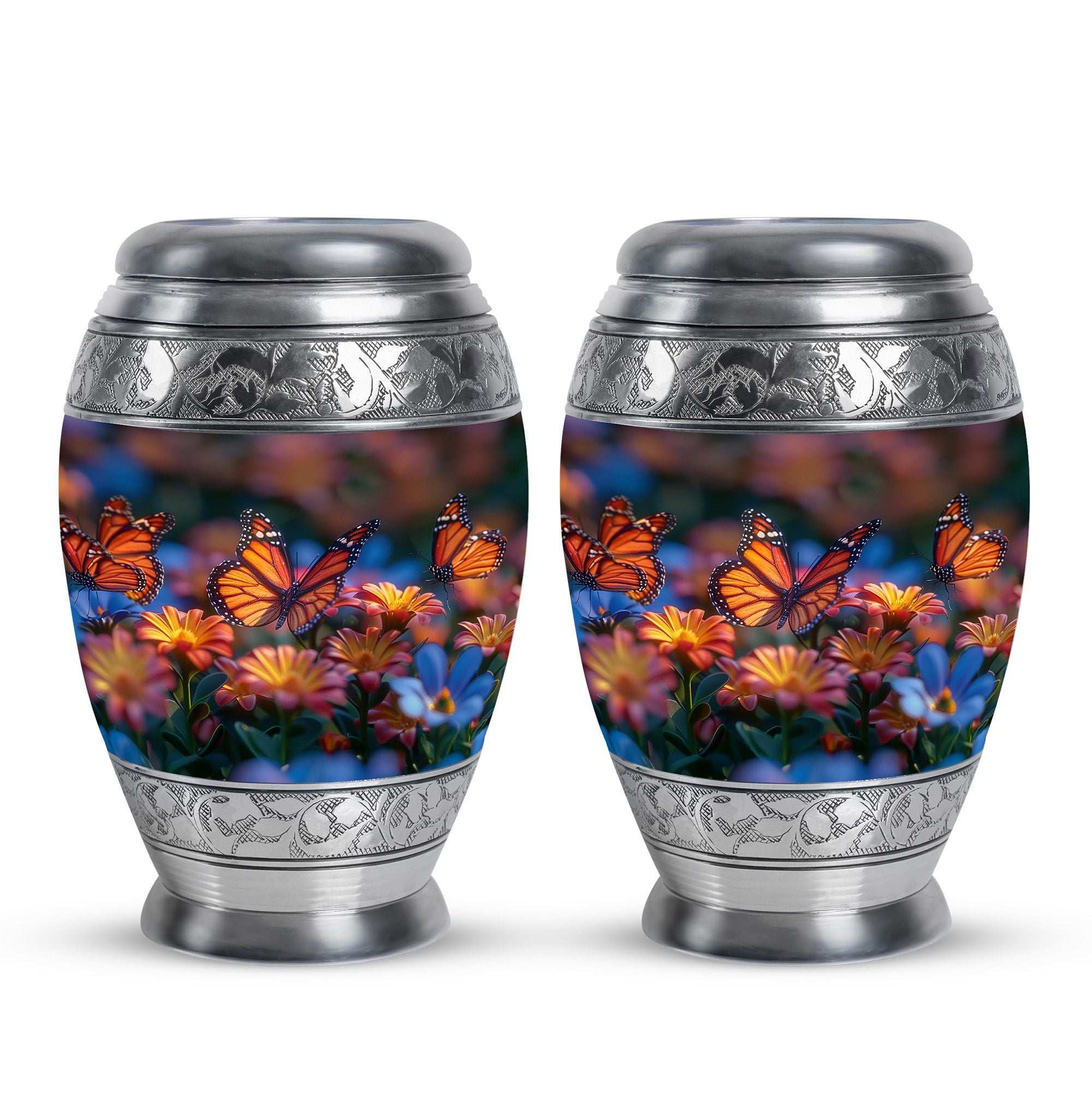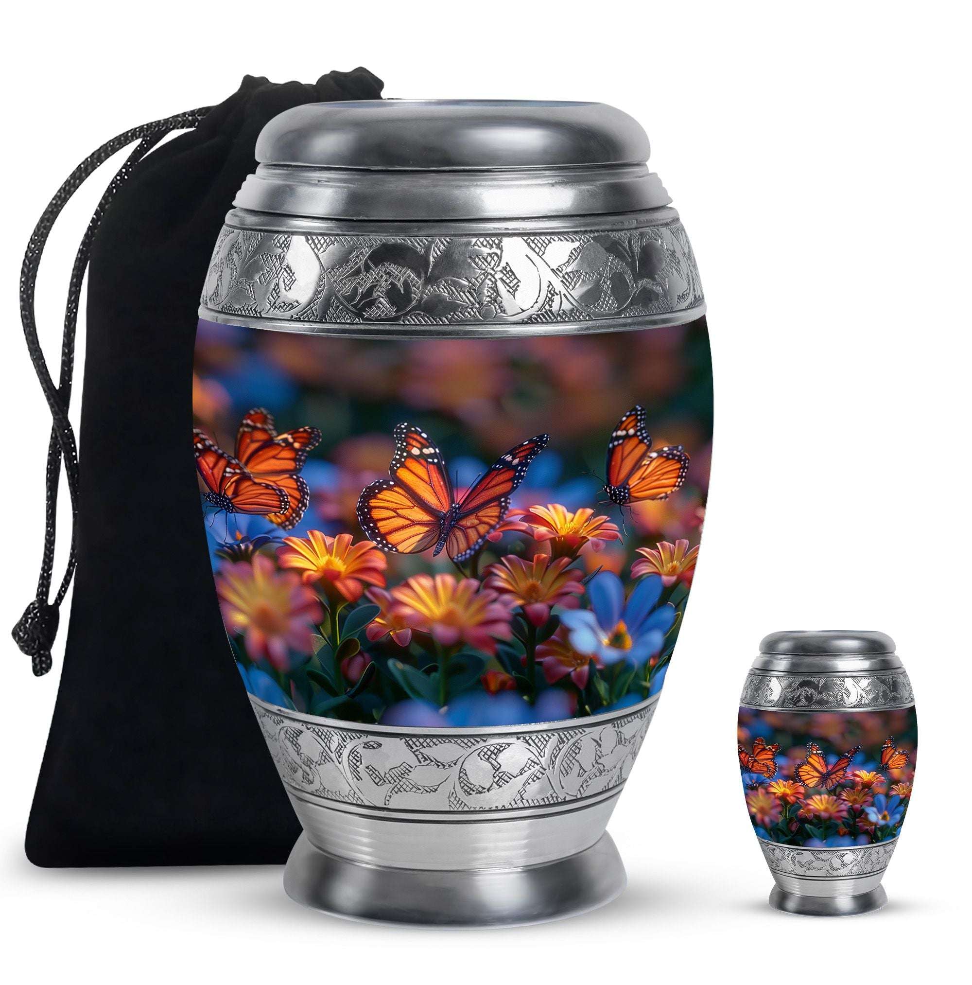 Crafted from durable aluminum, this urn features a stunning Monarch butterfly with floral accents, representing beauty, renewal, and everlasting spirit. Its secure screw-top lid ensures ashes are safely protected, while the detailed butterfly and flower design offers a comforting symbol of remembrance. Families often select this design as cremation urn adult male, large urns for human ashes adult male, or urns for ashes adult male small keepsake when choosing matching pieces to share among loved ones.