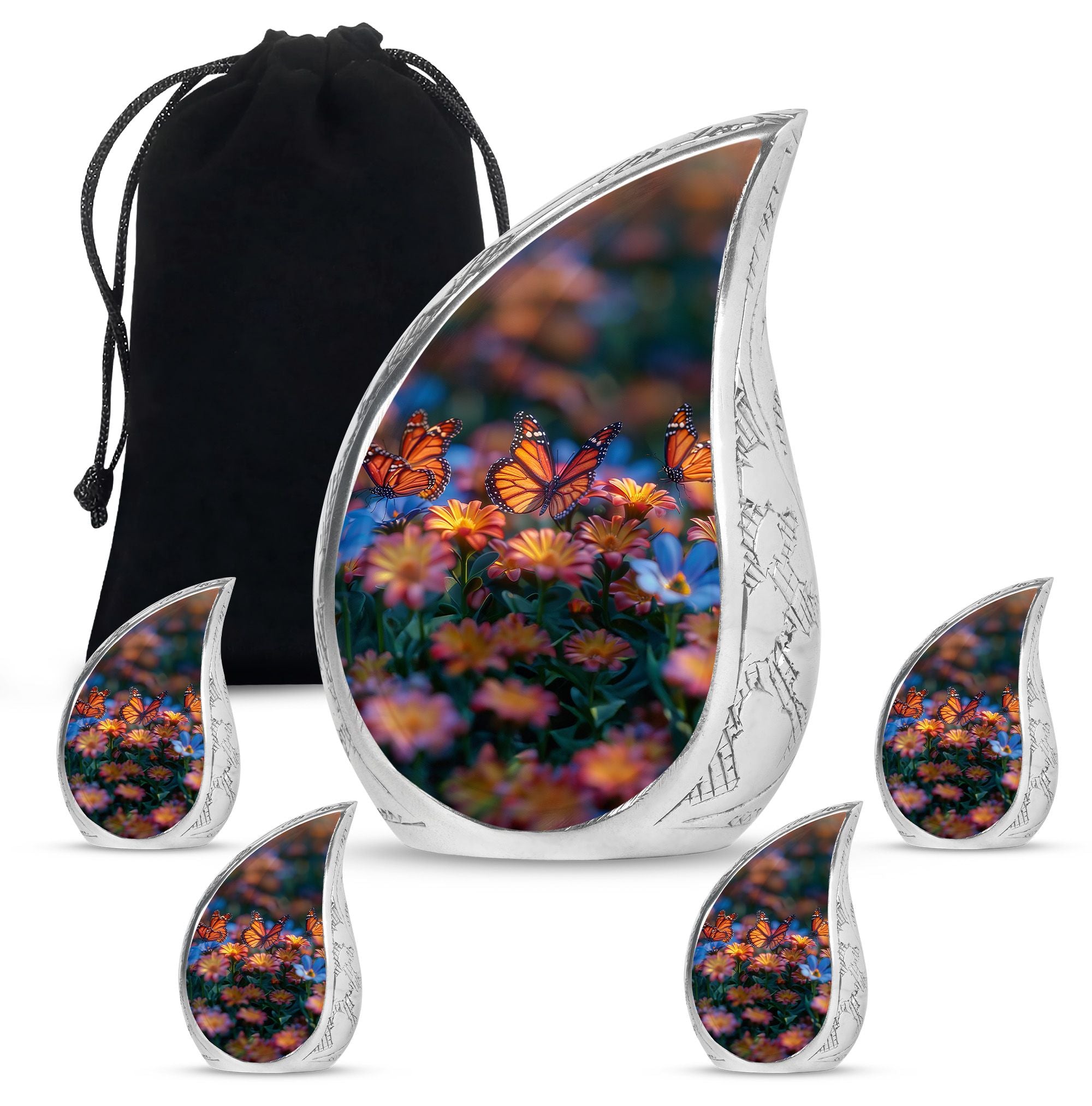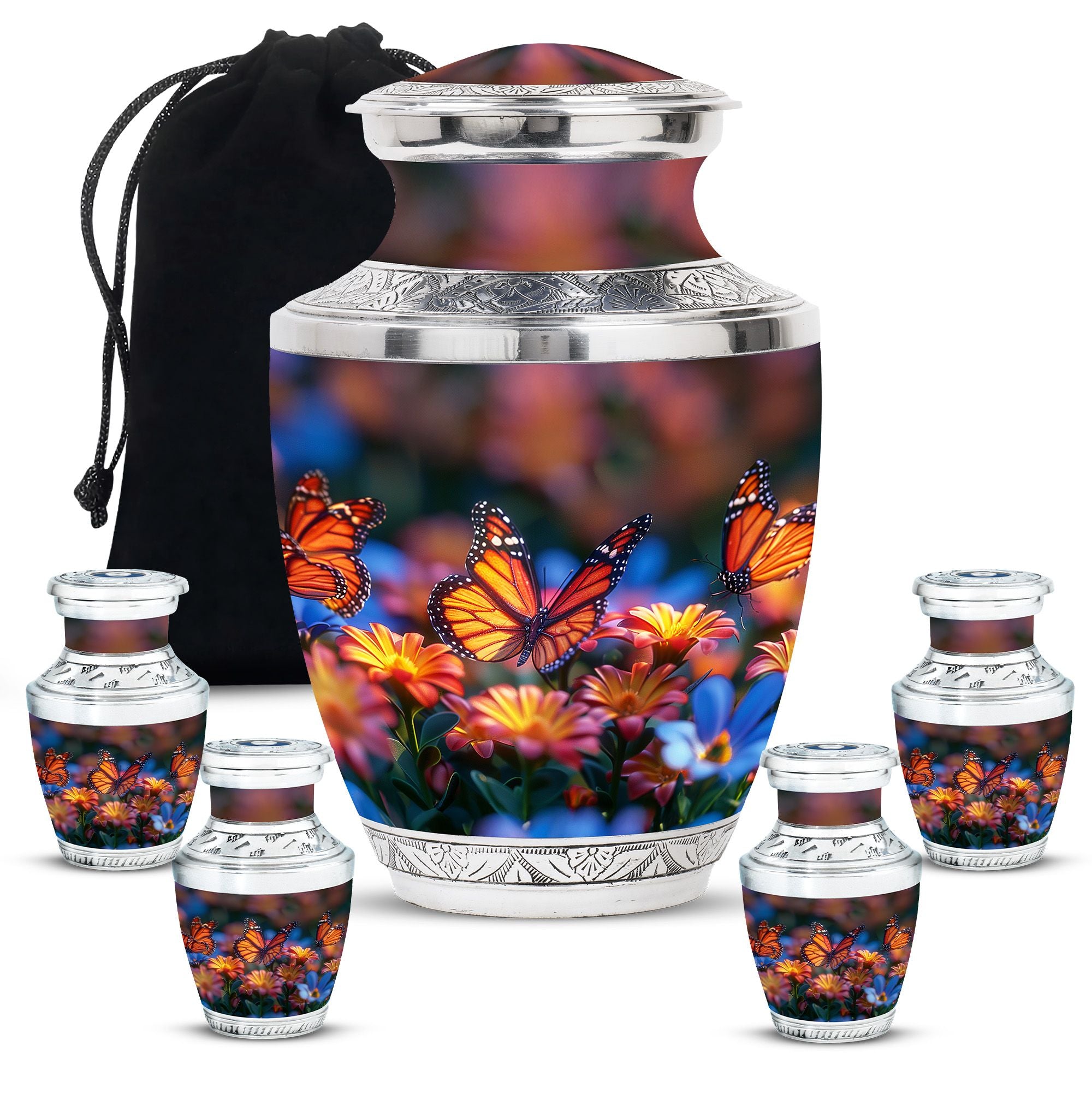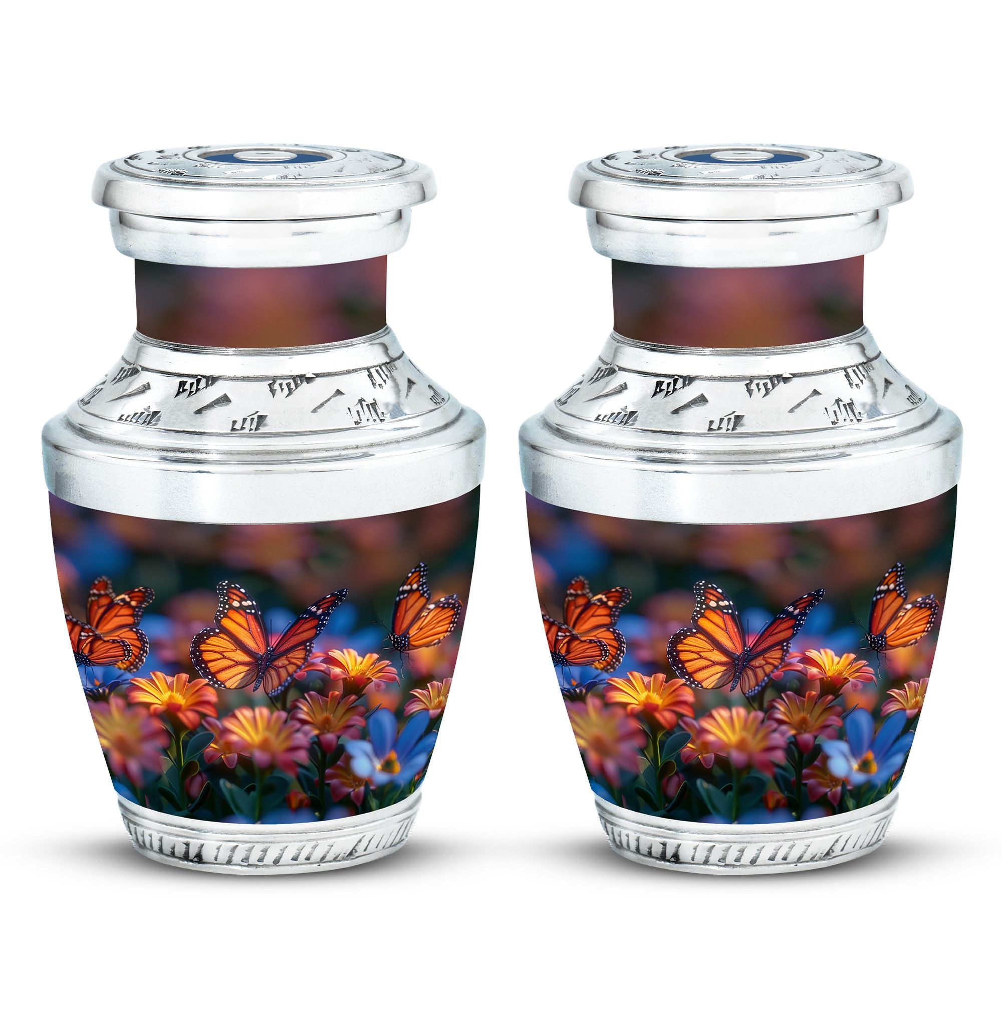 Crafted from durable aluminum, this urn features a stunning Monarch butterfly with floral accents, representing beauty, renewal, and everlasting spirit. Its secure screw-top lid ensures ashes are safely protected, while the detailed butterfly and flower design offers a comforting symbol of remembrance. Families often select this design as cremation urn adult male, large urns for human ashes adult male, or urns for ashes adult male small keepsake when choosing matching pieces to share among loved ones.
