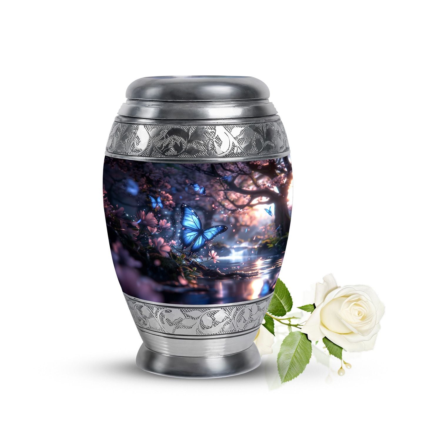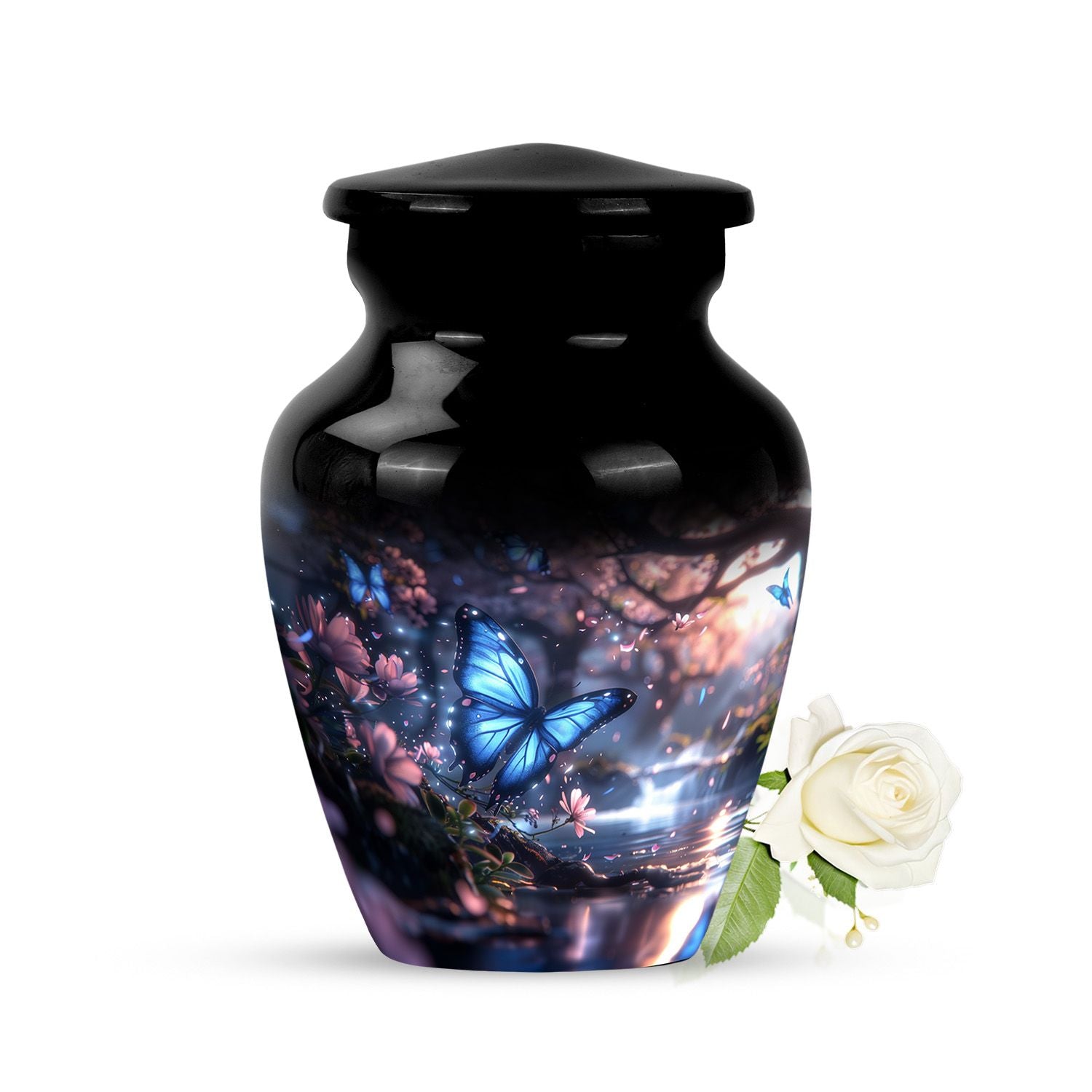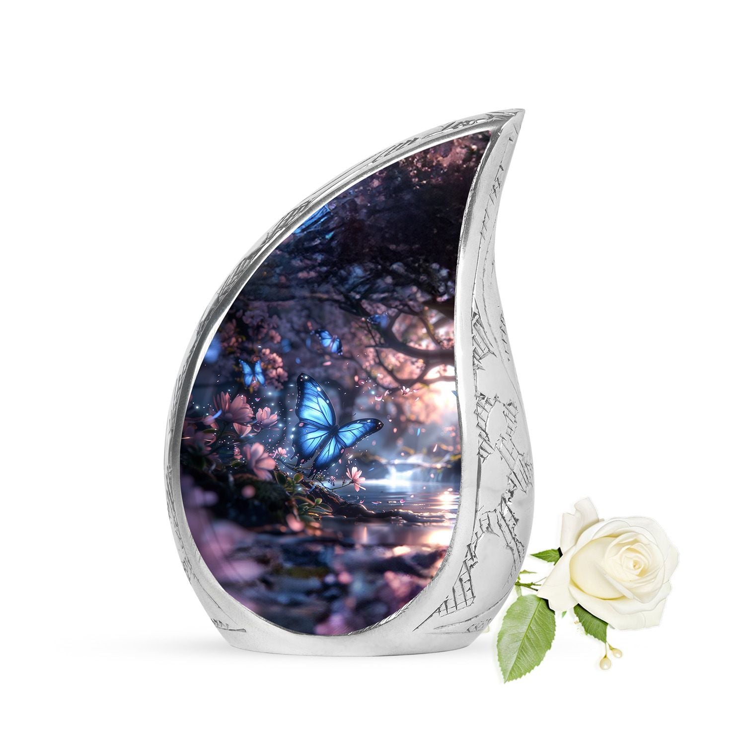 The butterfly and floral design embody the eternal cycle of life, offering comfort in knowing that love continues beyond loss. This urn is not only a vessel for ashes—it is a heartfelt memorial.