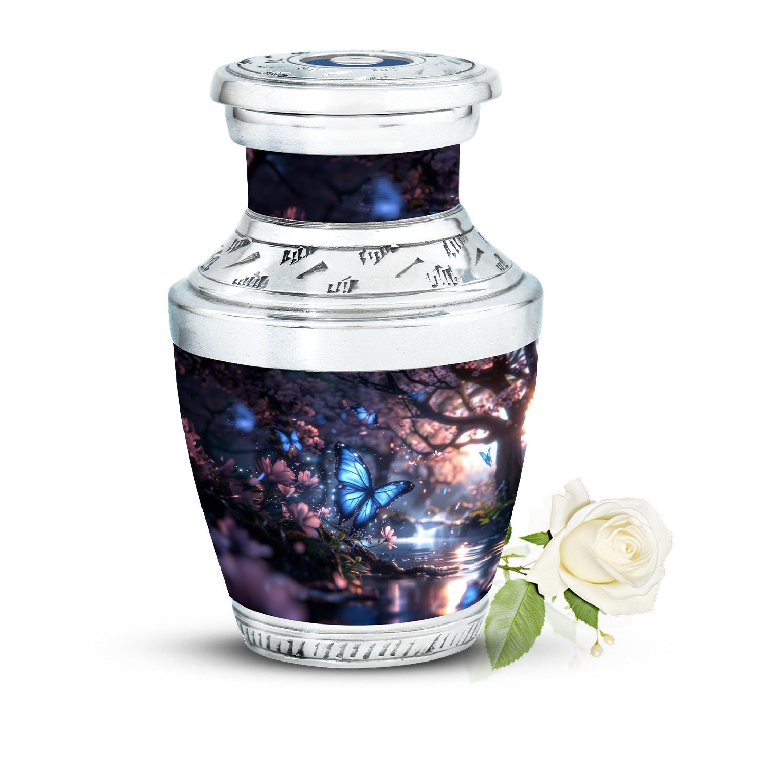 Crafted from durable aluminum, this urn combines artistry and strength. The butterfly motif reflects renewal, while the floral detail adds a tender feminine touch, making it a beautiful choice for urns ashes adult female or urn human ash adult female. Its secure screw-top lid ensures the ashes remain protected, while the elegant finish allows it to serve as both a decorative and functional piece. Families searching for urn adult male, urn human ash adult male, or urns ashes male will also find this design versatile enough to honor both male and female loved ones.