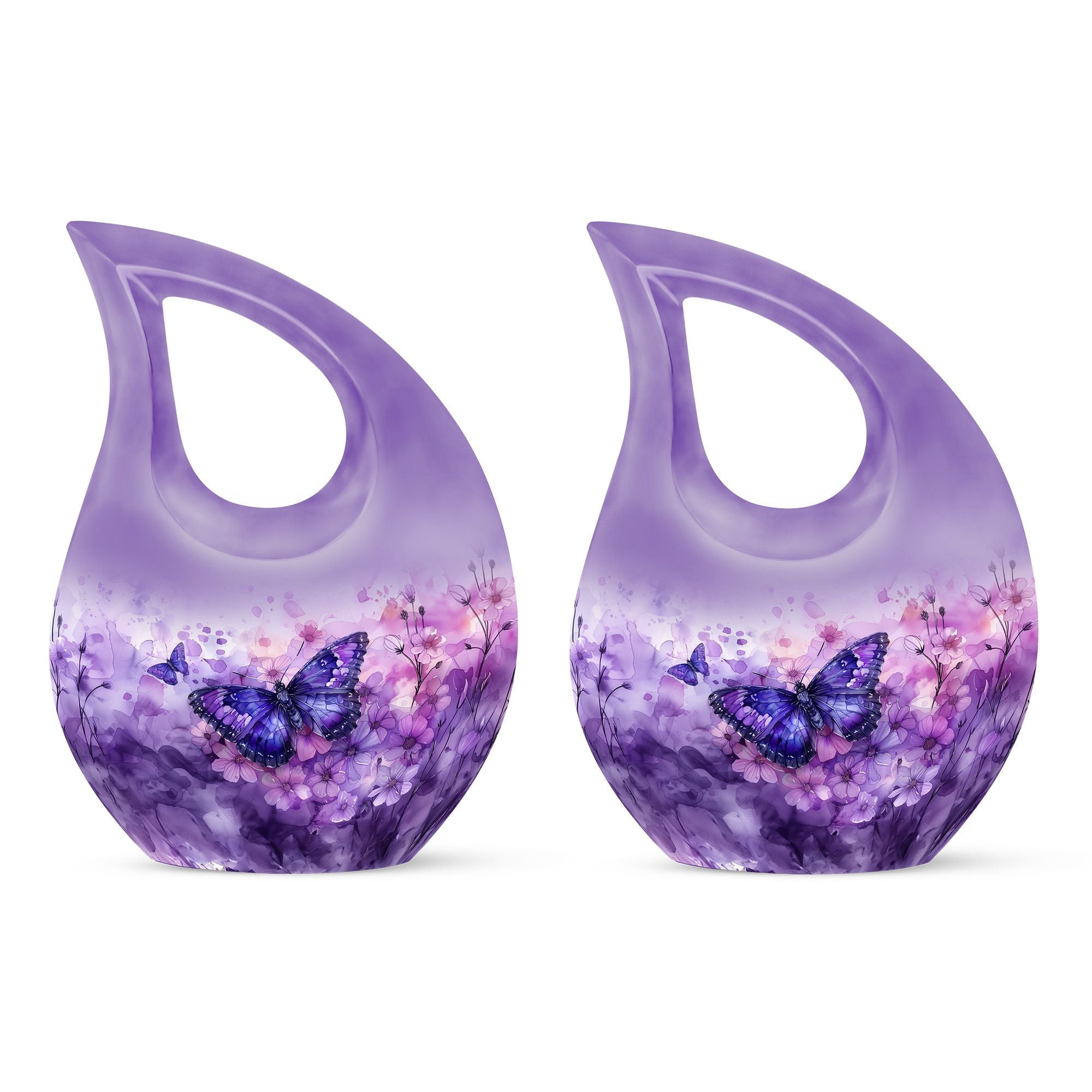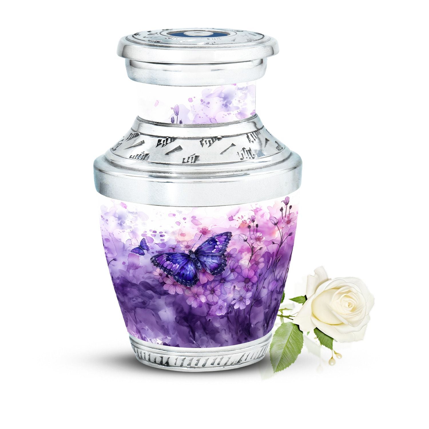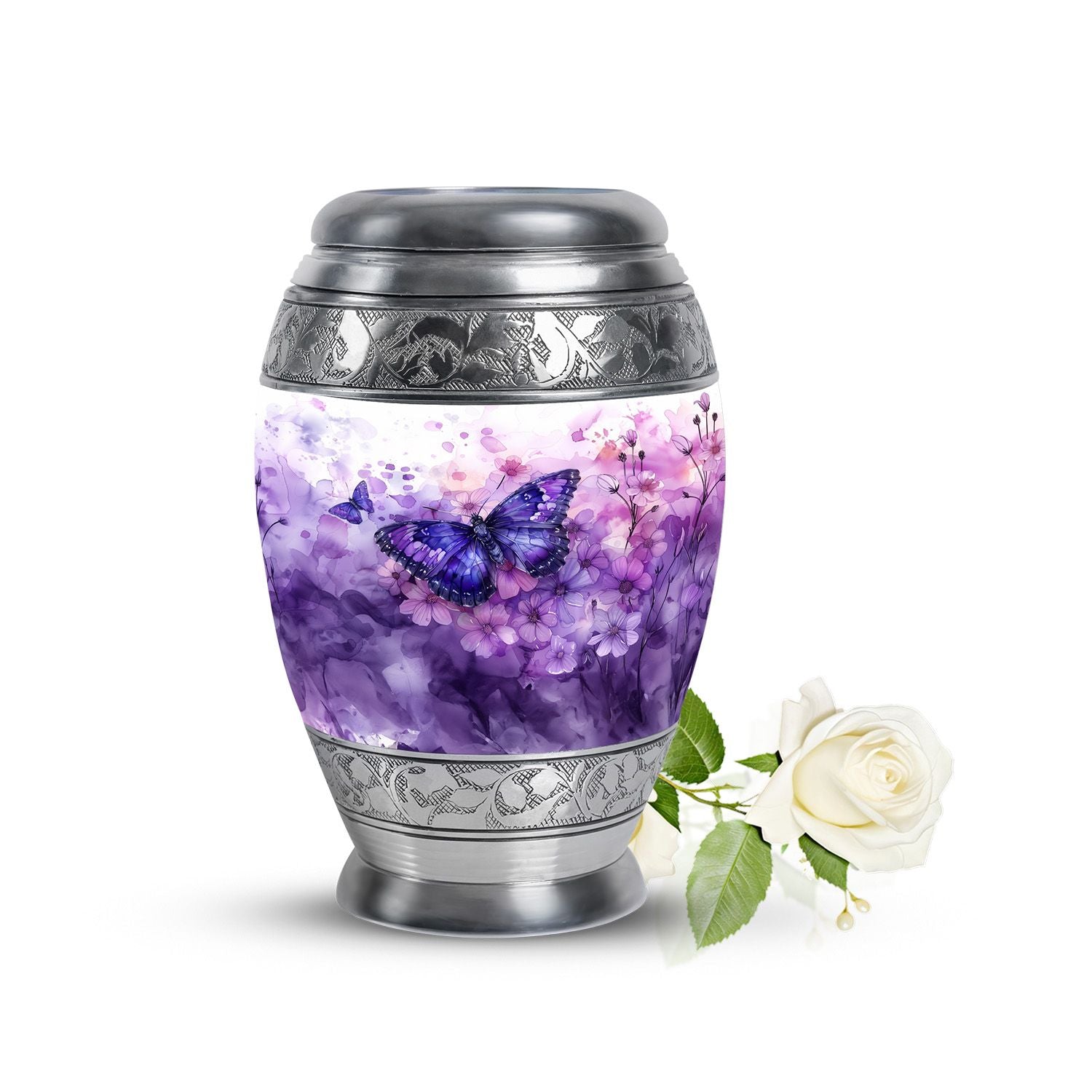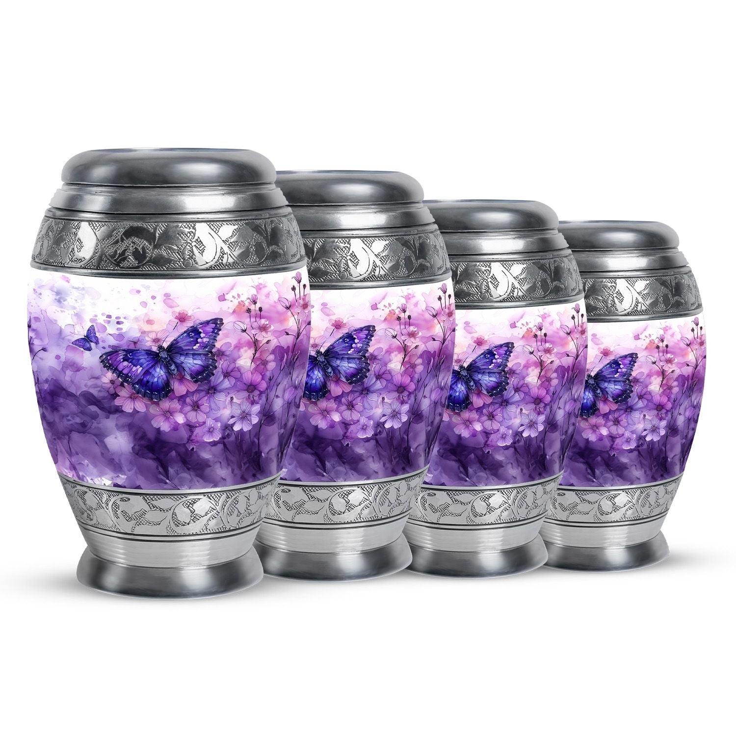 Purple Butterfly Funeral Urns - Purple Floral Memorial Urns for Ashes