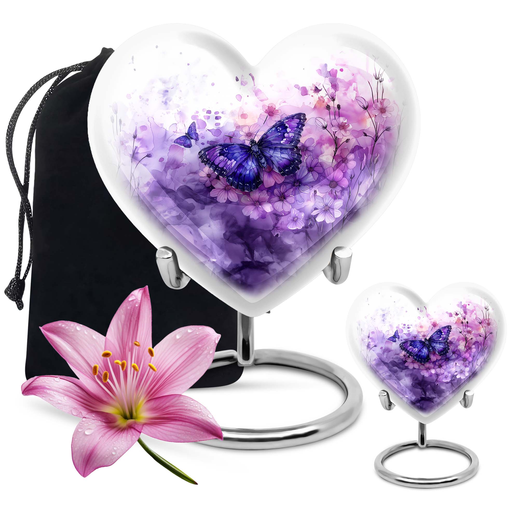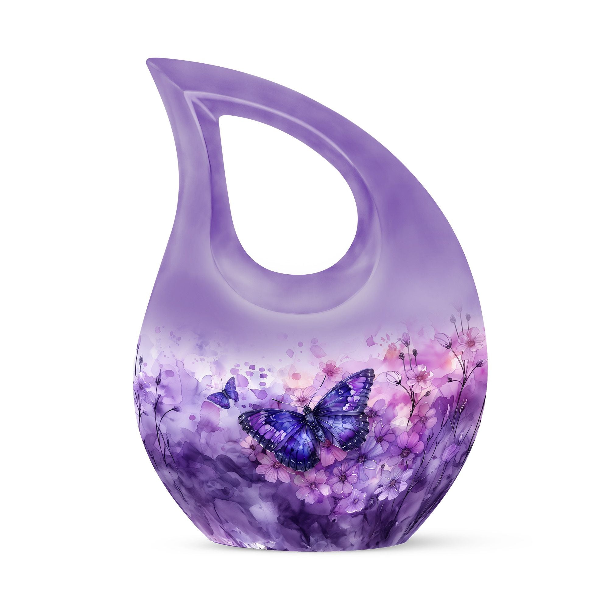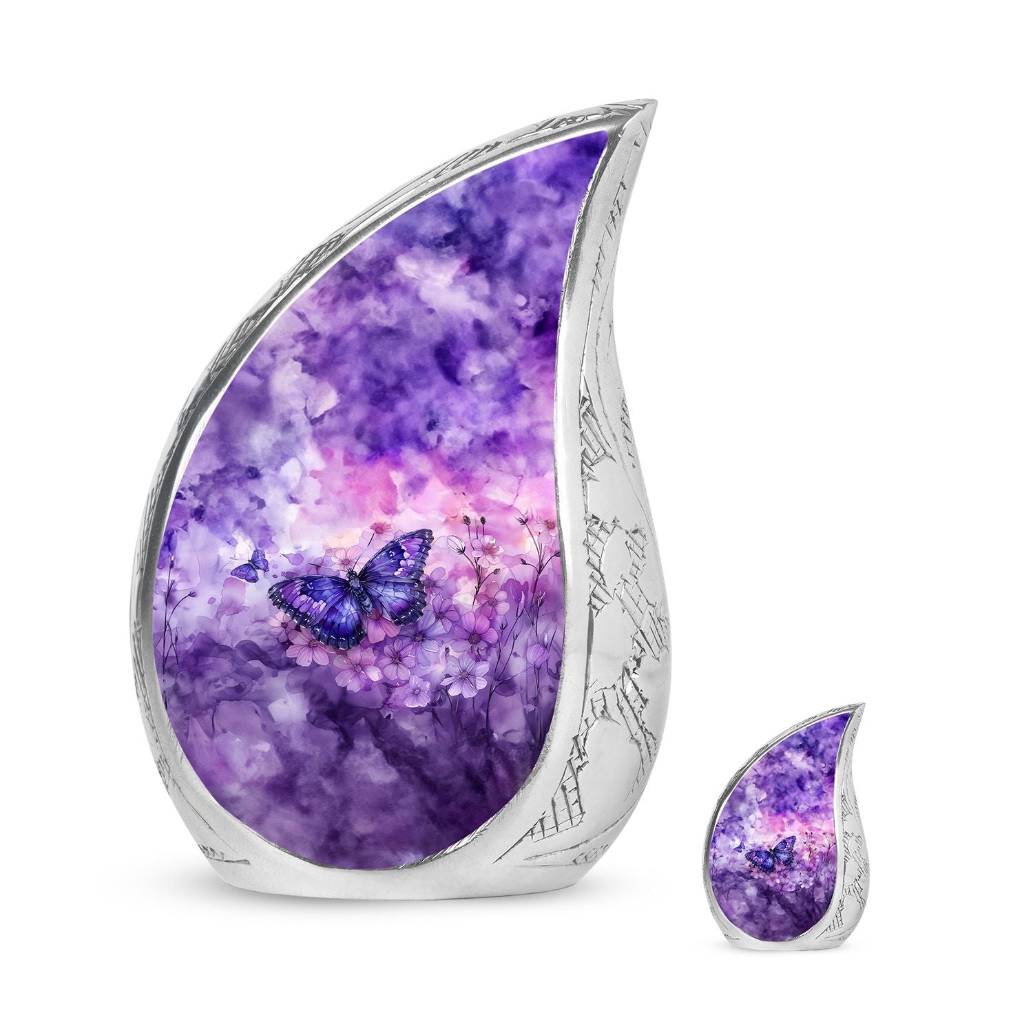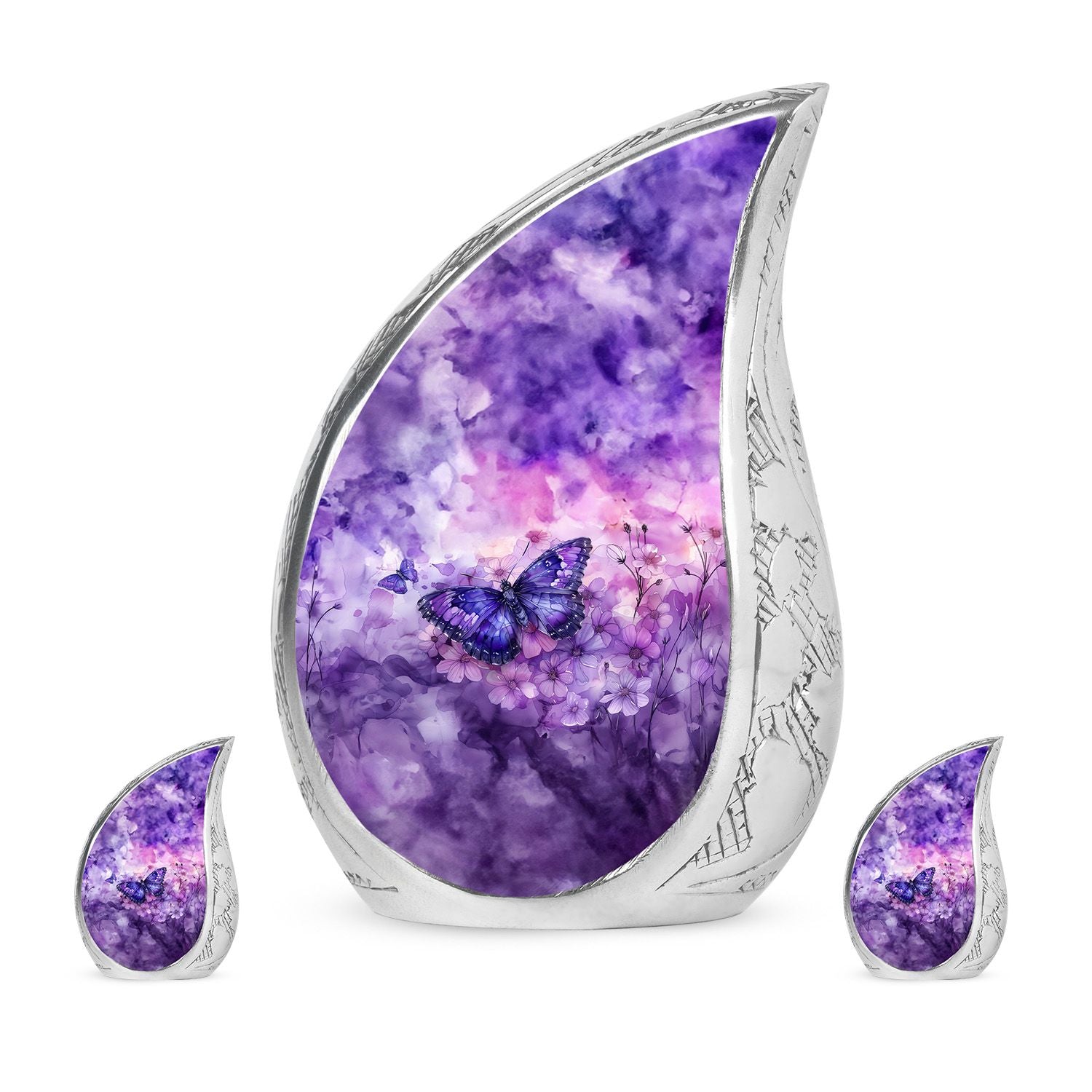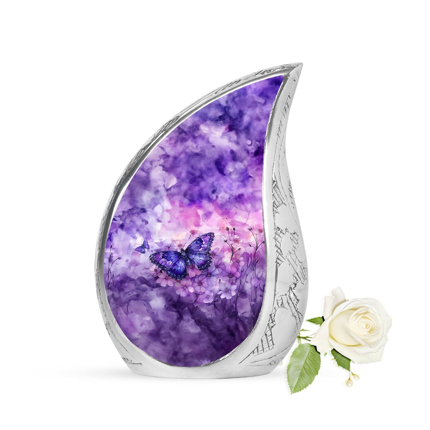Purple Butterfly Funeral Urns - Purple Floral Memorial Urns for Ashes