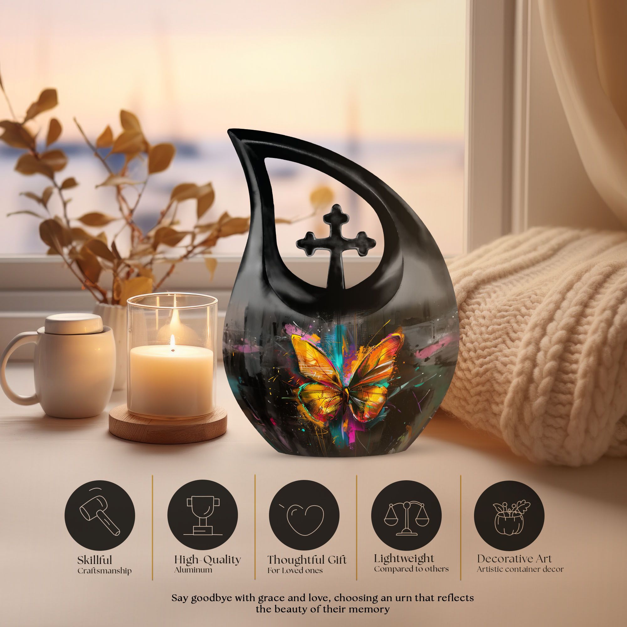 Yellow Butterfly Art Memorial Urn - Artistic Cremation Urn For Ashes