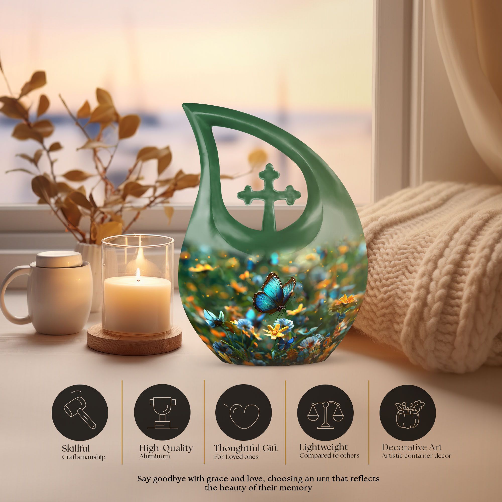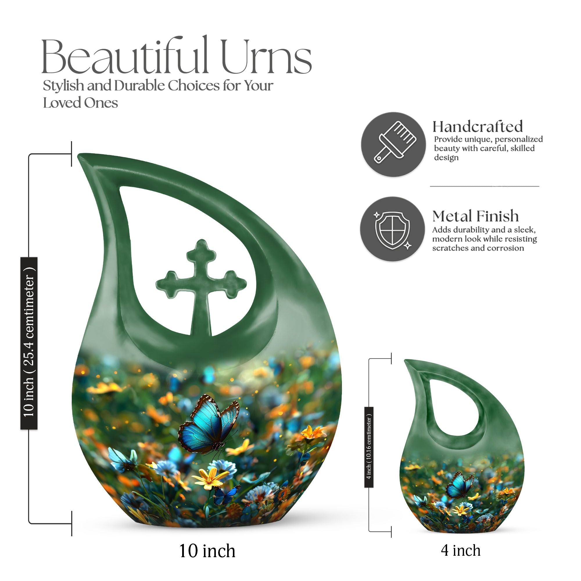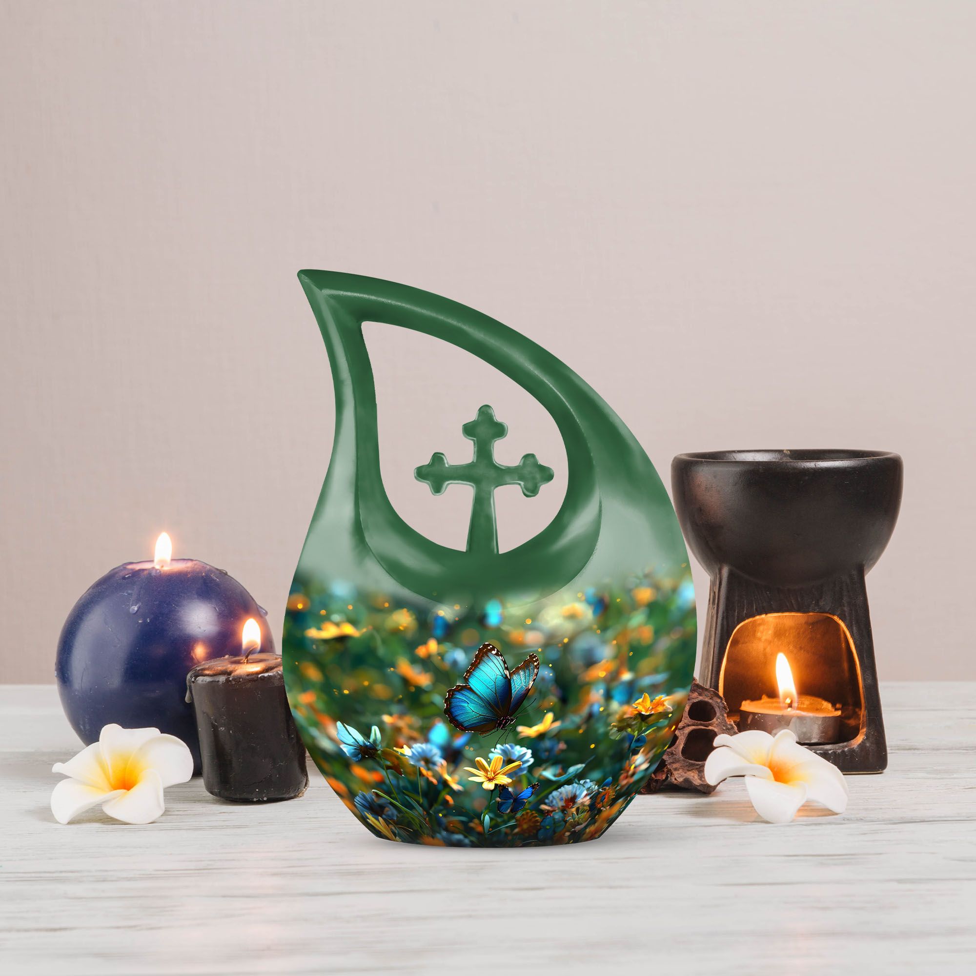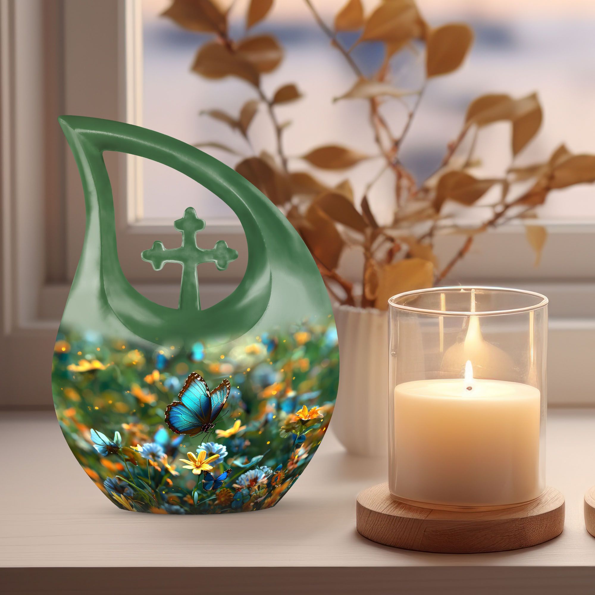 The Blue Butterfly Funeral Cremation Urn provides a gentle, heartfelt way to honor your loved one. Designed with calming floral greenery and a delicate butterfly motif, it offers comfort for families seeking small keepsake urns for human ashes, a tender small ashes keepsake, or a symbolic small urn for ashes keepsake for lasting remembrance.