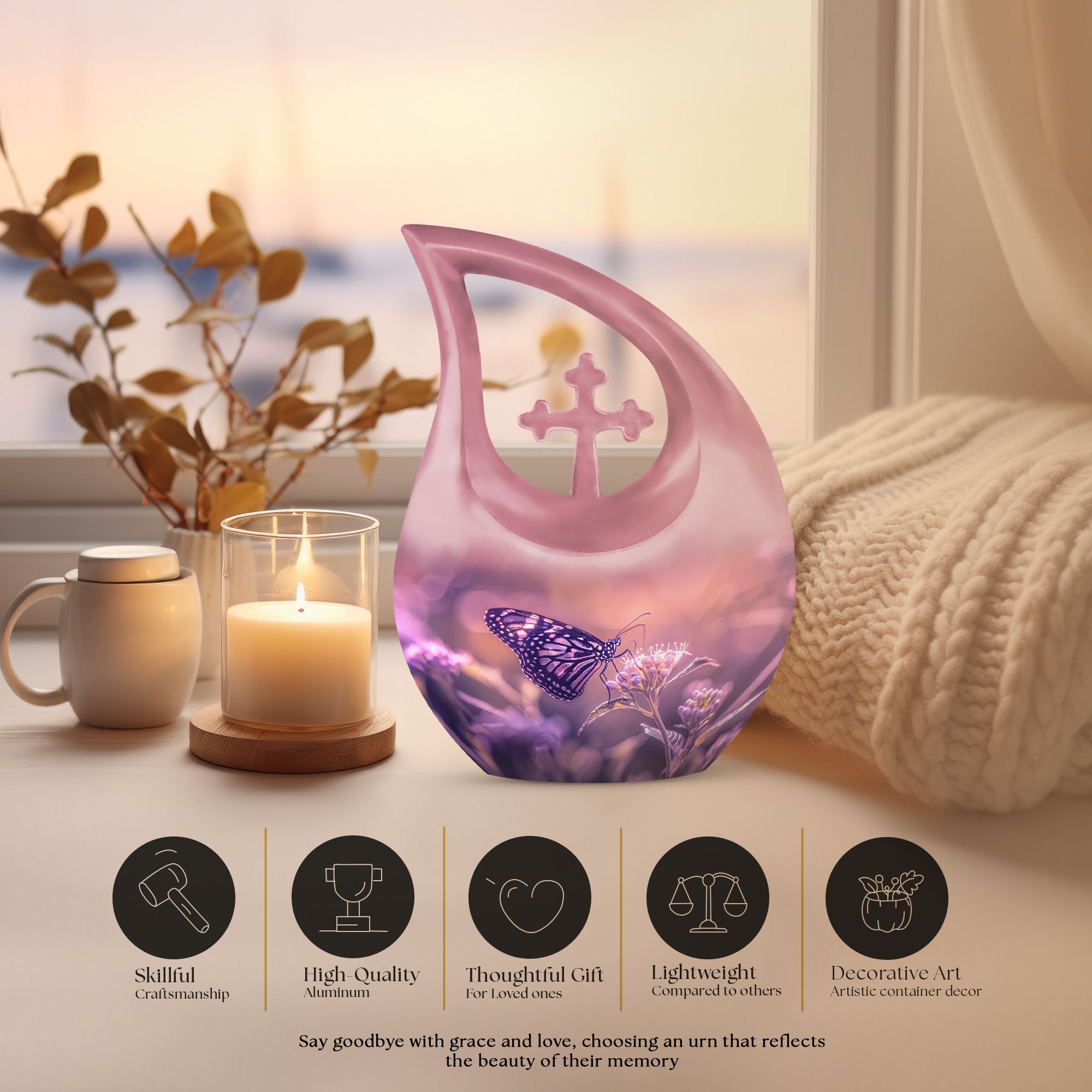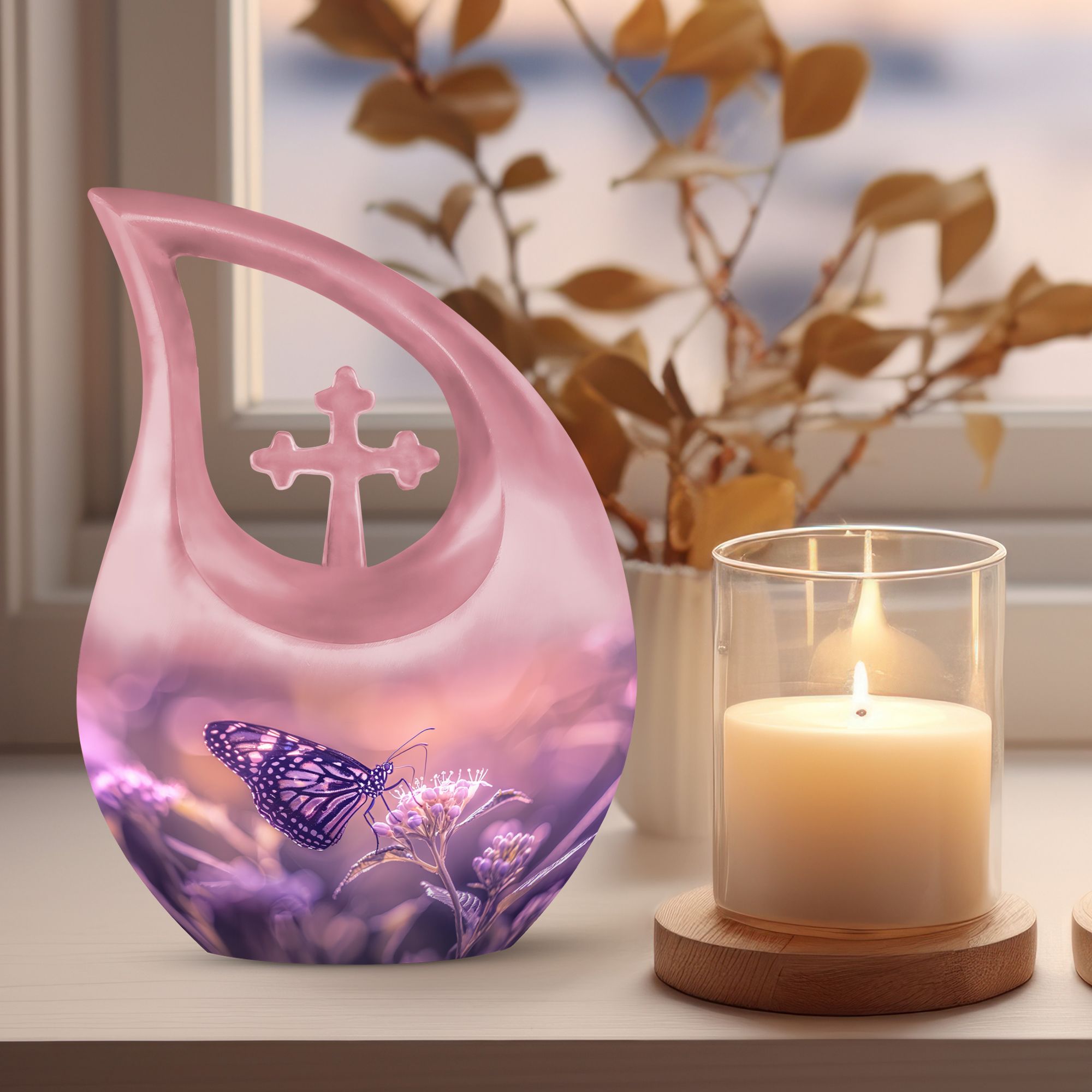 This pink butterfly cremation urn is more than just an urn—it is a symbol of eternal love and cherished memories. Perfect for honoring a beloved mother, daughter, or anyone whose presence continues to inspire. Ideal for funerals, home memorials, or as a treasured keepsake.