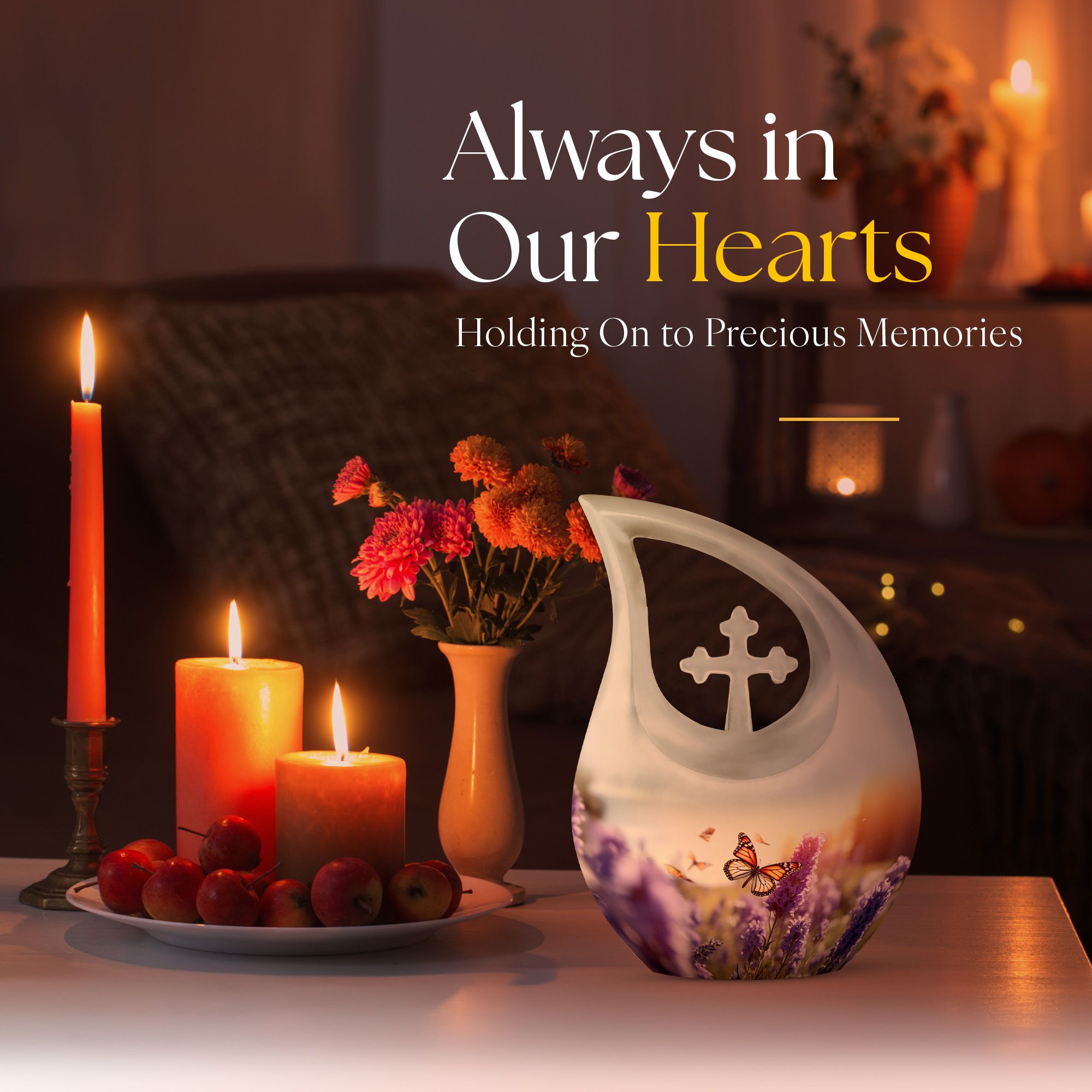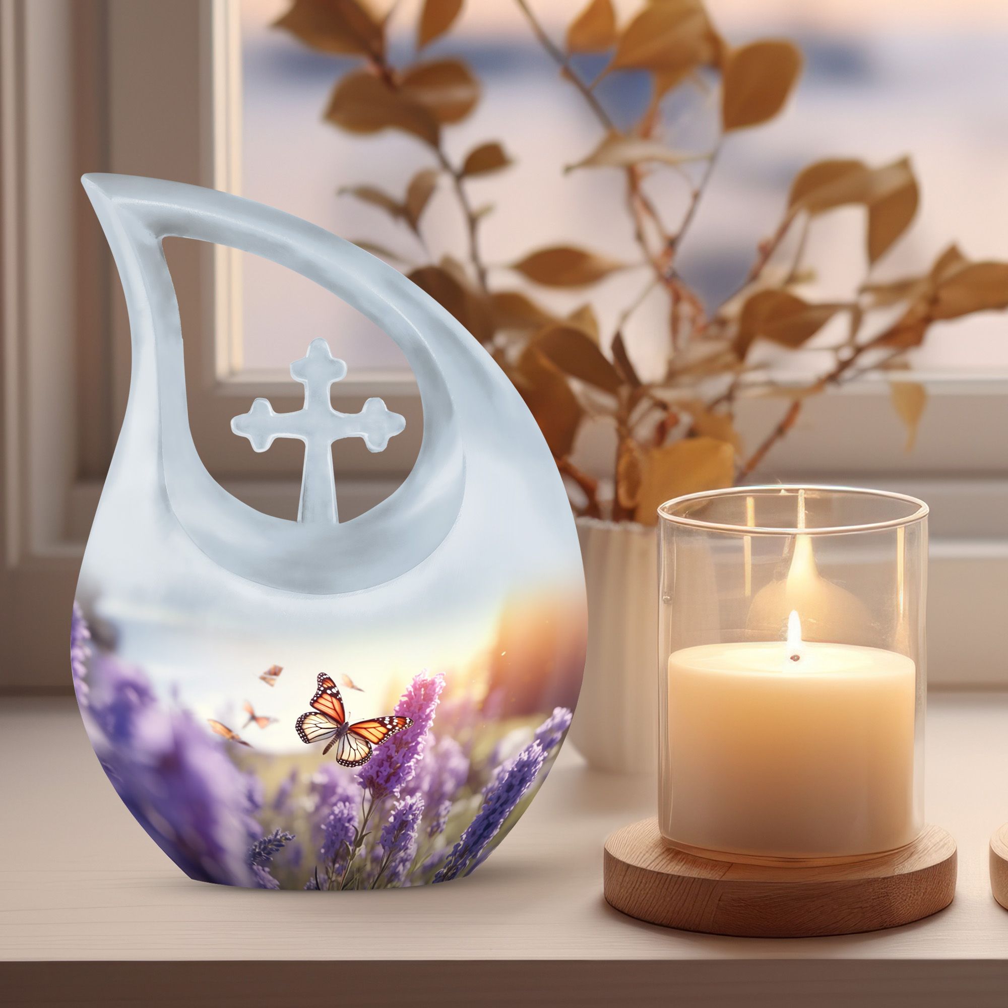 The Flying Butterfly Urn for Cremation Ashes – Purple Floral Memorial Urns for Women offers a soft, uplifting tribute filled with grace and serenity. The butterfly symbolizes renewal and everlasting love, making this a deeply meaningful choice for families seeking small urns for human ashes keepsake or a feminine memorial that brings comfort and peace.
