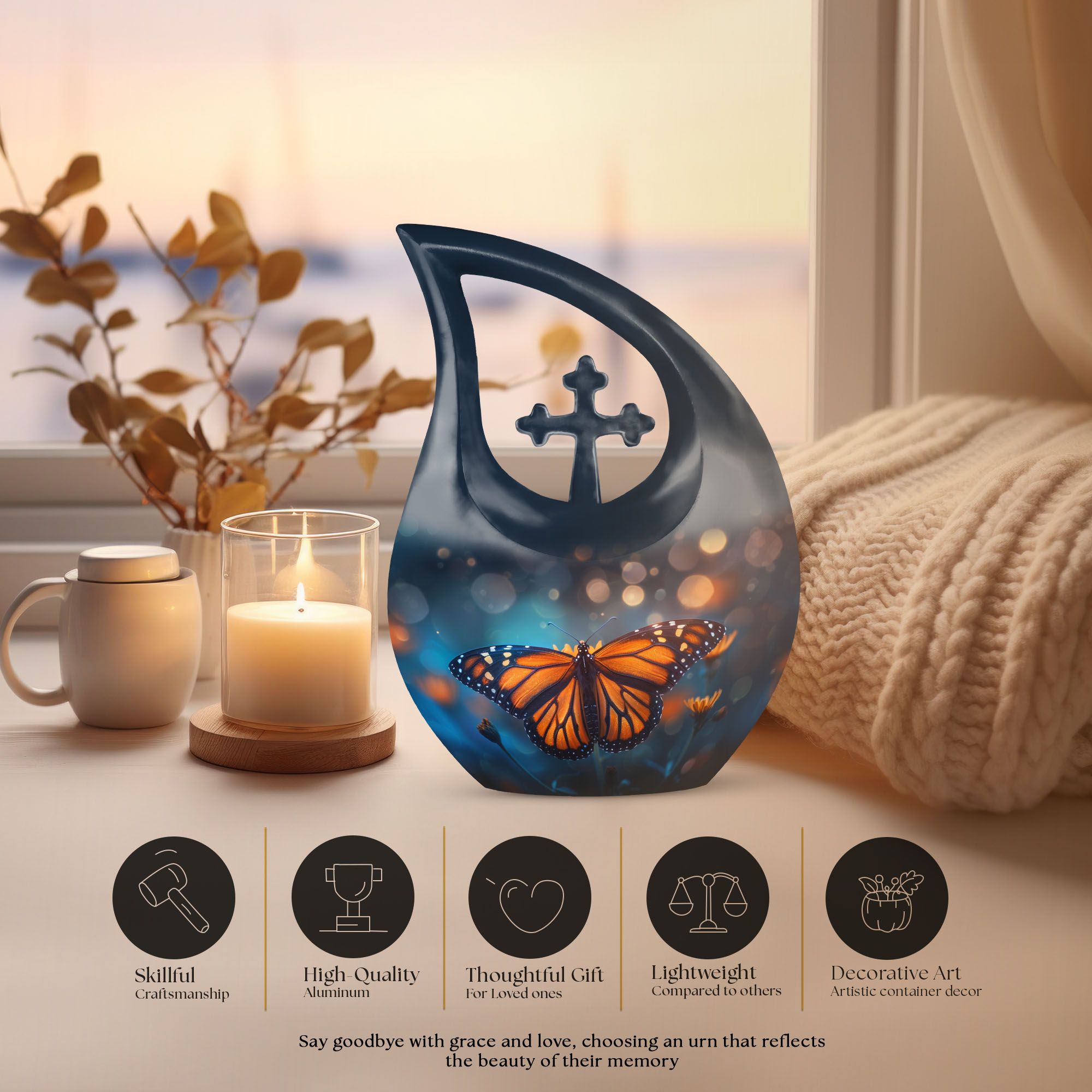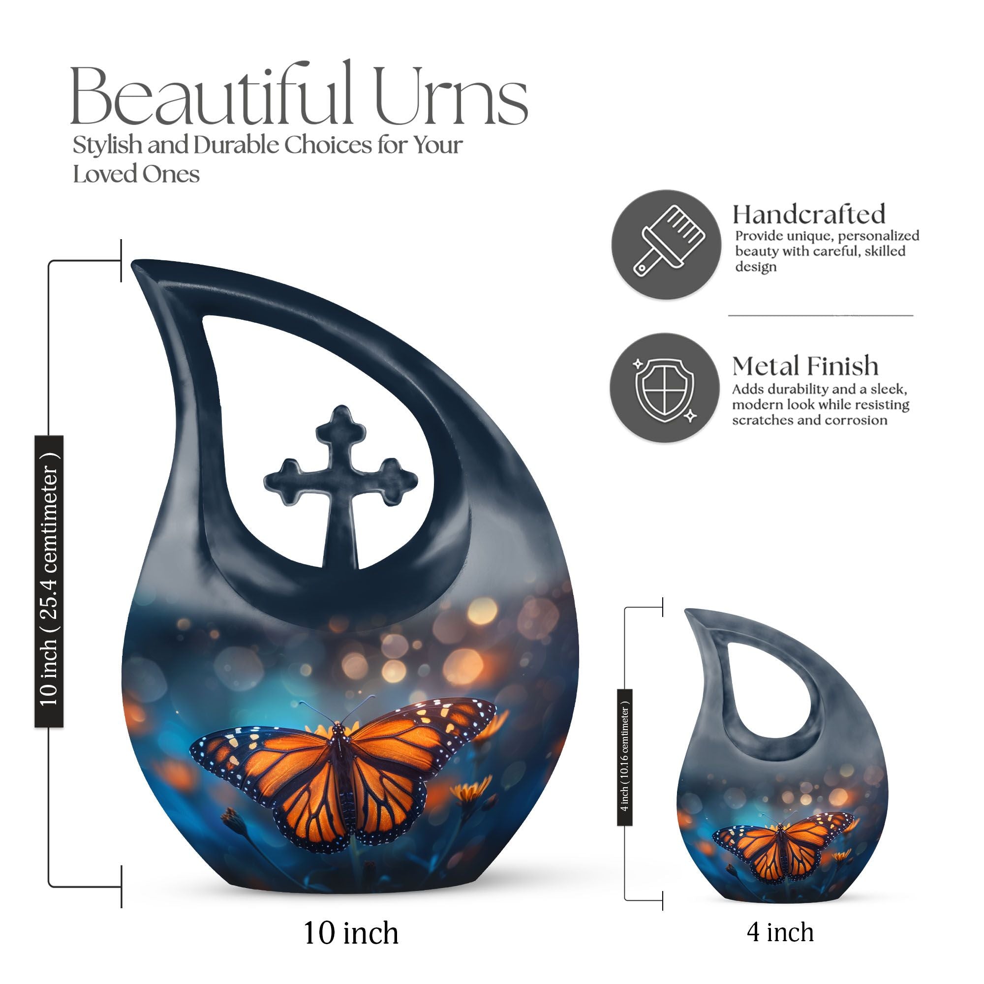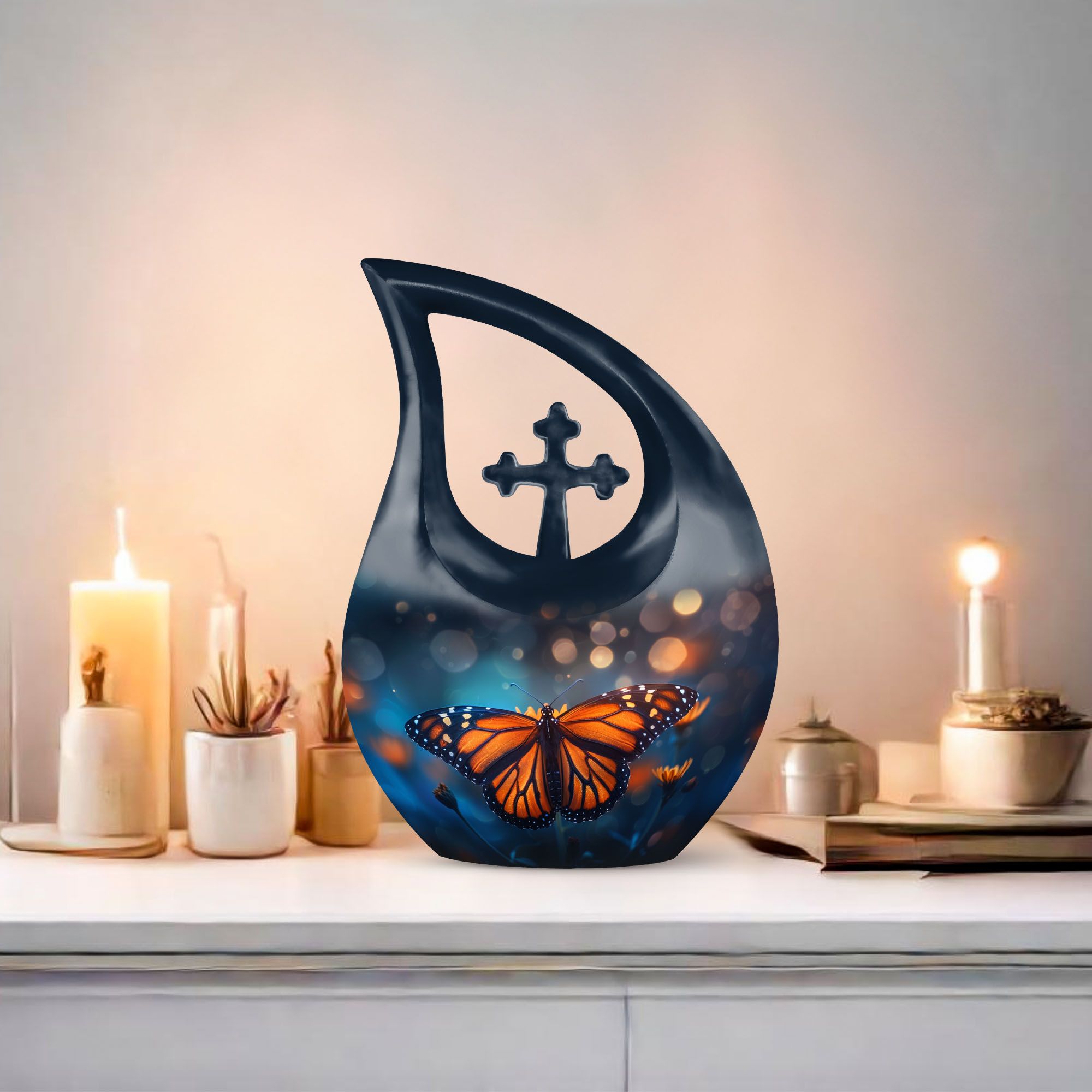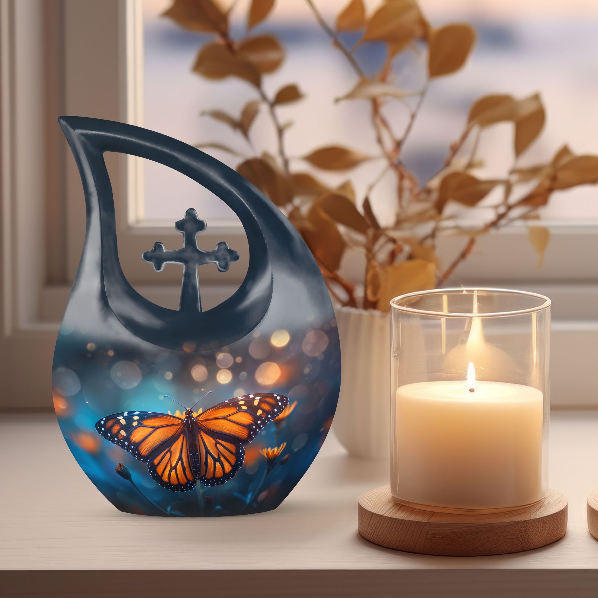 This Monarch Butterfly Cremation Urn offers a peaceful and symbolic way to honor the memory of a beloved mother. The monarch butterfly—long associated with transformation, hope, and eternal love—makes this design especially meaningful for families seeking large cremation urns for human ashes or a dignified memorial that reflects beauty and grace.