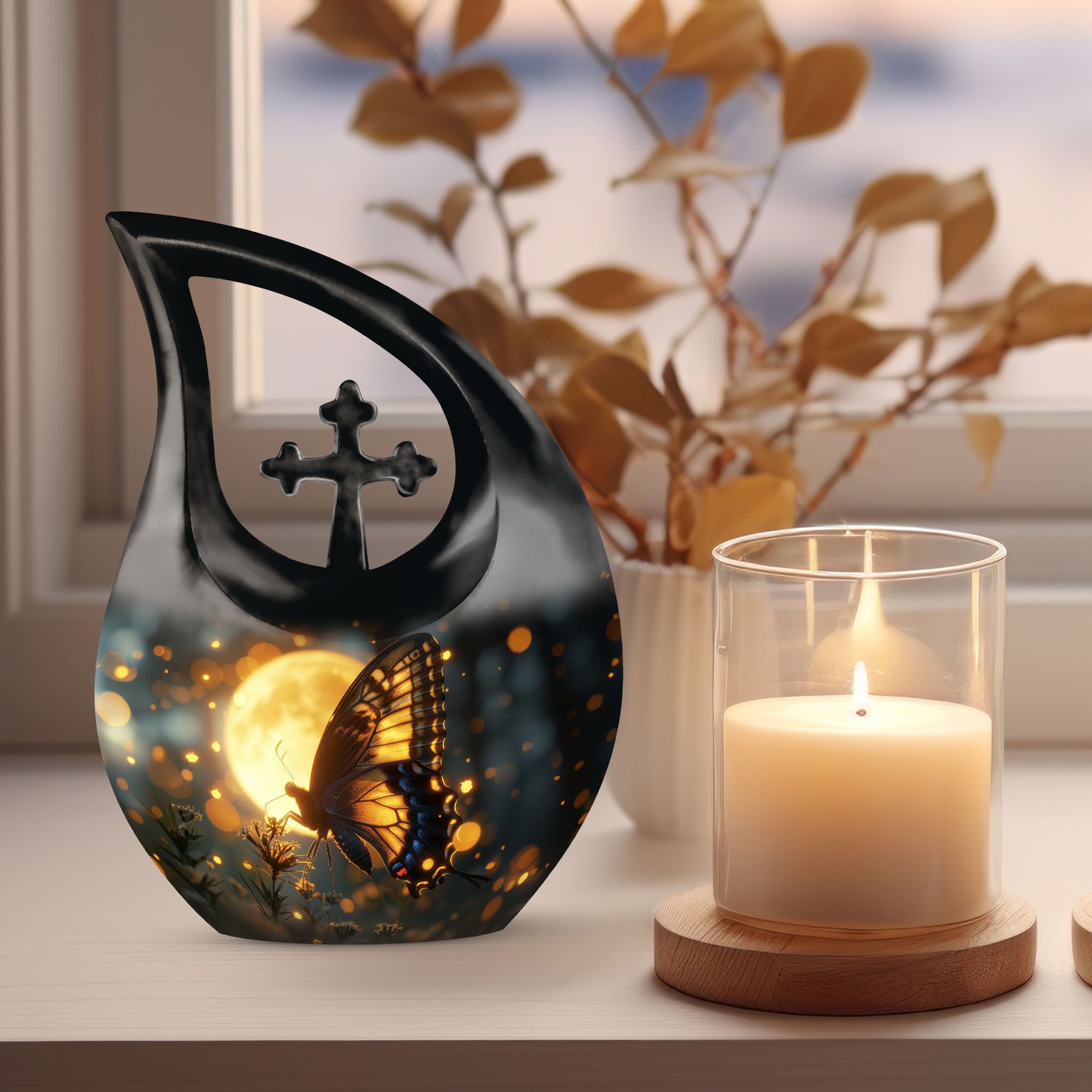 This Butterfly Funeral Urn combines the calming symbolism of a full moon with the gentle beauty of butterfly artwork, creating a peaceful memorial for your loved one. Thoughtfully designed for balance and harmony, it serves beautifully as an urn for ashes for men or a dignified tribute within funeral urns for women, offering comfort to any family.