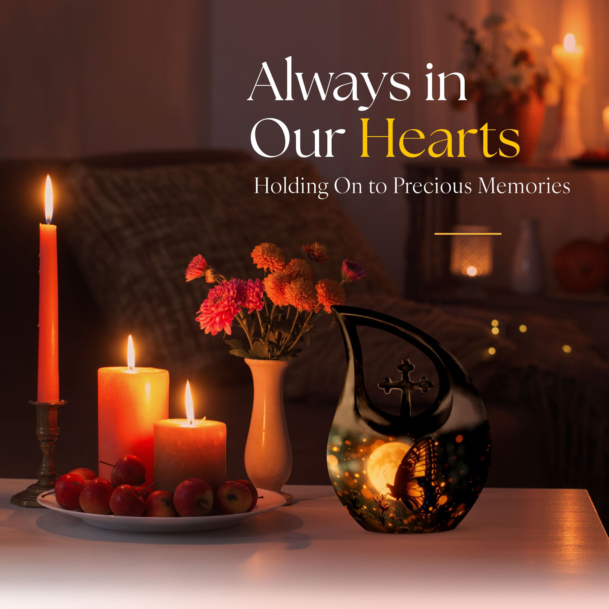 Crafted with care and long-lasting durability, this urn blends celestial detail with soft butterfly accents, making it ideal for those seeking an urn for men & women or a unifying memorial piece. Its elegant style works seamlessly for families selecting cremation urns for adult ashes women, thoughtful keepsakes for women, or heartfelt pieces such as ashes keepsake for men and cremation keepsakes for men. It also pairs well with coordinating memorial items like a mini urn for ashes for women for shared remembrance or travel-size keepsake options. Whether chosen as an urn for women & men or as part of cremation urns for ashes for women, its peaceful moonlit design brings comfort and emotional connection.
