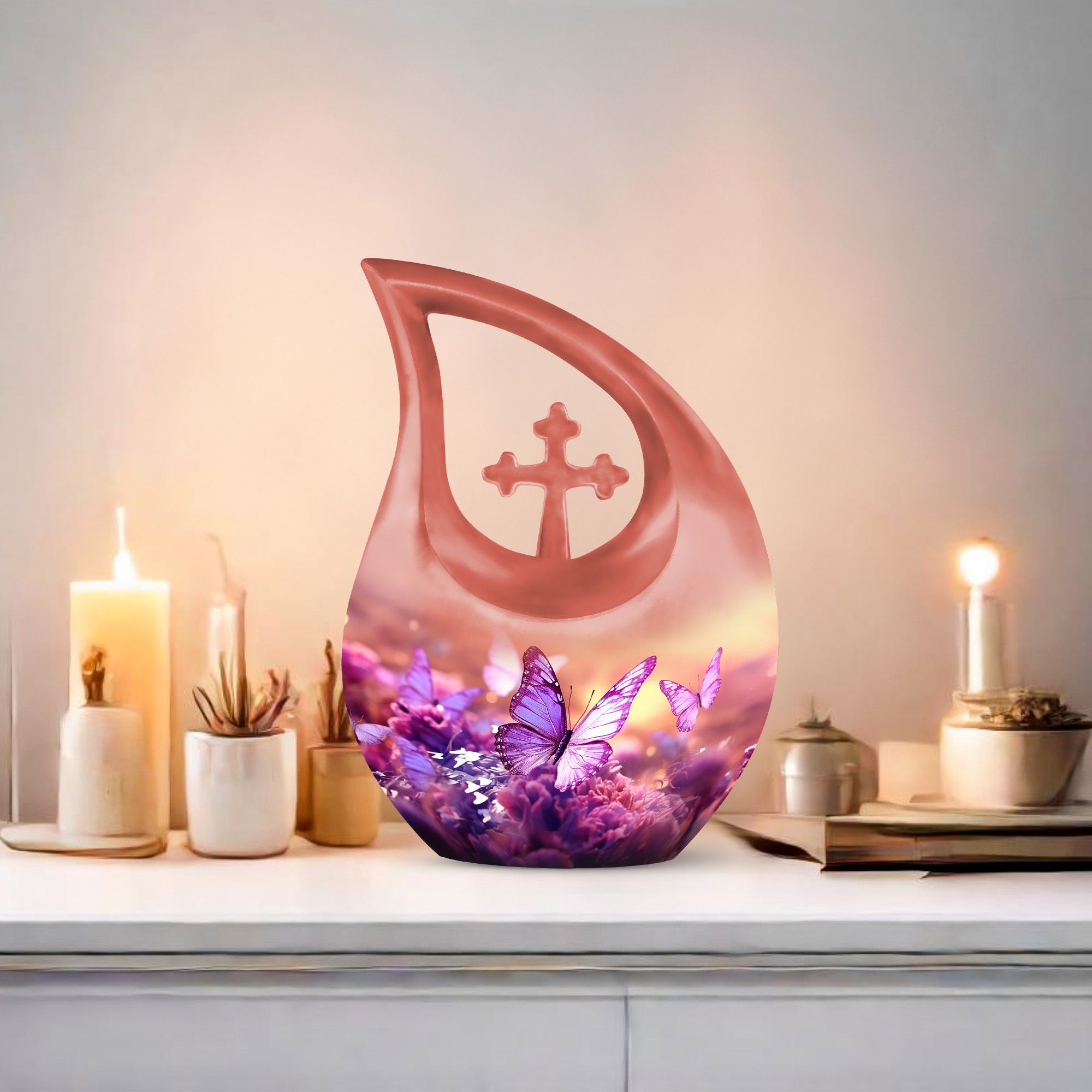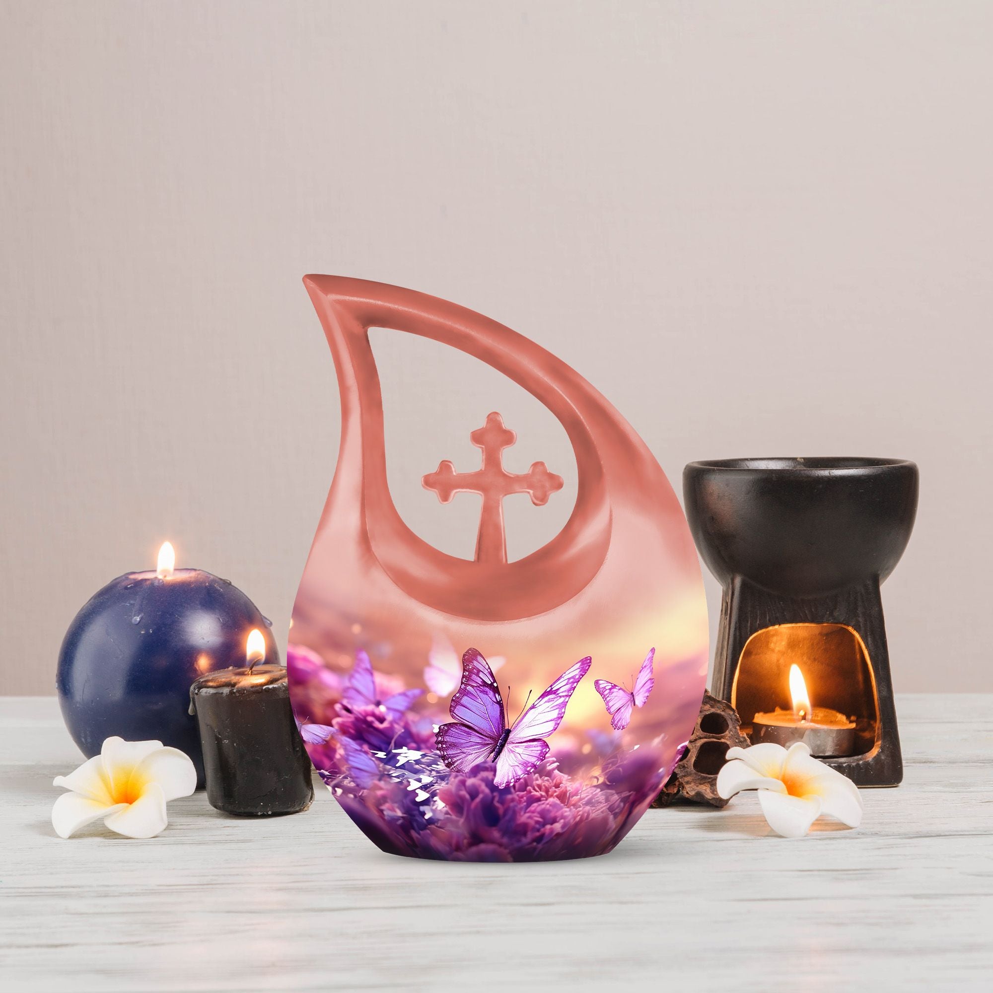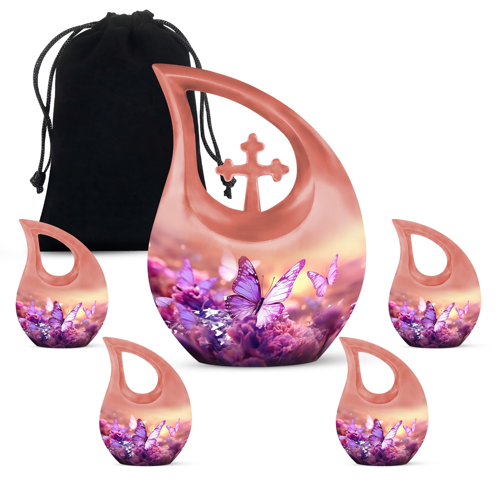Cherish the memory of your loved one with our splendid Butterfly Urn. Crafted from premium quality aluminium, this urn is built to last while maintaining its visual appeal. Its large size, standing at 10 inches and weighing 3.3 pounds, ensures that it has a capacity of 200 cubic inches, enough to hold the ashes securely. The touch of uniqueness arrives with the impactful Cross Drop design that evokes a sense of tranquility and peace. Our Butterfly urn can be personalized with engraved names, making it not just an urn, but a keepsake to remember and honor your dearly departed. Each urn also comes with a velvet pouch, providing a secure enclosure for the ashes. Transforming the way you commemorate, this urn, perfect as a Custom Mom Urn or an Ashes Keepsake For A Man, strikes a balance between functionality and appearance. Move away from the conventional with our Unusual Urns For Ashes - expressions of love expressed in the details. This isn't just about using a repository for ashes; it's about finding comfort in loss. Note: Please look for 'memorial urns' when you want to find our beautiful urns online.