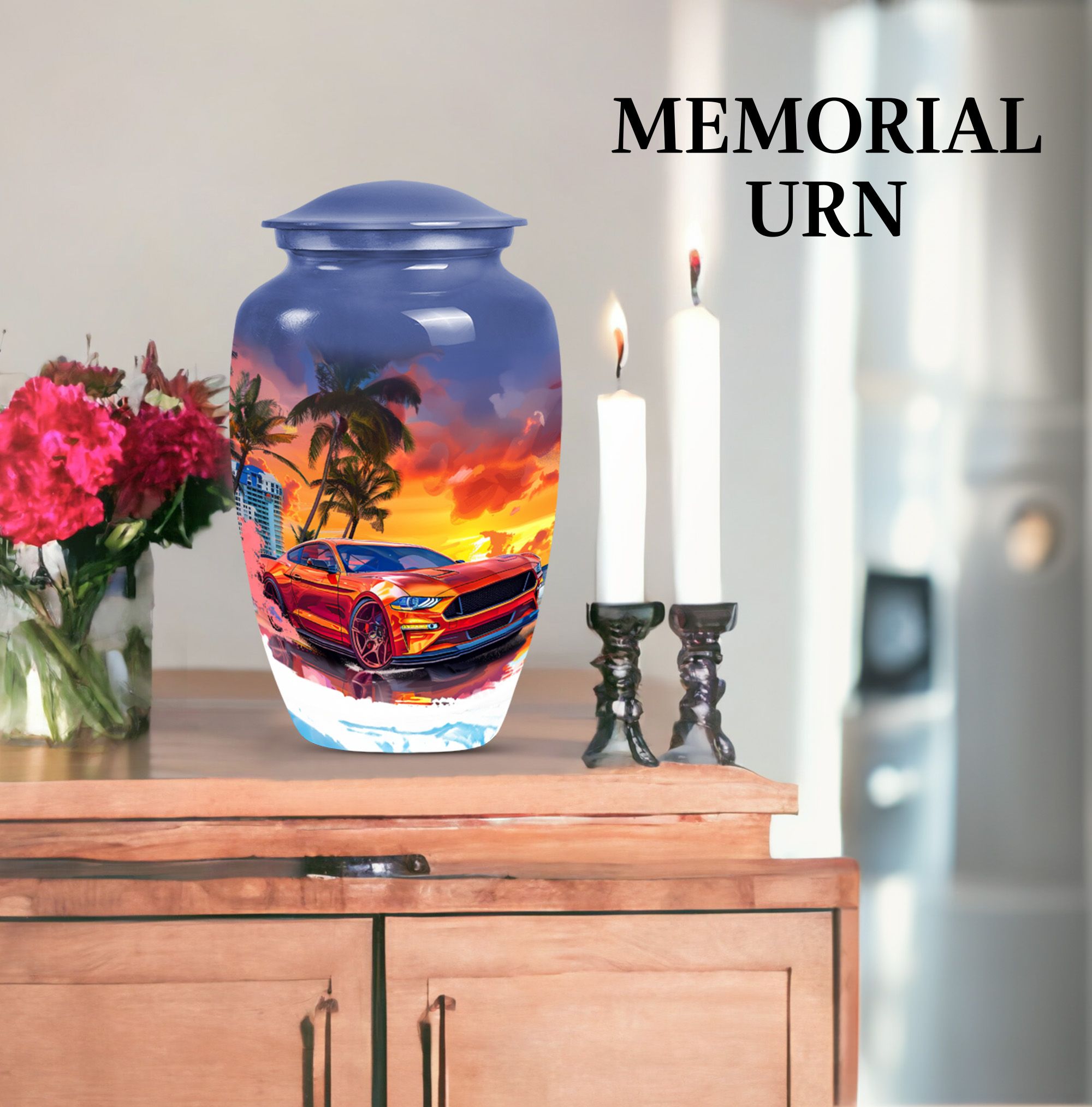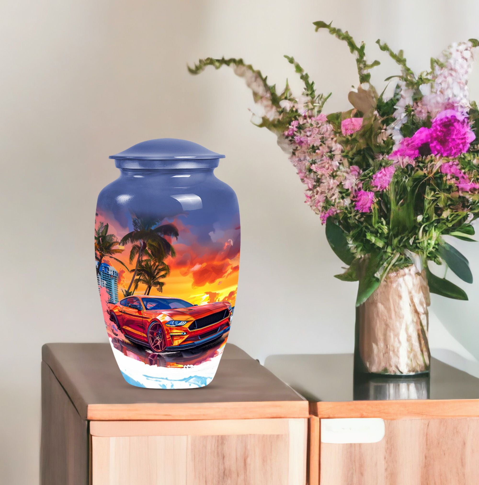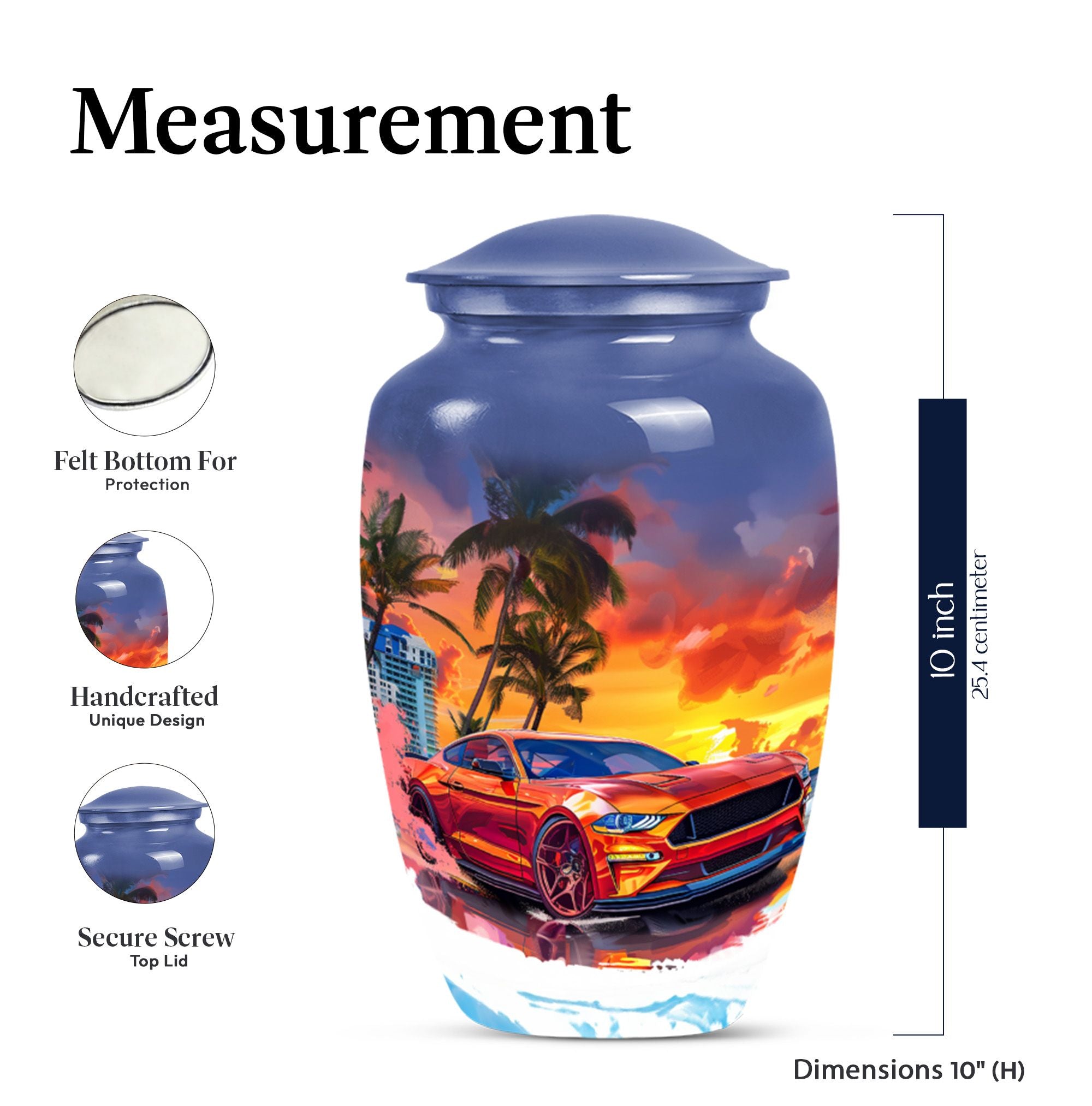 Seek solace in your time of remembrance with our meticulously crafted 'Butterfly Theme Large Urn'. Fashioned from the finest Aluminium, this burial urn brings together a substantial weight of 3.3 pounds with a capacity of 200 cubic inches, easily qualifying it among the sophisticated collection of large urns for human ashes adult. Measuring a respectable 10 inches in height, it stands as a dignified tribute to your loved one. The urn is not just an arrangement; it's a personal space which you can customize further with engraved names to express your unique sentiments. This car urn's packaging offers a velvet pouch, ensuring a secure containment and enhanced preservation of the cherished ashes. Avoid the generic; opt for our memorial urns, a sublime synthesis of profound reverence and distinguished aesthetics. Please note that our product has been keenly designed to accommodate cremation urns for adults, scaling funeral large as per your needs.