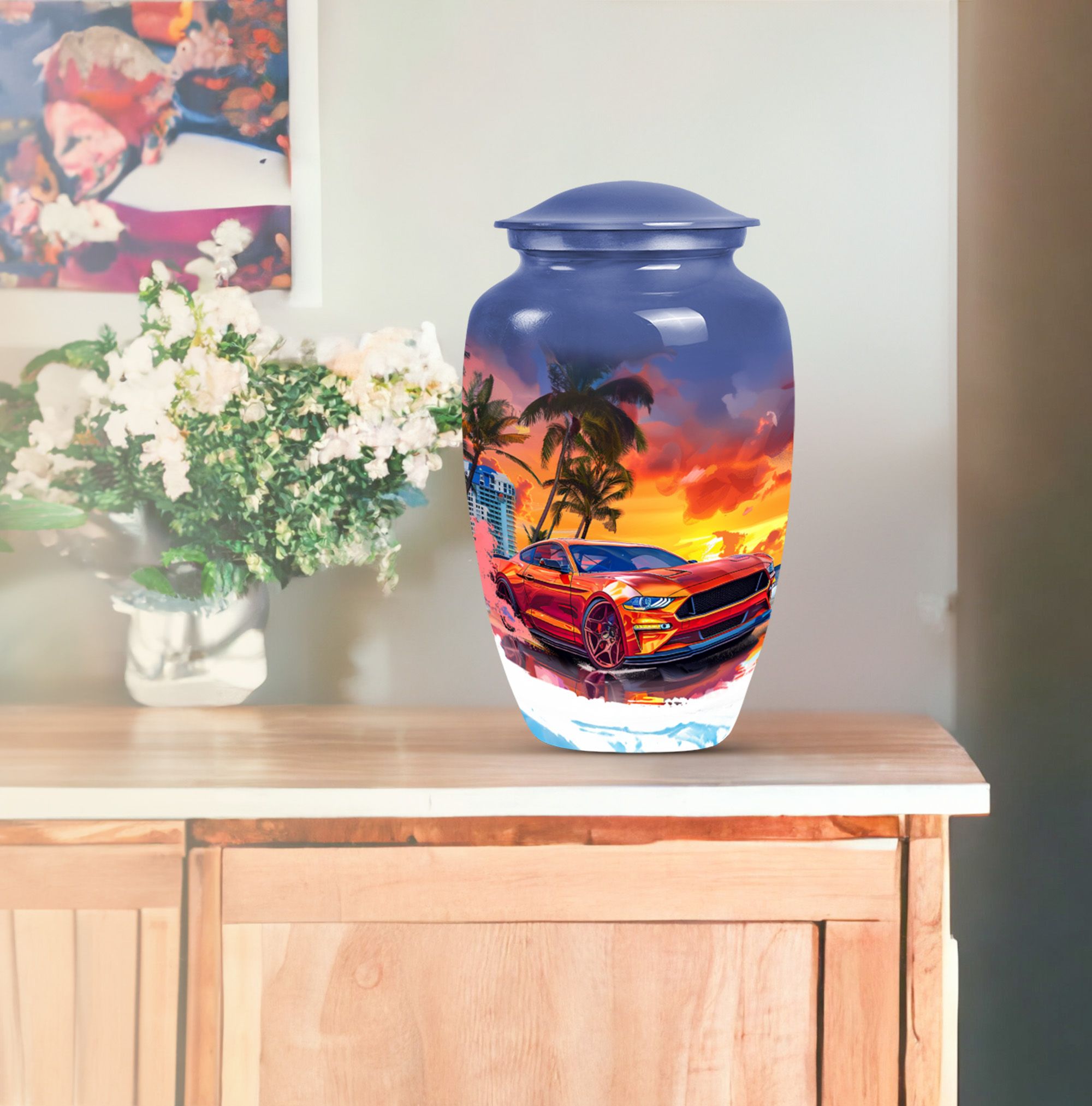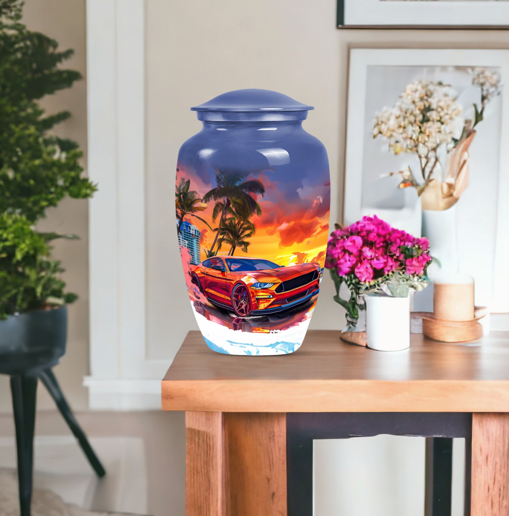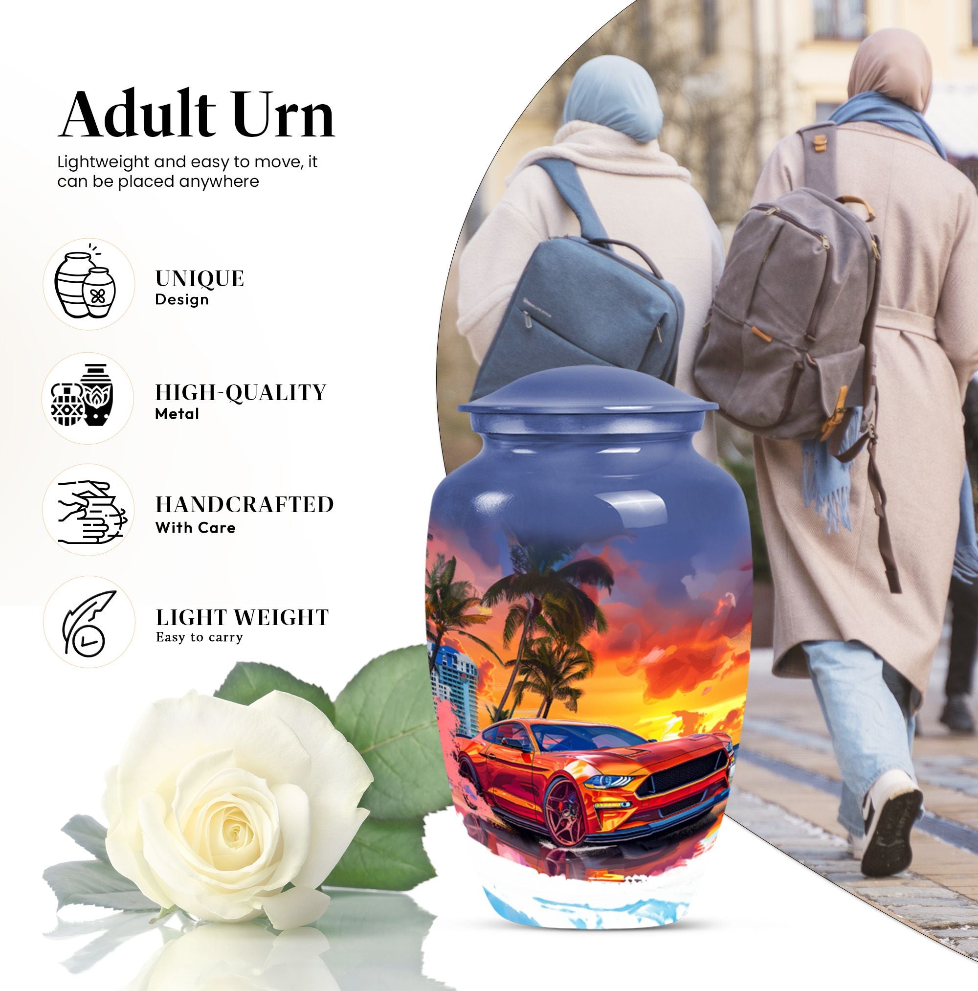 Seek solace in your time of remembrance with our meticulously crafted 'Butterfly Theme Large Urn'. Fashioned from the finest Aluminium, this burial urn brings together a substantial weight of 3.3 pounds with a capacity of 200 cubic inches, easily qualifying it among the sophisticated collection of large urns for human ashes adult. Measuring a respectable 10 inches in height, it stands as a dignified tribute to your loved one. The urn is not just an arrangement; it's a personal space which you can customize further with engraved names to express your unique sentiments. This car urn's packaging offers a velvet pouch, ensuring a secure containment and enhanced preservation of the cherished ashes. Avoid the generic; opt for our memorial urns, a sublime synthesis of profound reverence and distinguished aesthetics. Please note that our product has been keenly designed to accommodate cremation urns for adults, scaling funeral large as per your needs.