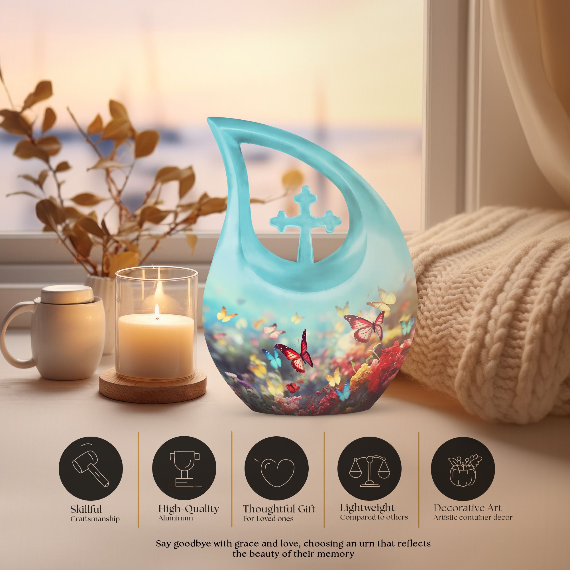 The Butterflies Keepsake Urn – Blue Peaceful Memorial Urn for Ashes is a beautiful way to honor your loved one with serenity and grace. Featuring delicate blue butterflies against a calm, peaceful backdrop, this urn symbolizes transformation, hope, and eternal love.