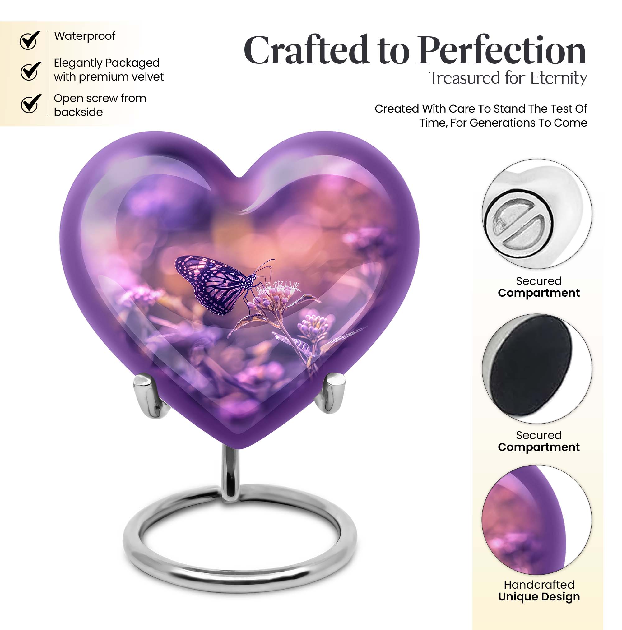 A thoughtful option for those searching for human ash urns, ash keepsakes for human ashes, or small urn for human ashes, this butterfly urn provides both dignity and symbolic beauty for families who wish to keep memories close.