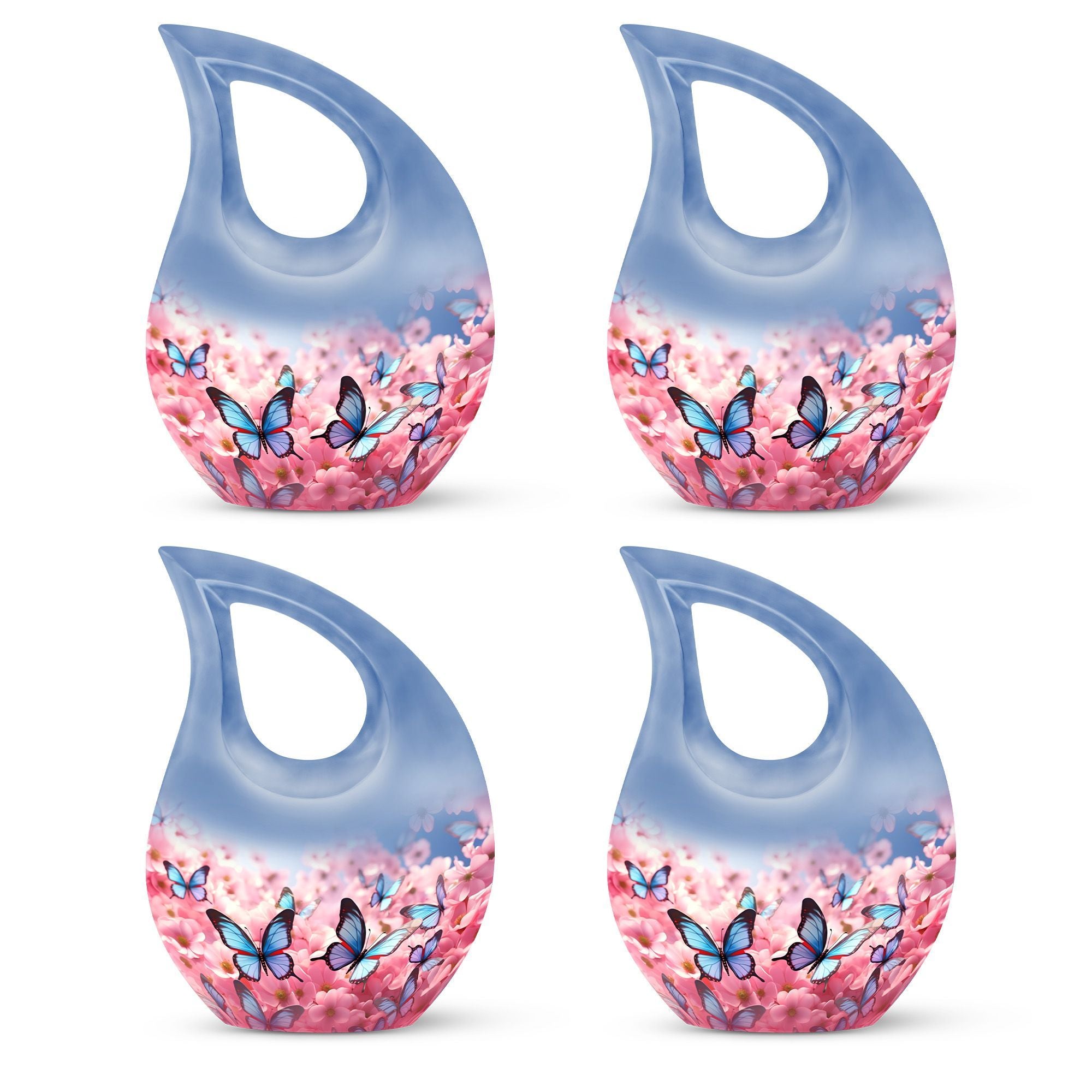 The Pink Floral Decorative Urn for Human Ashes is a stunning tribute crafted with elegance and care. Adorned with intricate blossoms and butterfly details, this urn serves as both a pink butterfly urn and a blue butterfly urn, symbolizing renewal, love, and everlasting peace.
