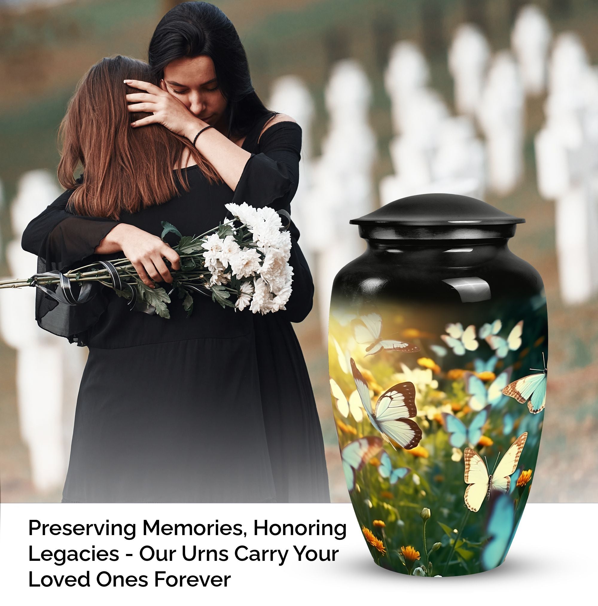 The Unique Blue Butterflies Urn – Large Urn for Human Ashes Adult Male is a stunning tribute crafted with elegance and care. With its sky blue butterflies urn design, this memorial represents freedom, peace, and everlasting love.