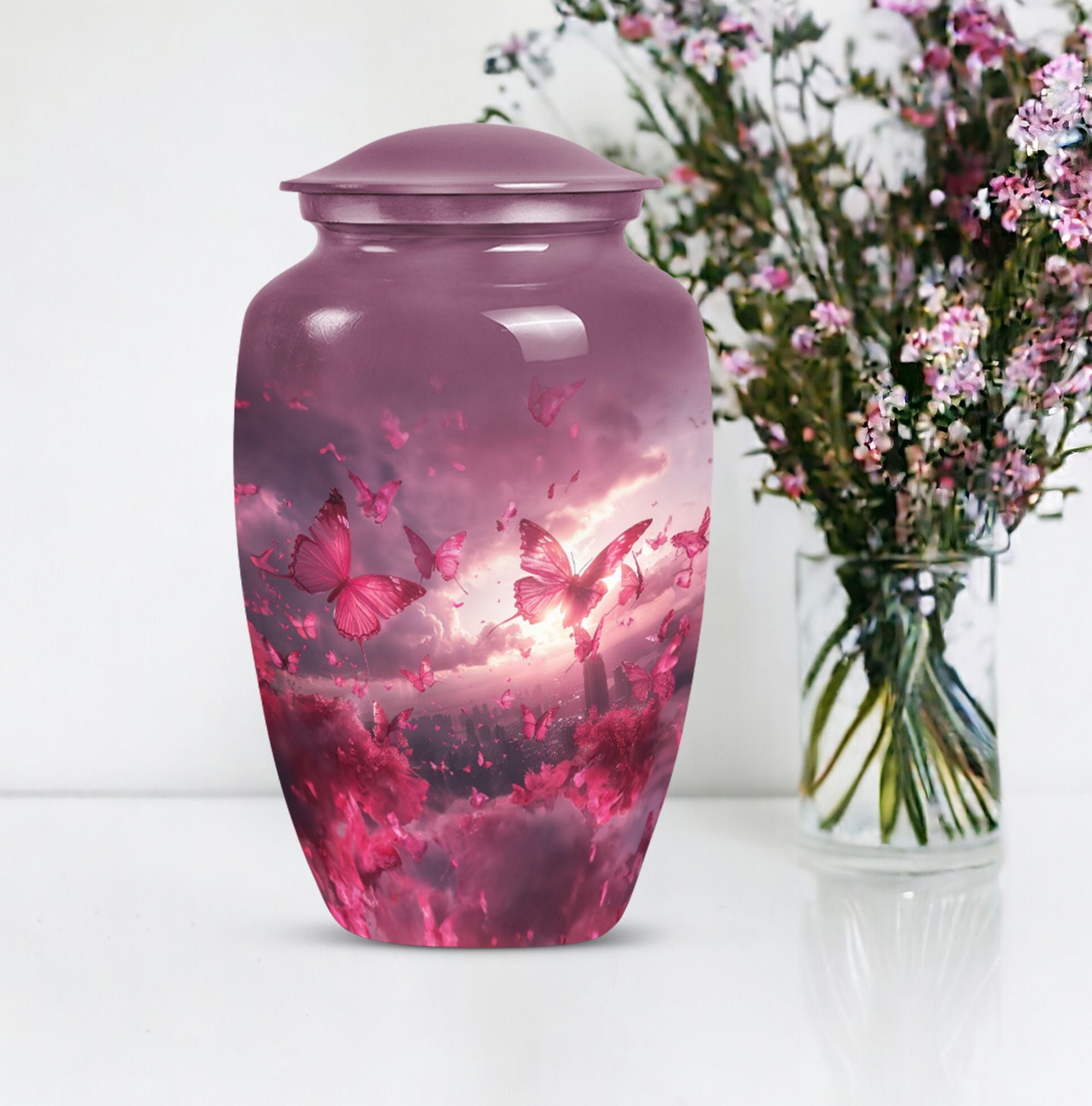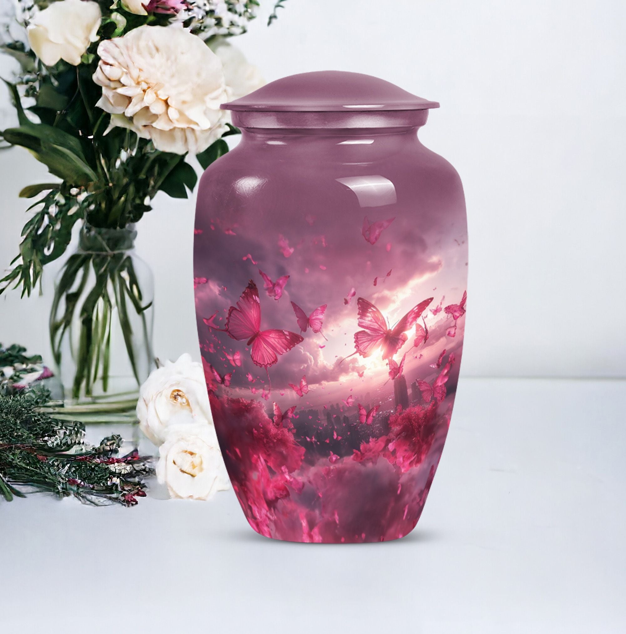 The Pink Butterfly Urn for Ashes Adults is a beautifully crafted memorial, designed with elegance and compassion. Featuring a delicate butterfly motif in soft pink hues, this urn represents transformation, peace, and eternal love.