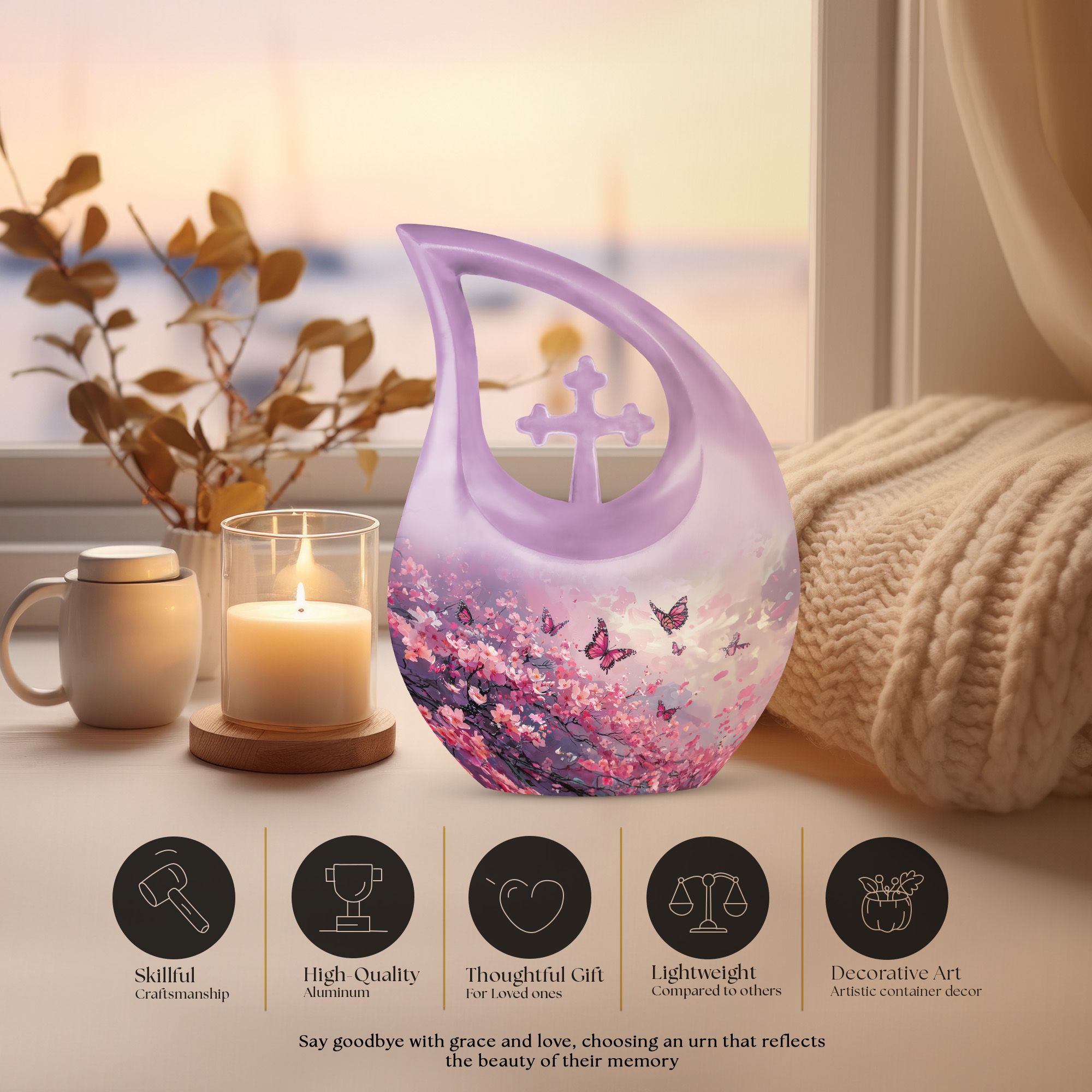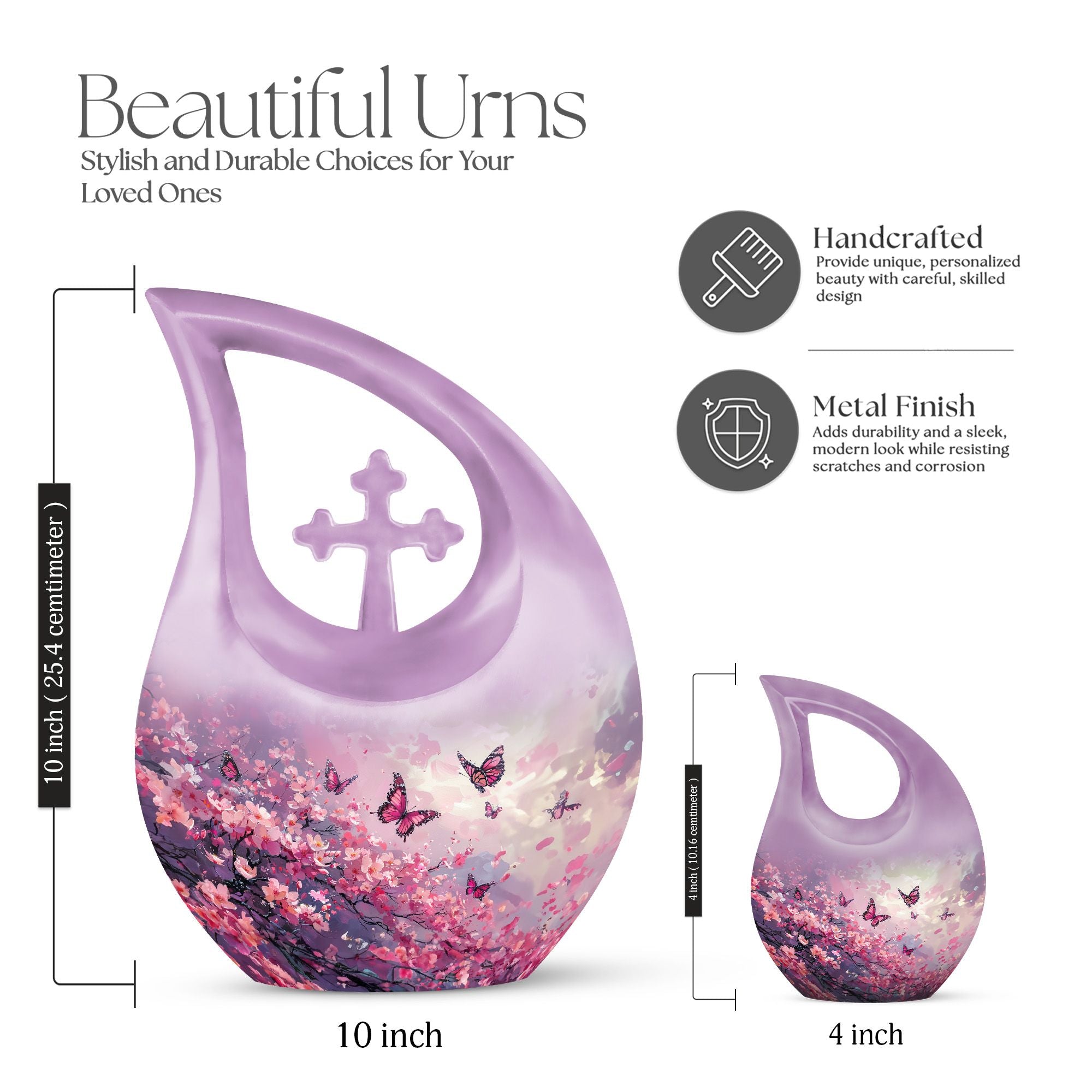 This monarch butterfly cremation urn is more than a resting place; it is a heartfelt memorial that brings peace, hope, and remembrance. Its large, beautifully decorated design makes it a timeless tribute for honoring cherished human remains.