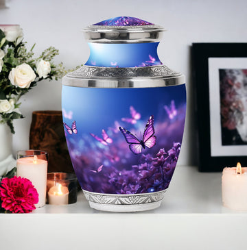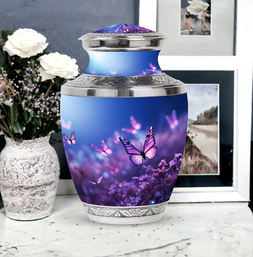 Honor and cherish the memory of your loved one with this Purple Butterfly Commemorative Urn. Its elegant butterfly design symbolizes hope, transformation, and a lasting tribute to those you hold dear.