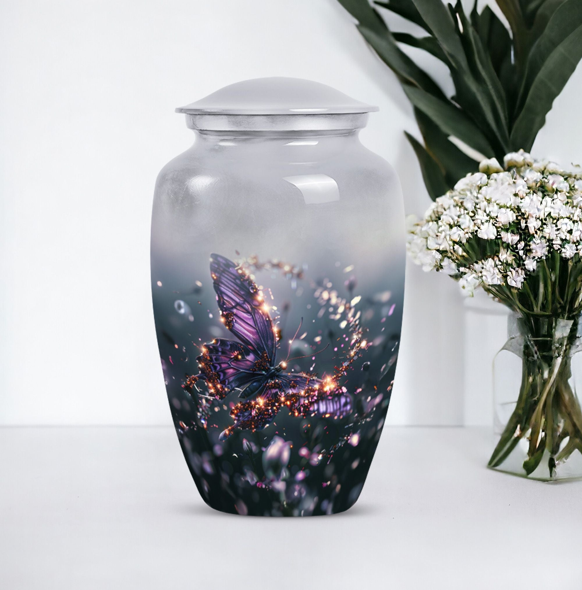 This purple butterfly urn can be chosen for urns for human ashes adult female or urn for ashes for women. It is suitable for use as a large urn for burial, an ash urn for humans kept at home, or paired with small ashes urn and urn keepsake for ashes options. Families may also use it as part of memorial keepsakes or urn keepsakes for ashes, ensuring remembrance in every form. Whether you’re seeking a purple butterfly urn, pink butterfly urn, or even a blue butterfly urn, this design embodies compassion and peace.