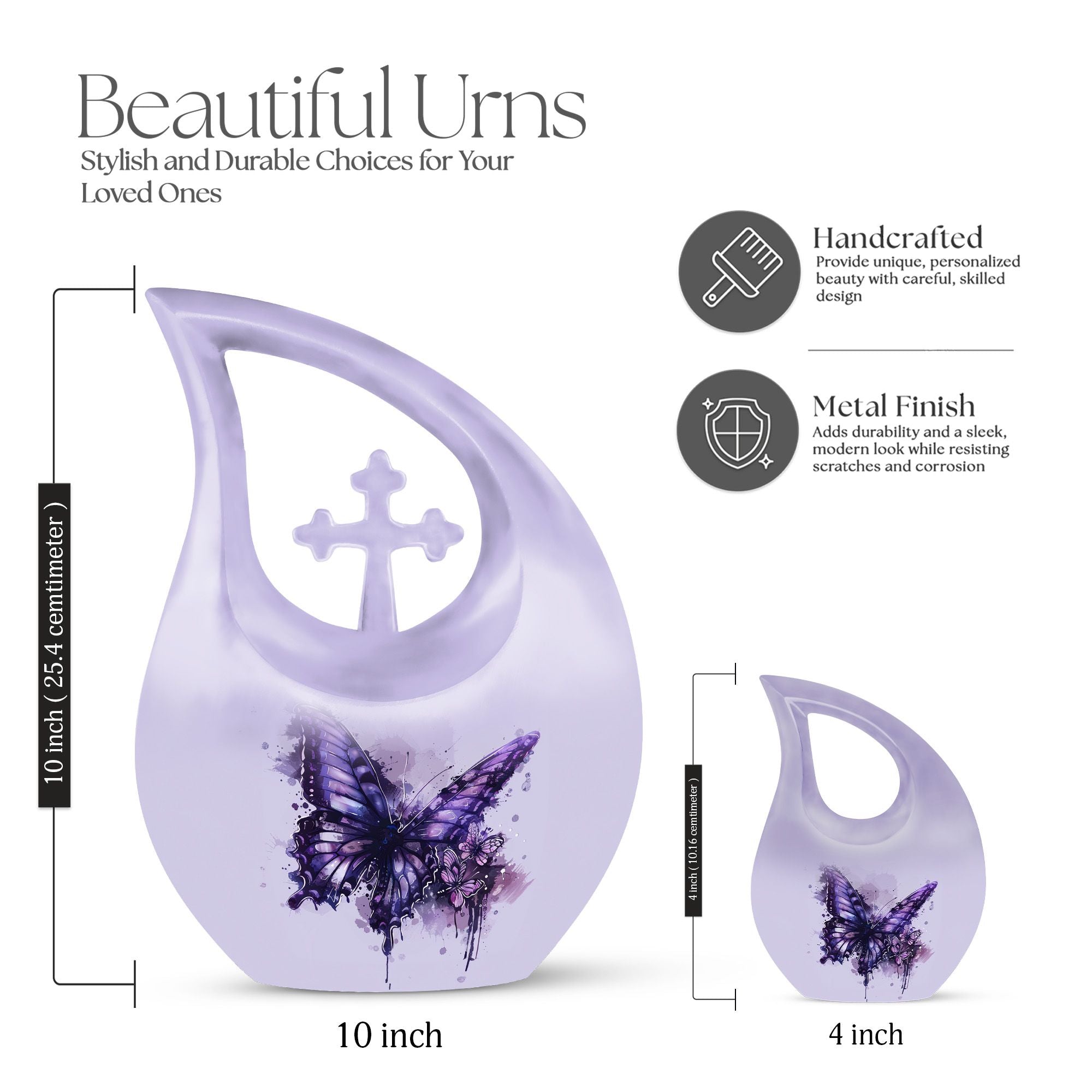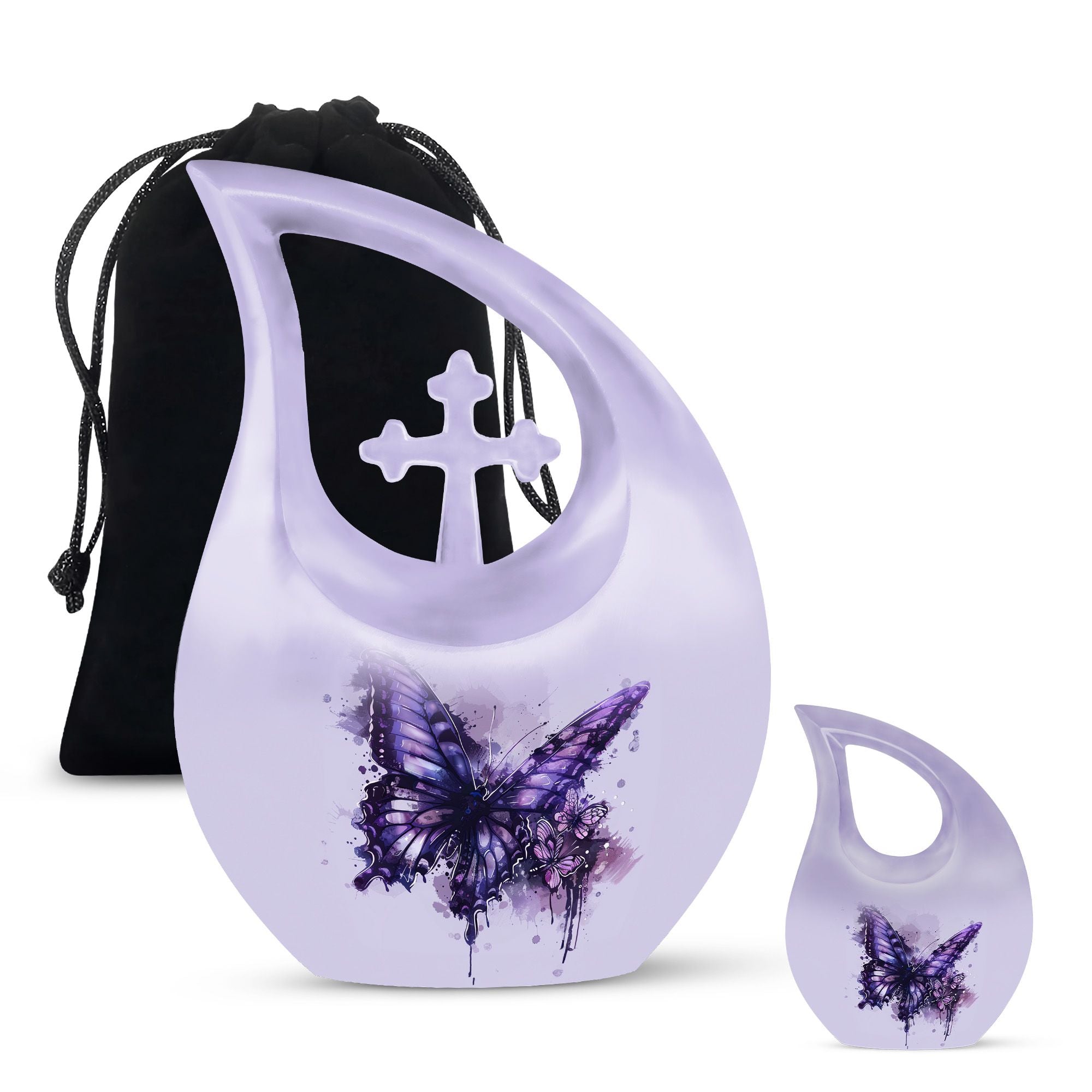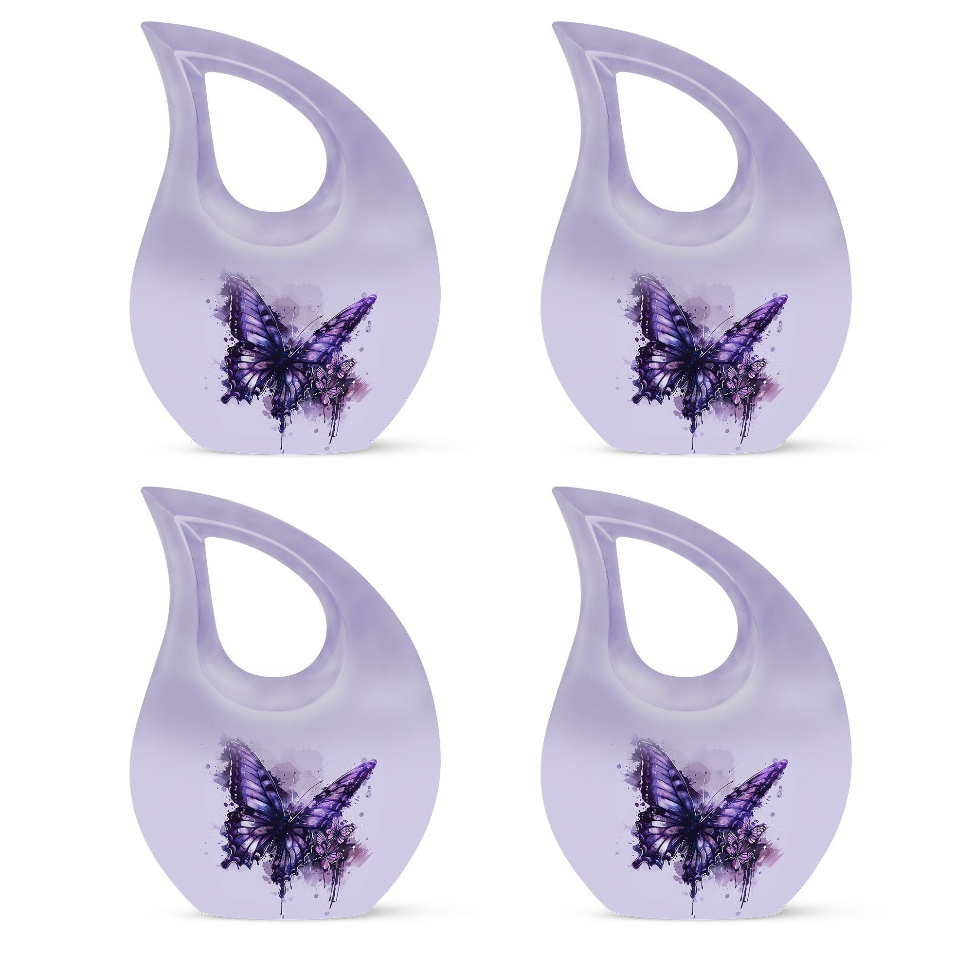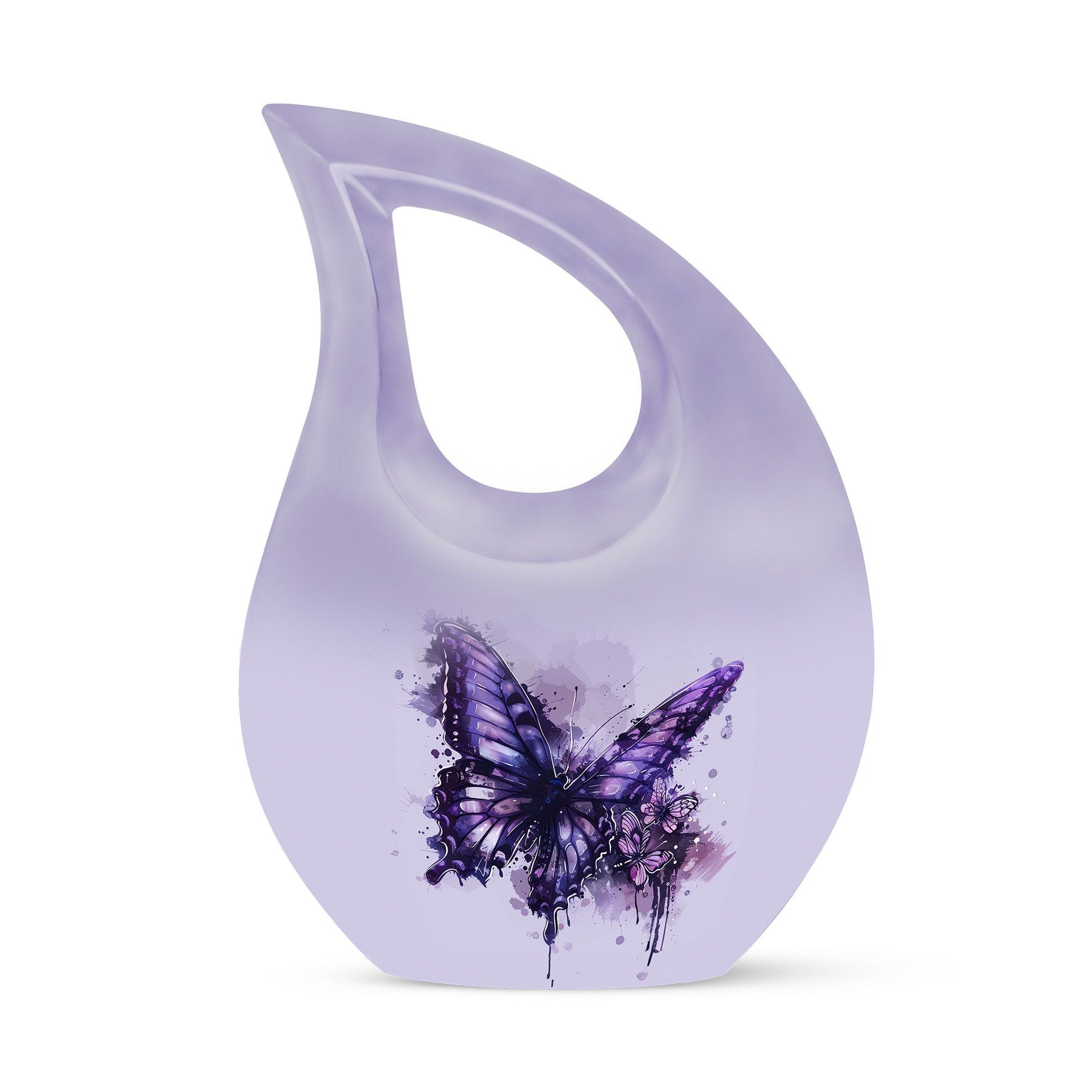 The Purple Butterfly Memorial Urn – Cremation Urn for Ashes for Woman is a beautifully handcrafted urn designed to honor a loved woman’s memory. Featuring graceful purple butterflies on a matching background, this urn symbolizes transformation, eternal love, and serenity. It serves as a dignified cremation urn for ashes, perfect for memorial services or home display.